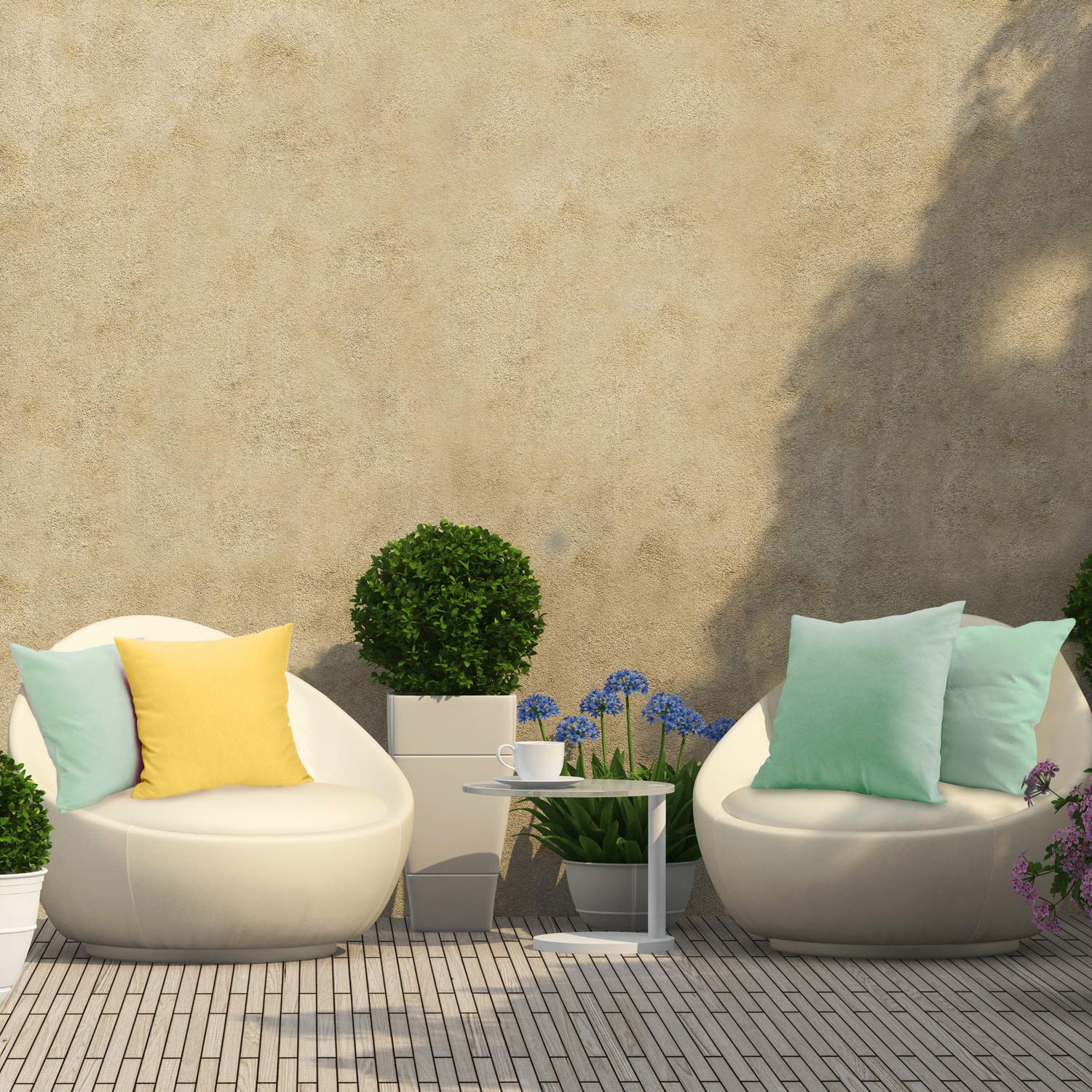 BOAO 4 Packungen Dekorative Outdoor Terrasse Balkon wasserdichte Kissenbezüge, Quadratische Garten Kissenhülle, PU Beschichtung Kissenbezug für Couch, Bett, Sofa und Balkon, 18 x 18 Zoll (Hellgrün)