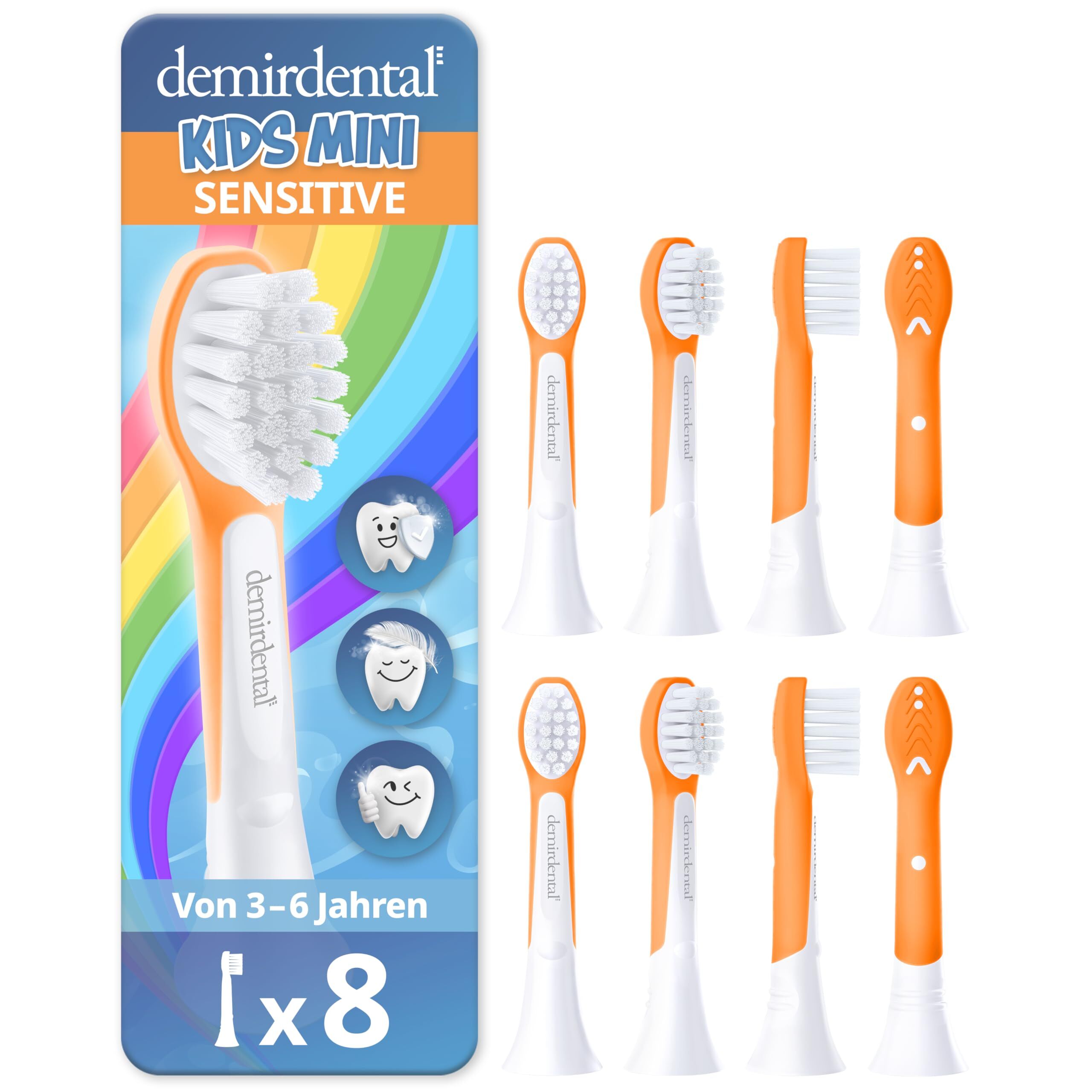 demirdental Ersatzbürsten für Kinder passend für Philips Sonicare Ersatzbürsten Kids, Compact Mini geeignet für 3-6 Jahre, entspricht HX6034 HX6038, Orange, 8er Set