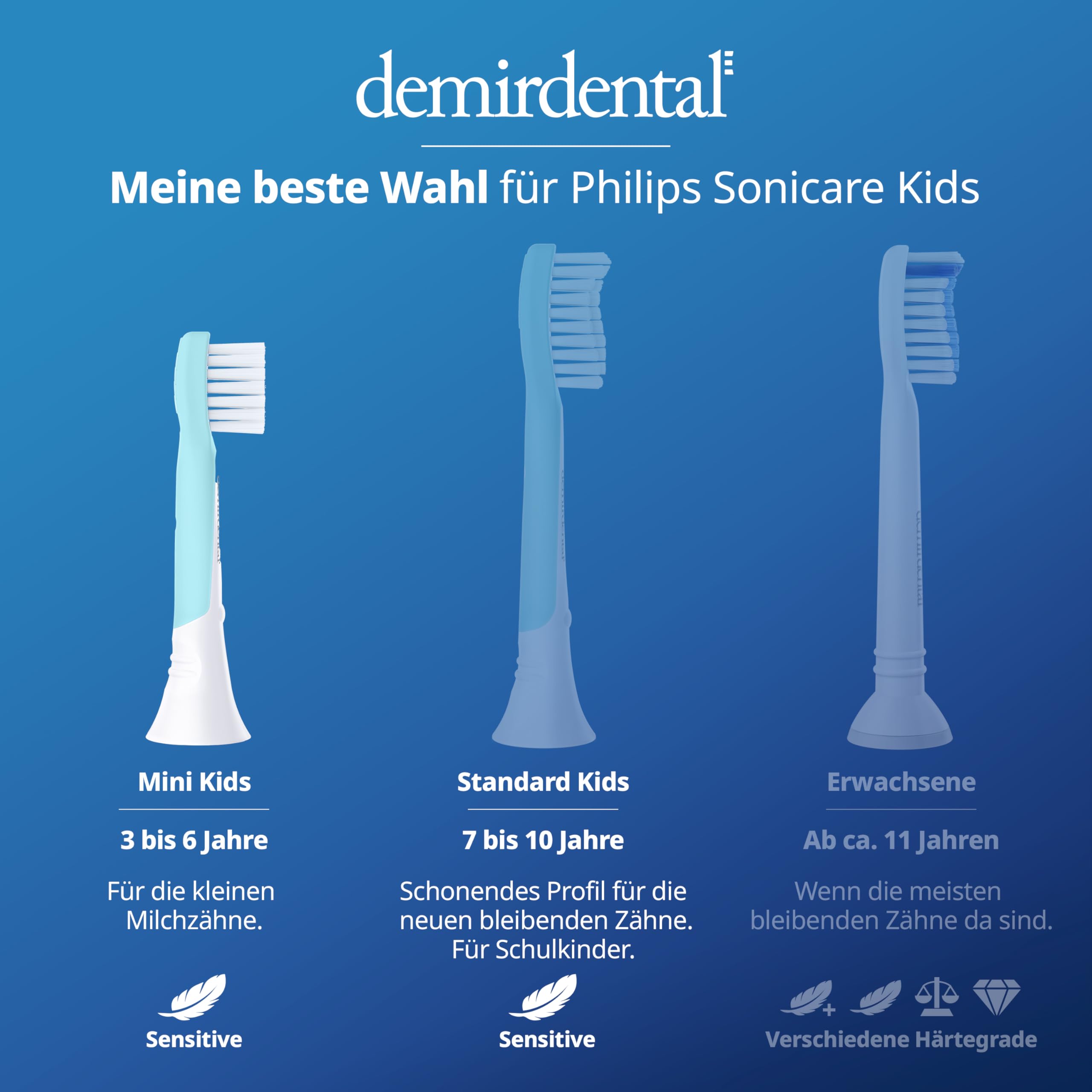 demirdental Ersatzbürsten für Kinder passend für Philips Sonicare Ersatzbürsten Kids, Compact Mini geeignet für 3-6 Jahre, entspricht HX6034 HX6038, Türkis, 8er Set