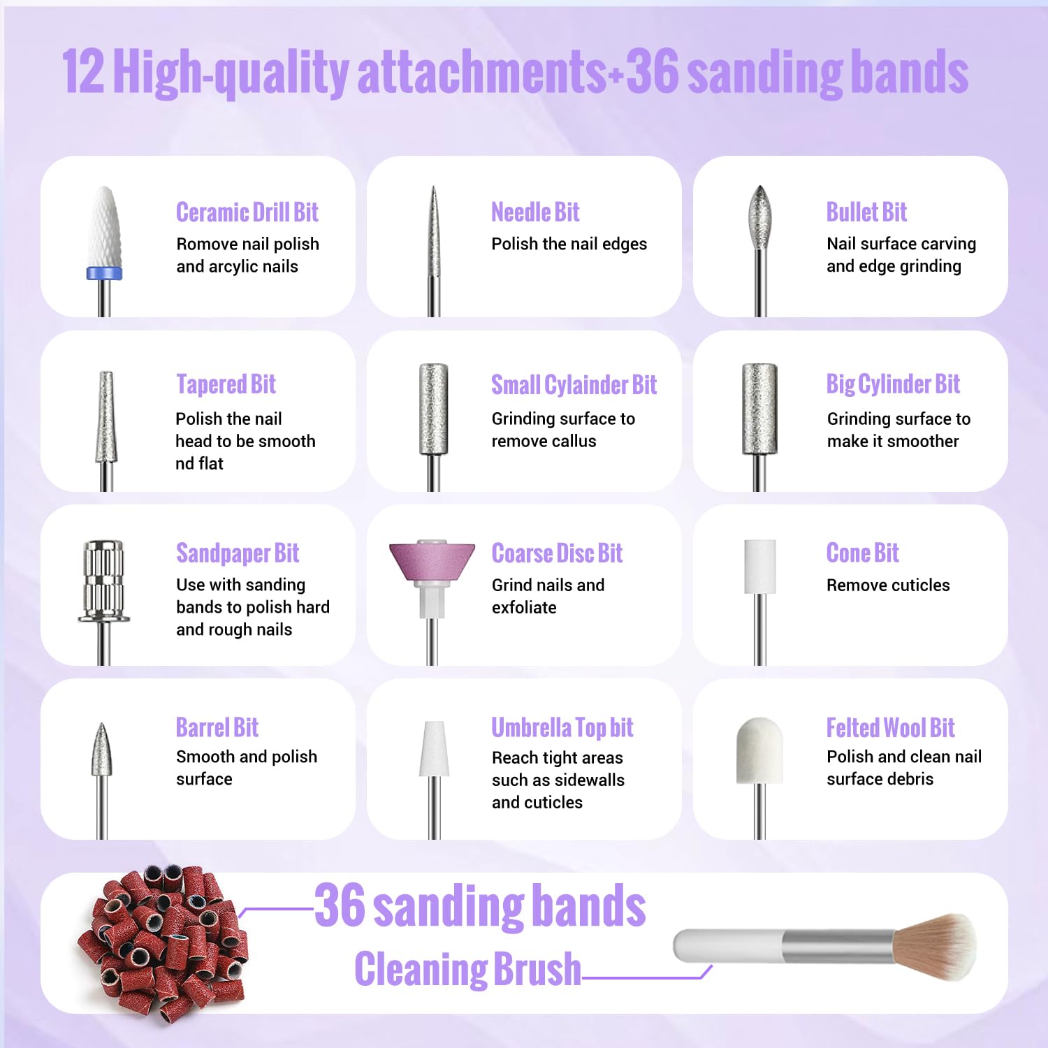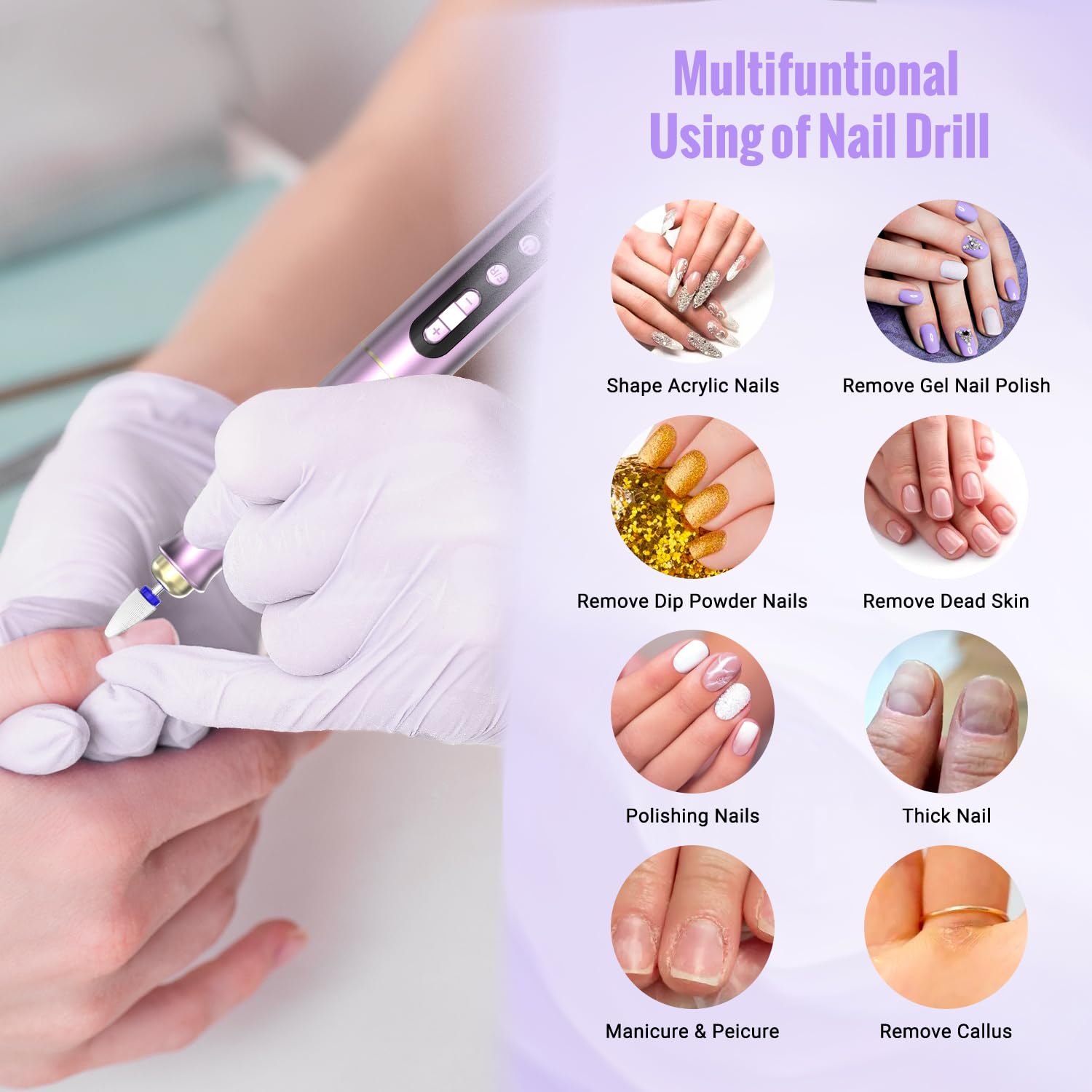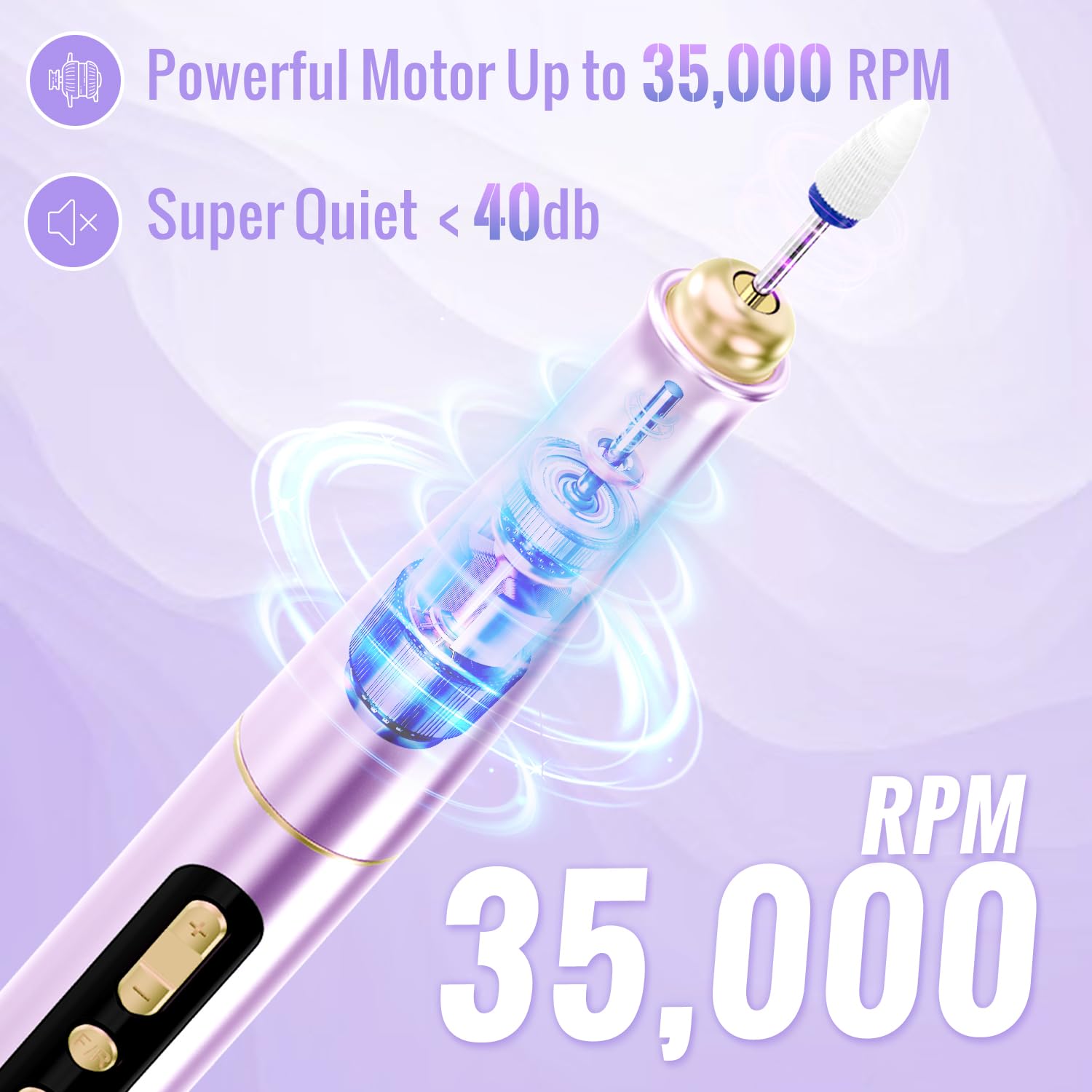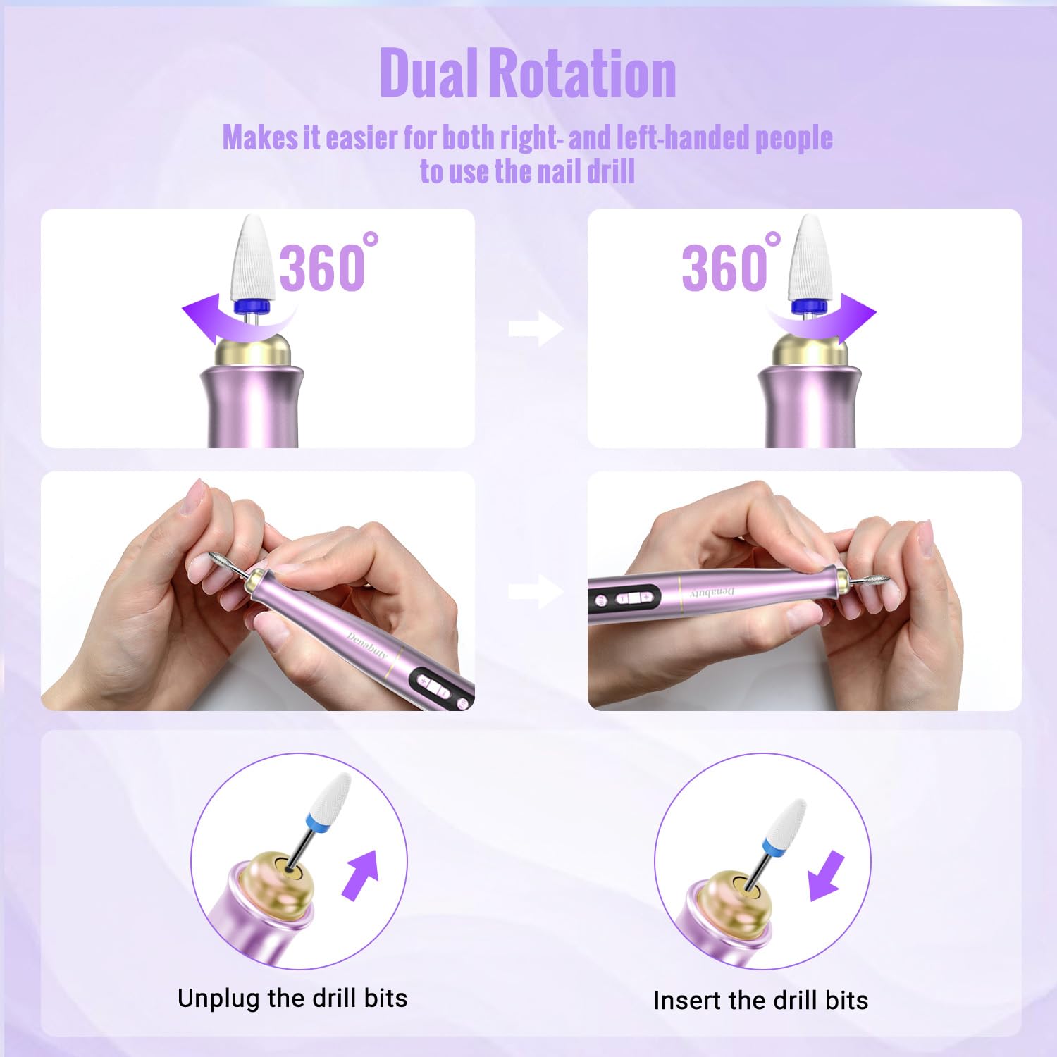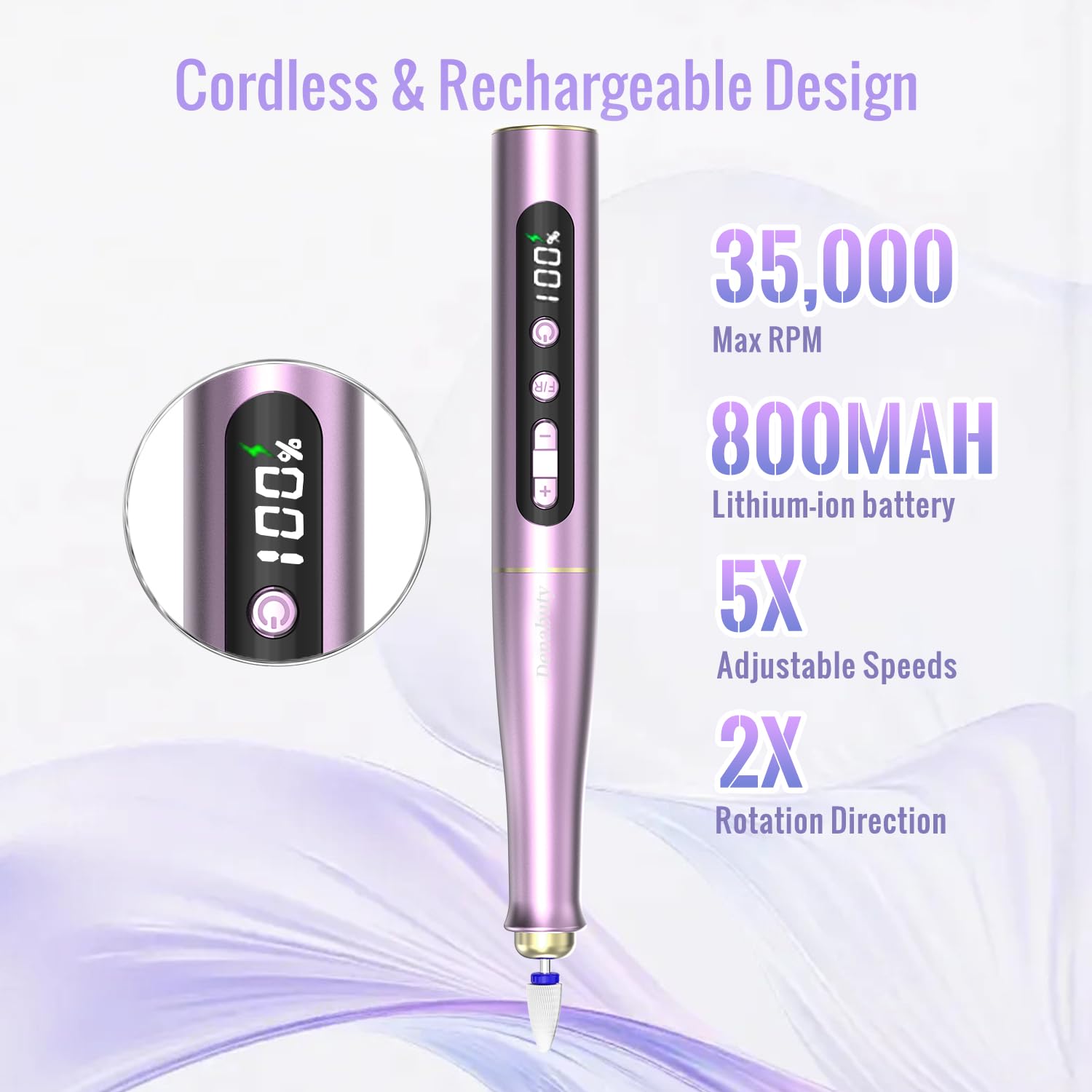 Denabuty Kabelloser Nagelfraeser 35000 U/min – Elektrische Profi Nagelfeile 13-in-1 fuer Gel- und Acrylnagel, Manikuere & Pedikuere Set, violett