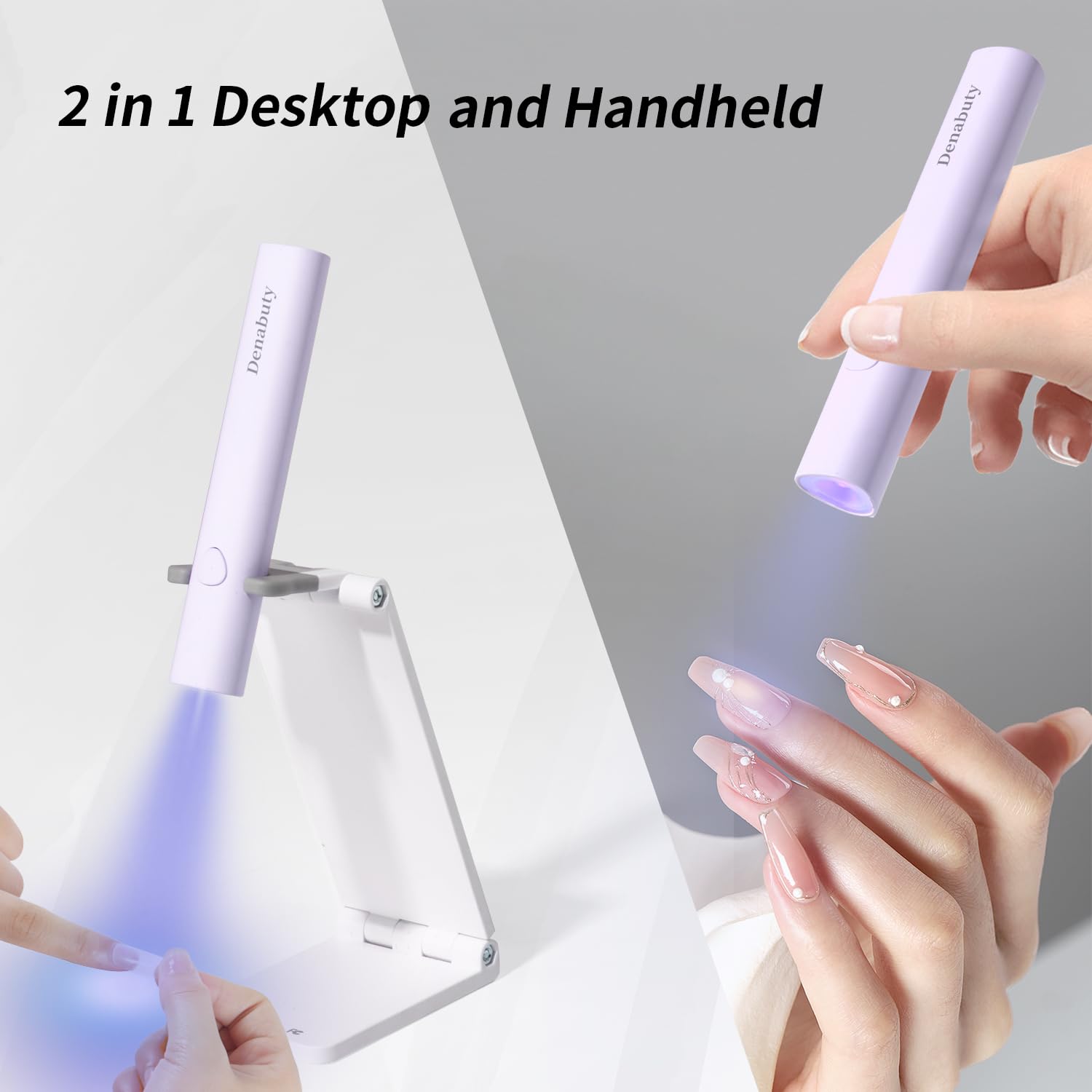 Denabuty Mini UV LED Lampe für Gelnägel – Wiederaufladbare tragbare UV-Nagellampe mit faltbarem Ständer, 3W Blitzhärtung für Gel Nagellack, Nagelkleber & Nail Tips, Violett