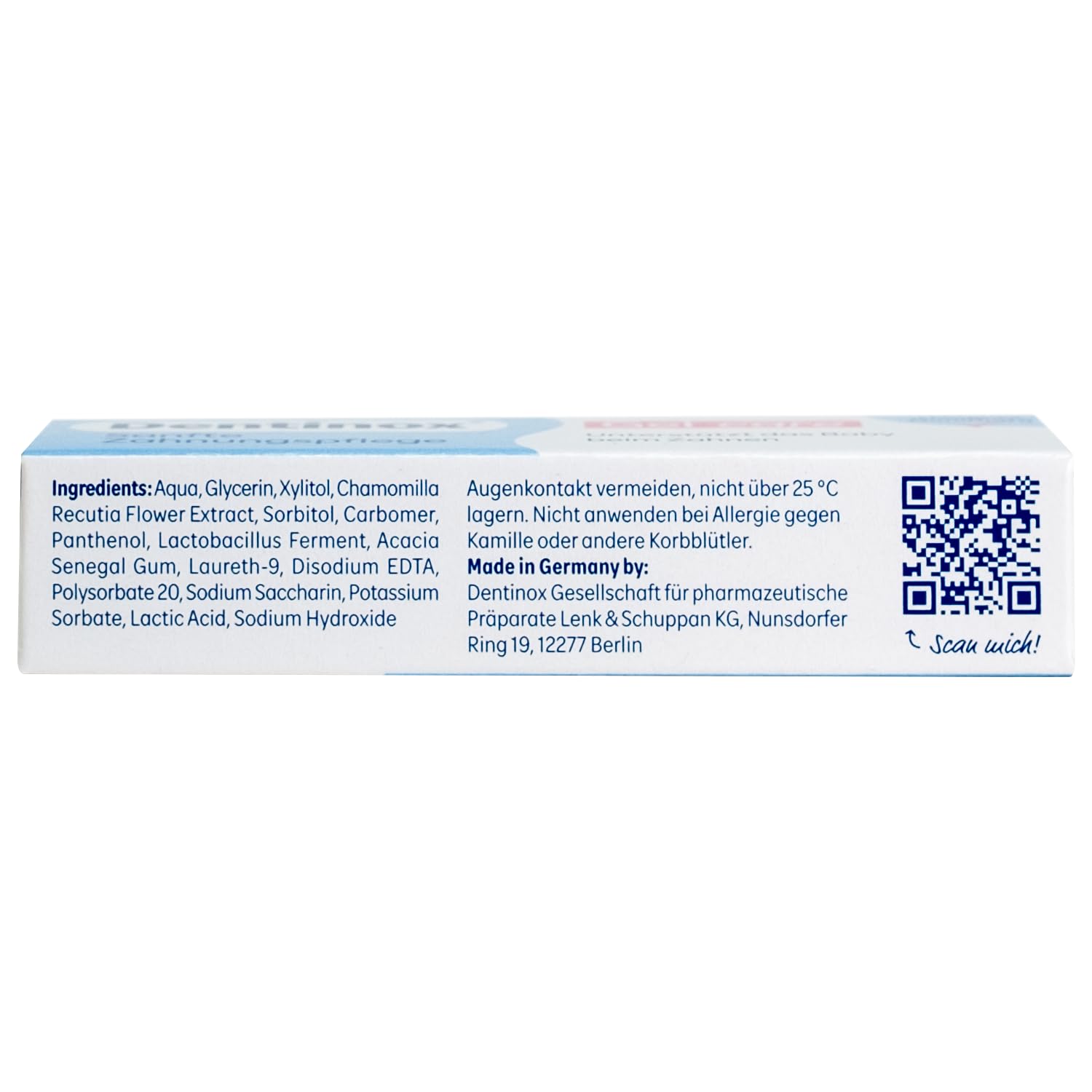 • AUSGEWÄHLTE INHALTSSTOFFE – Dentinox Gel Care enthält Kamillenblütenextrakt, Xylitol, Panthenol sowie ein speziell ausgewähltes Milchsäurebakterien-Ferment und Akazien-Extrakt.