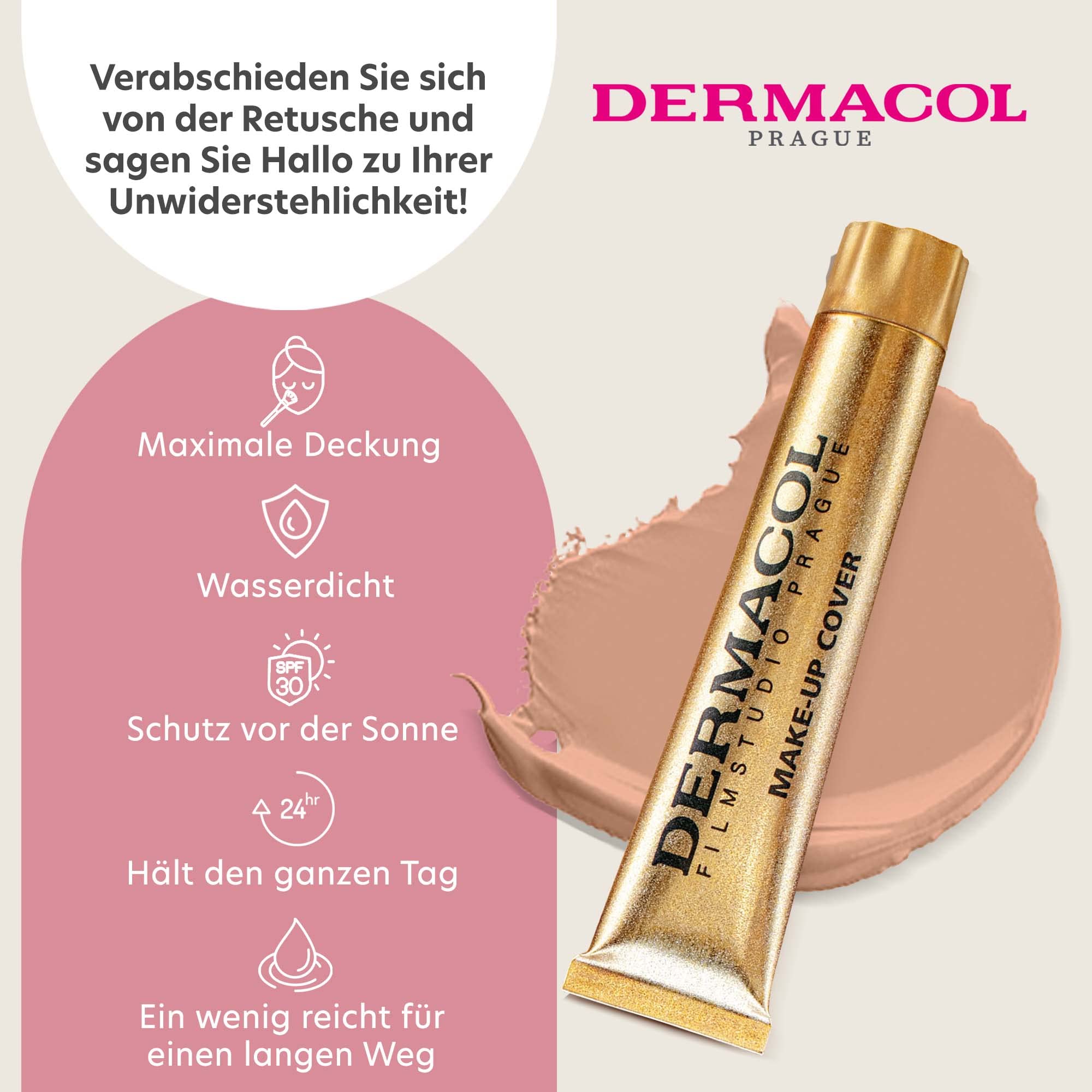 Dermacol - Full Coverage Foundation, Flüssige Makeup Matte Foundation mit SPF 30, Wasserfeste Foundation für fettige Haut, Akne, & Augenringe, Langanhaltende Makeup Produkte, 30g, Farbton - 209