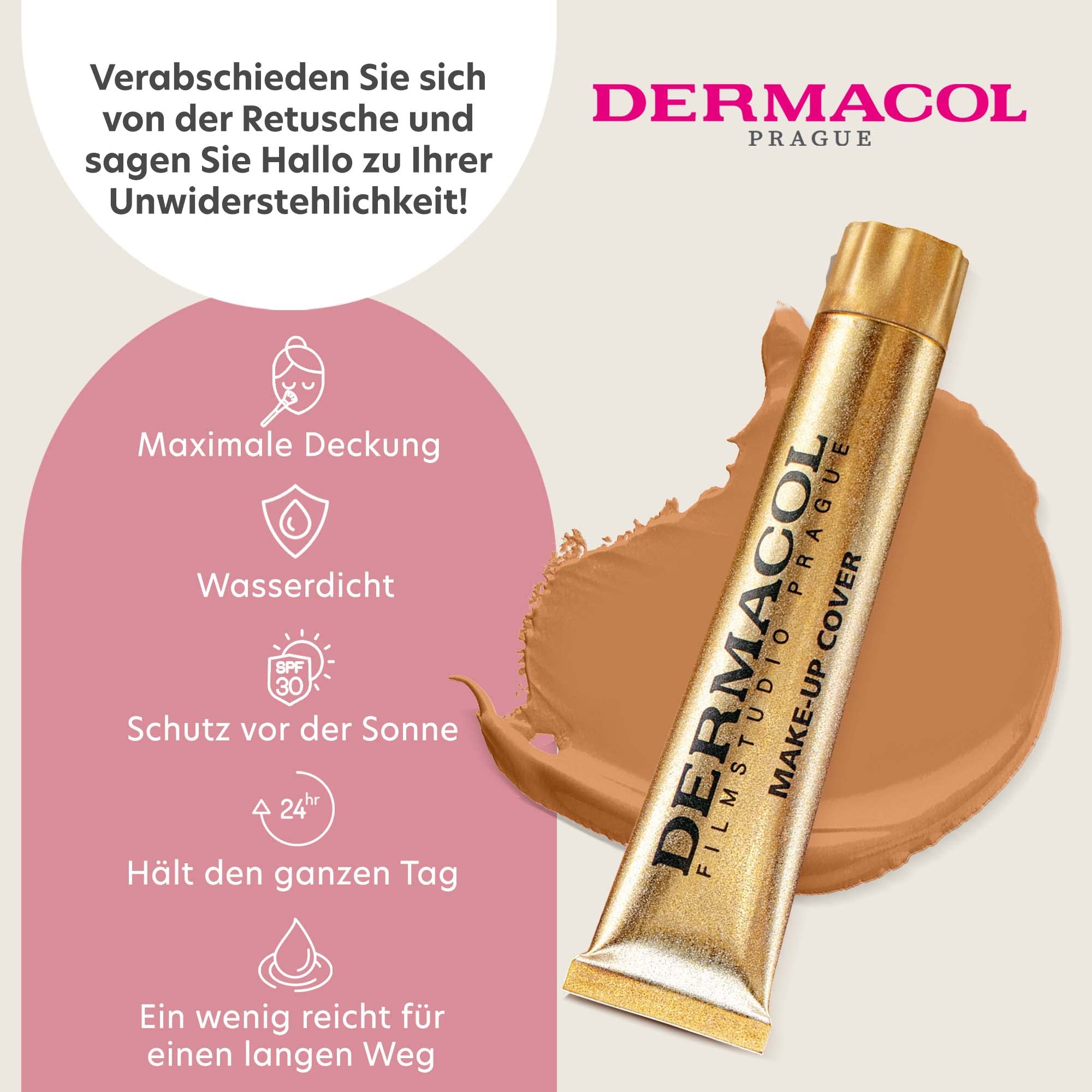Dermacol - Full Coverage Foundation, Flüssige Makeup Matte Foundation mit SPF 30, Wasserfeste Foundation für fettige Haut, Akne, & Augenringe, Langanhaltende Makeup Produkte, 30g, Farbton - 224