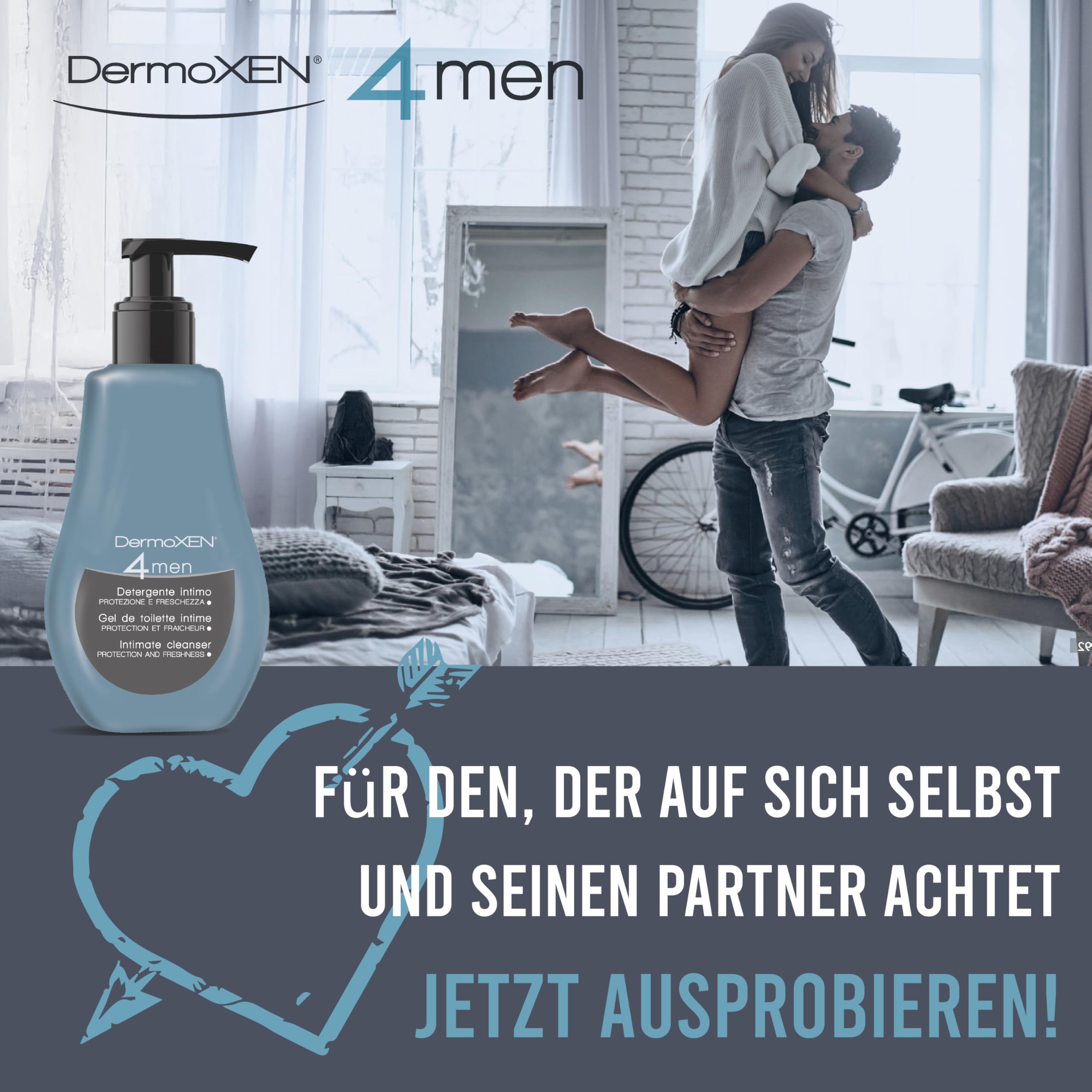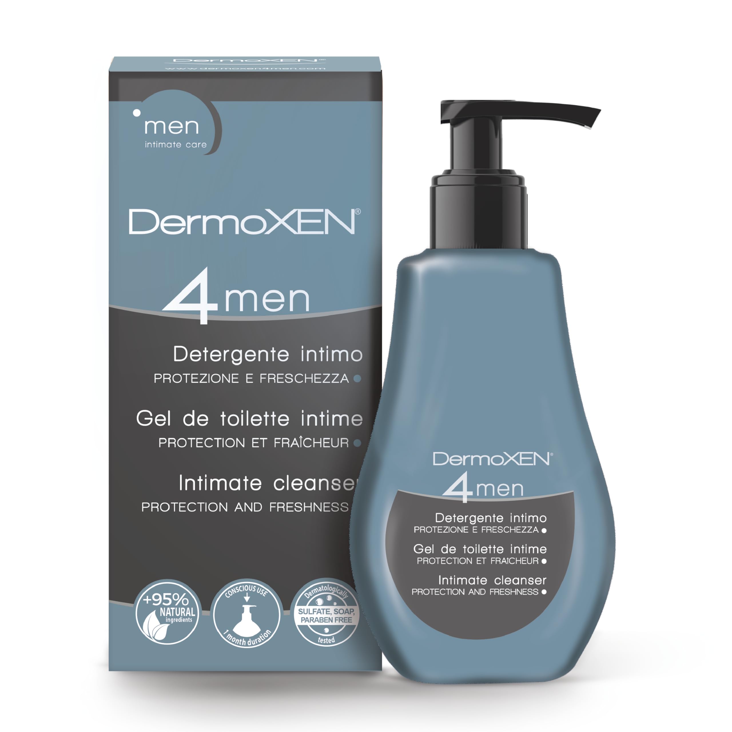 • Dermoxen 4 Men Intimpflege für Männer ist der neue Intim Waschlotion speziell für die tägliche Intimpflege des Mannes. Intim Waschlotion entwickelt von Ekuberg Pharma Laboratorien. DermoXEN 4 MEN ist das Waschlotion für die tägliche Intimpflege des Mannes, besonders geeignet für diejenigen, die häufig im Fitness-Studios, Schwimmbäder und andere riskante Orte oder arbeiten ausserhalb des Hauses besuchen.
