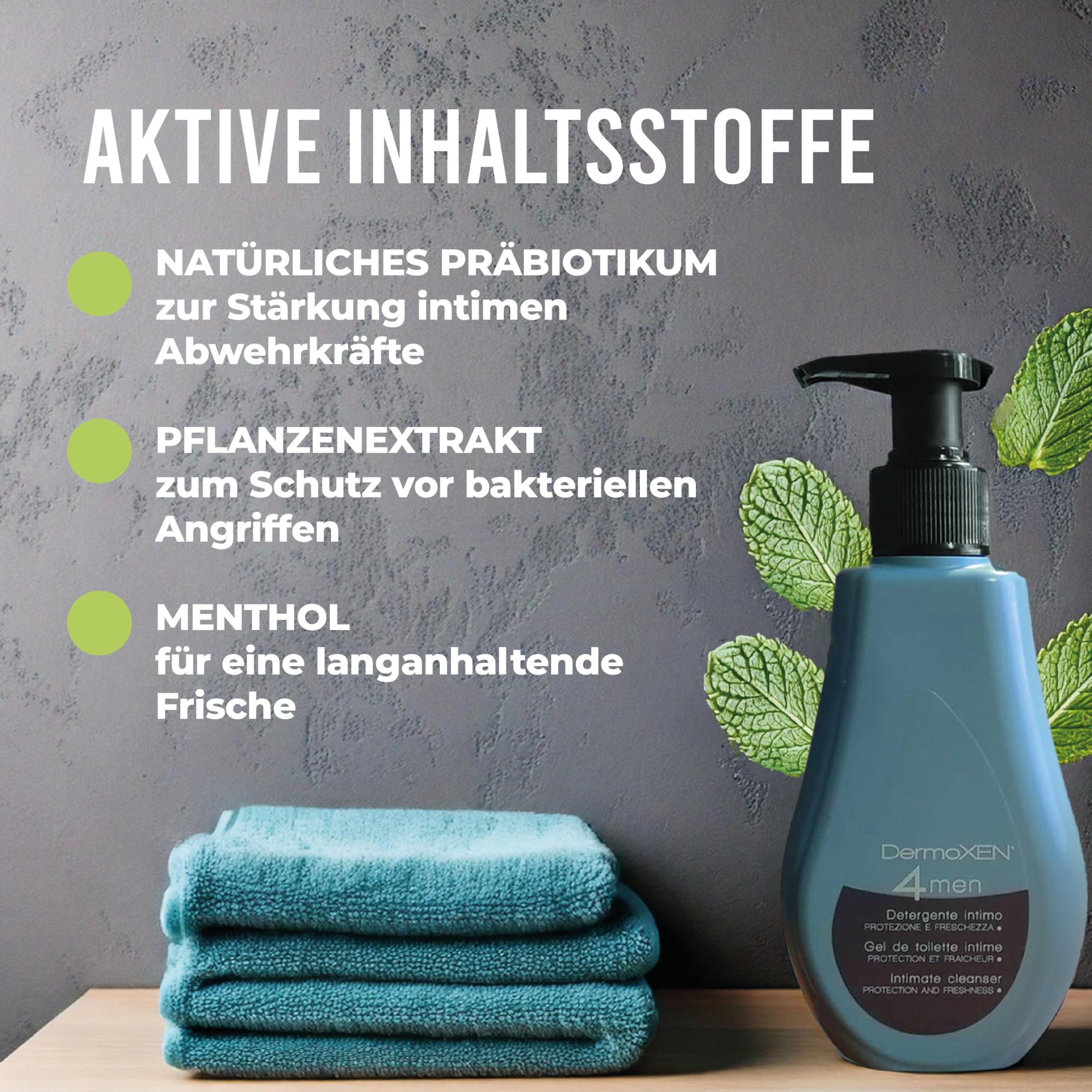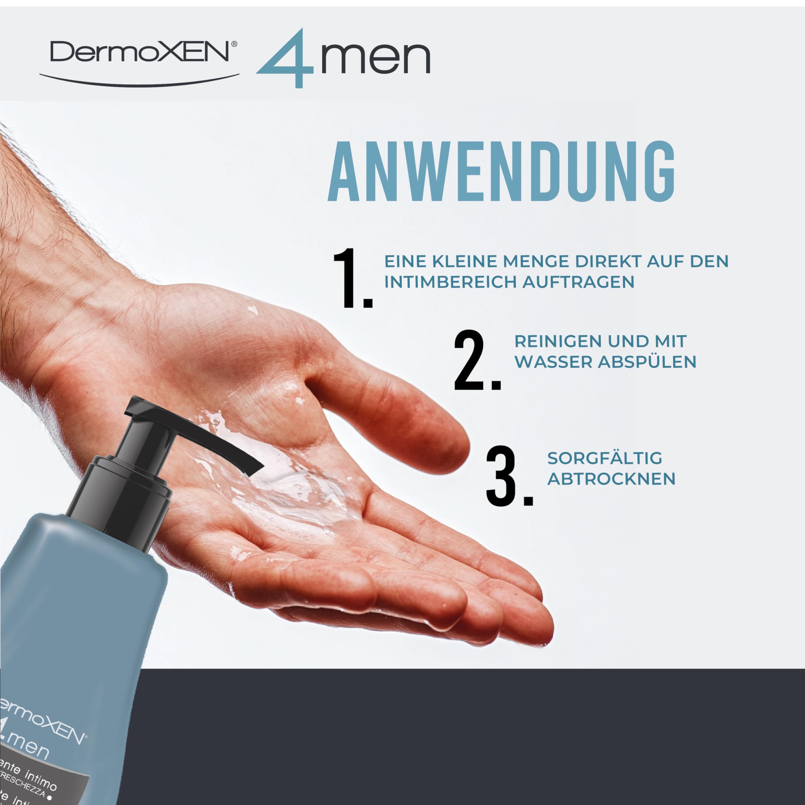 • Dermoxen 4 Men Intimpflege für Männer: TÄGLICHER SCHUTZ UND ERFRISCHUNG: Dank seiner reinigenden Wirkung schützt es vor bakteriellem Befall, beugt unangenehmen Gerüchen im Intimbereich vor und wirkt sanft und lang anhaltend erfrischend.