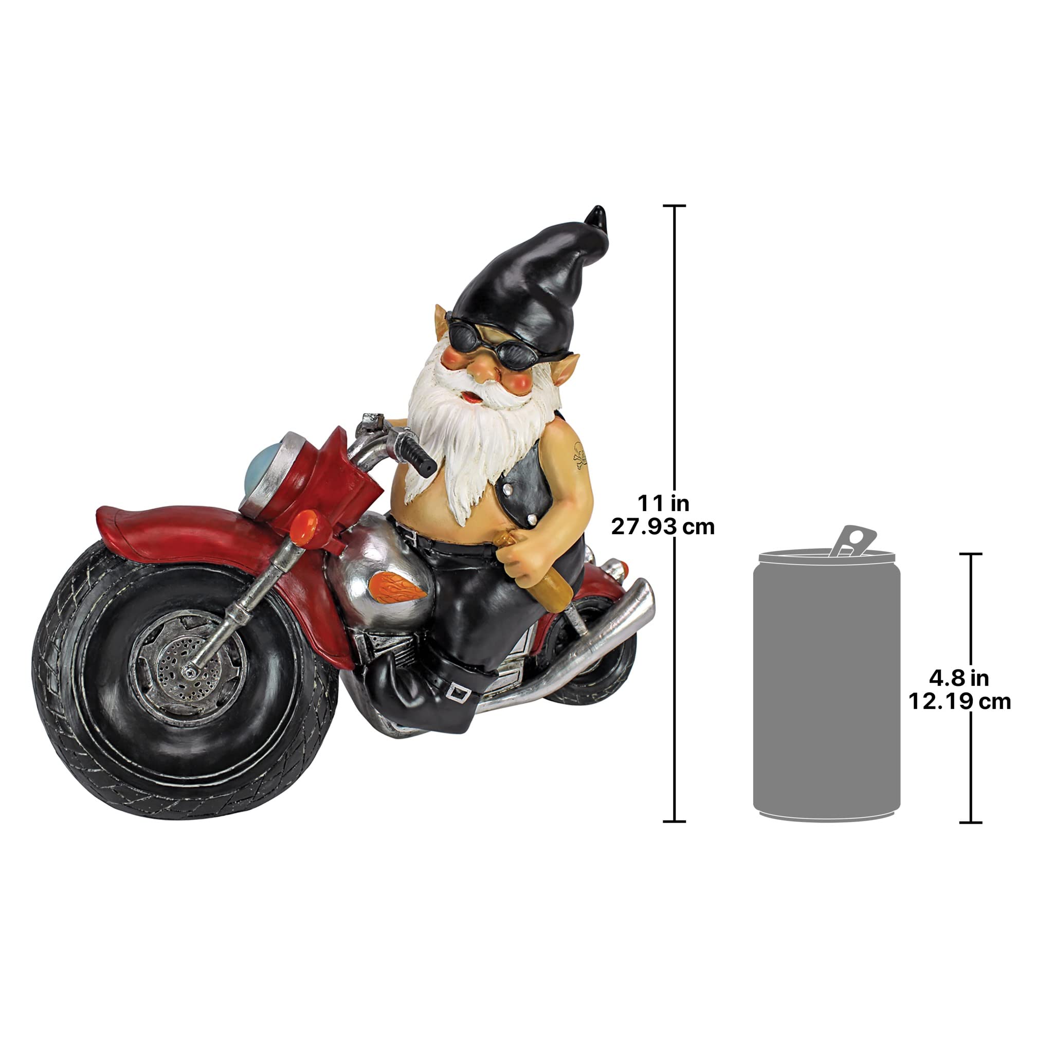 Holen Sie Ihren Motor mit Design-Toskaner neuesten ‚bad to the bone‘ Gnome Radfahrer-Typ läuft! Ein sicheres mit Motorrad Getriebeköpfe getroffen, ein Ink Slinger Axle Sport Schädel Tattoo, Biker Leder schneidet und zeigte Eimer Gnome Gehirn, wie ich die offene Strasse mit einem Gebräu in der Hand trifft. Cast in Qualität Designer Harz und handbemalten Details von den heftigen Flammen auf Gastank zu zeigen, seine Sparto zum Tombstone Rücklicht, diese einmalige exklusive Gnome Skulptur konnte nur von dem einen percenter kreativen Köpfe bei Design Toscano vorstellen! „Halten Sie die glänzende Seite nach oben“ Es ist ein grosses Geschenk!