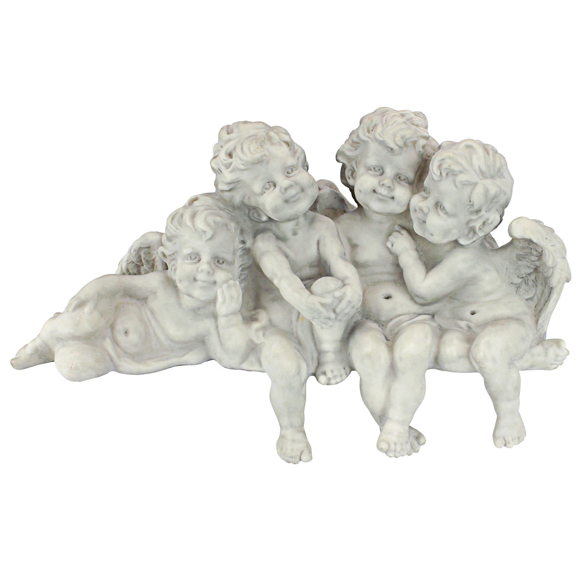 Coming in for a cuddle, the baby cherubs in this foot-and-a-half-long, sitting angels statue will happily brighten up any bookshelf, sunny windowsill or garden wall. Each Design Toscano angel in this foot-tall heavenly cupid chorus is cast in quality designer resin with an antique stone finish. 18"Wx5½"Dx12"H. 4 lbs.