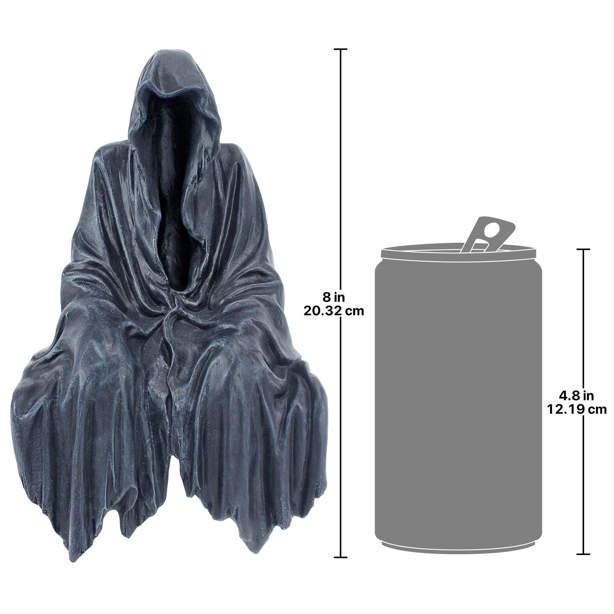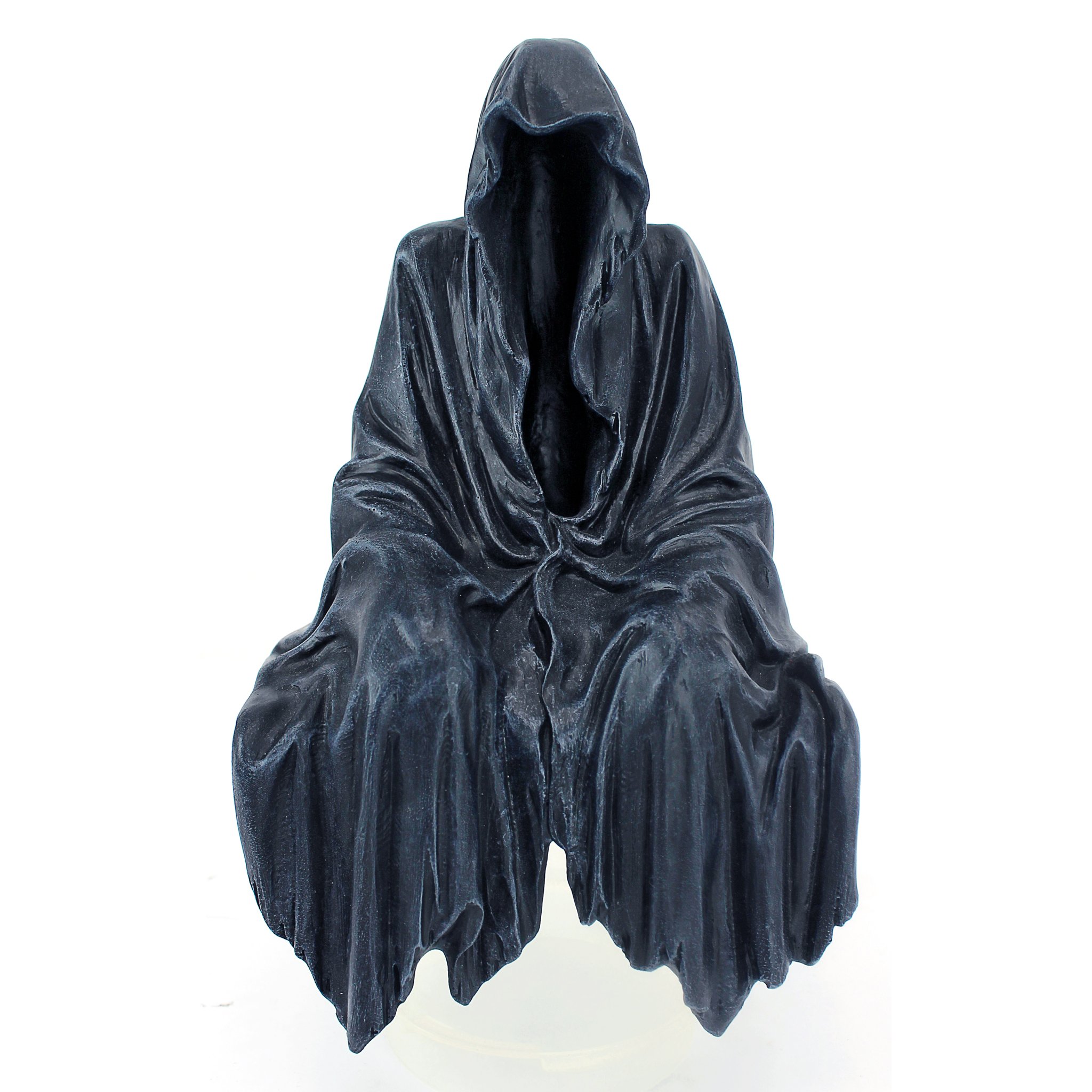With its eerie "negative space" balancing the matte black, textured interior of this ghoulish statue, what you DON'T see is as important as what you do! From the shadowed recesses, our Gothic Creeper sits with the slumped shoulders and bowed head that tell you he is pondering pity as only the darkest spirits do. Cast in quality designer resin exclusively for Design Toscano. 5½"Wx5½"Dx8"H. 1 lb.