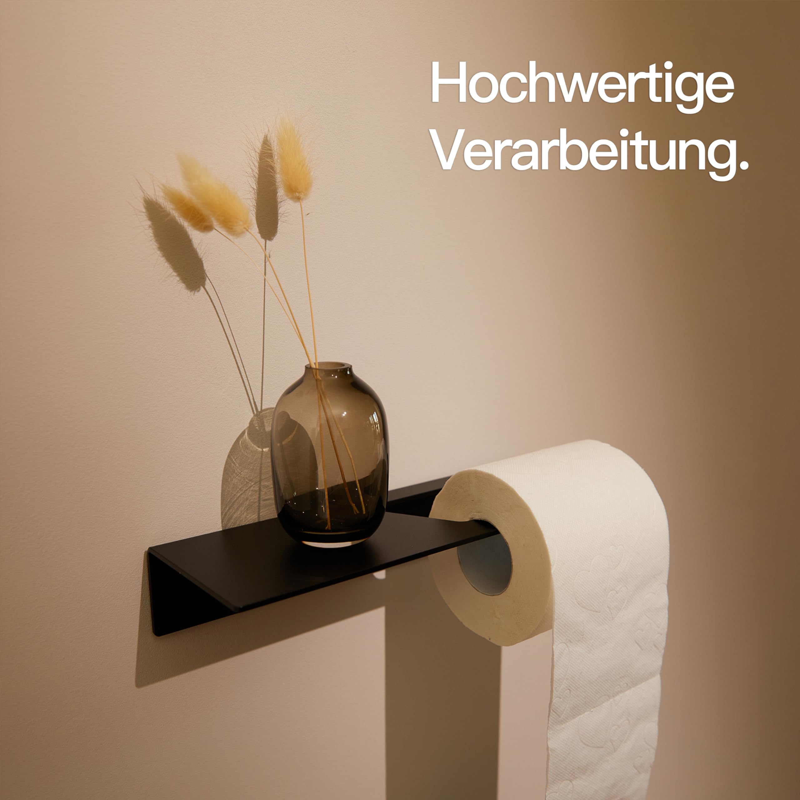 Designfabrik Hamburg Toilettenpapierhalter ohne Bohren | Klopapierhalter zum Kleben | Klorollenhalter Bad | WC Rollenhalter selbstklebend | Toilettenpapierhalter mit Ablage Schwarz | Modernes Design