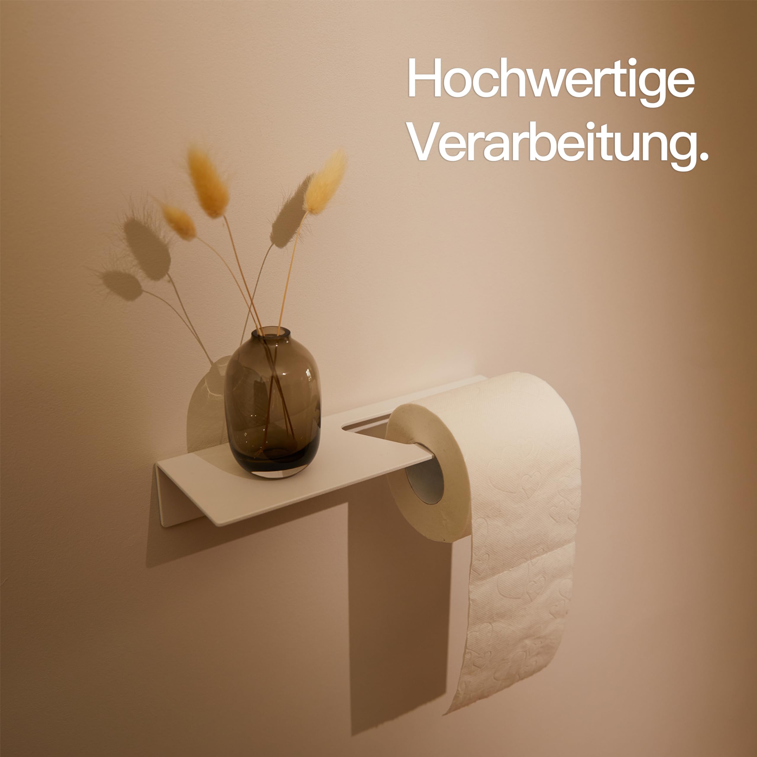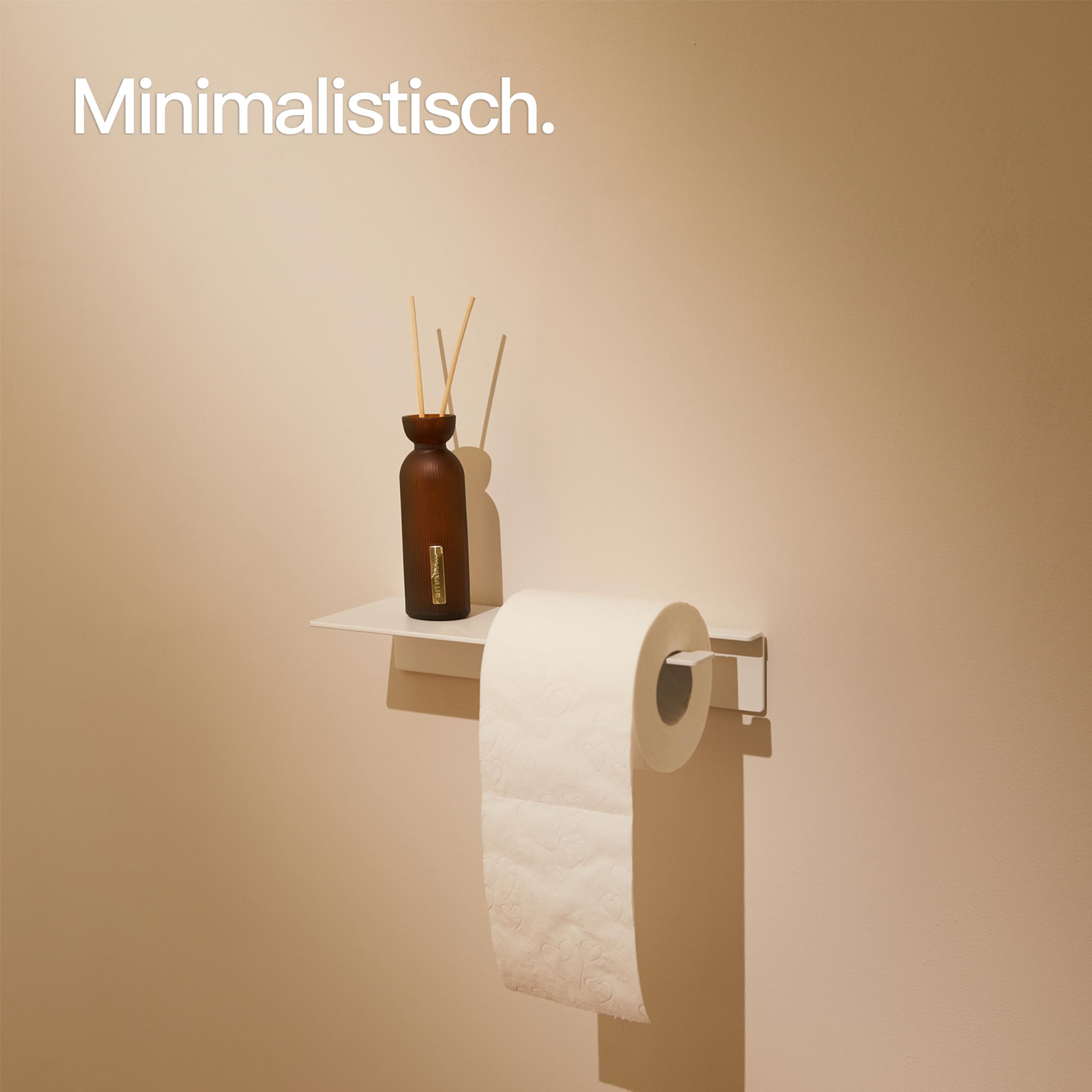 Designfabrik Hamburg Toilettenpapierhalter ohne Bohren | Klopapierhalter zum Kleben | Klorollenhalter Bad | WC Rollenhalter selbstklebend | Toilettenpapierhalter mit Ablage Weiss | Modernes Design