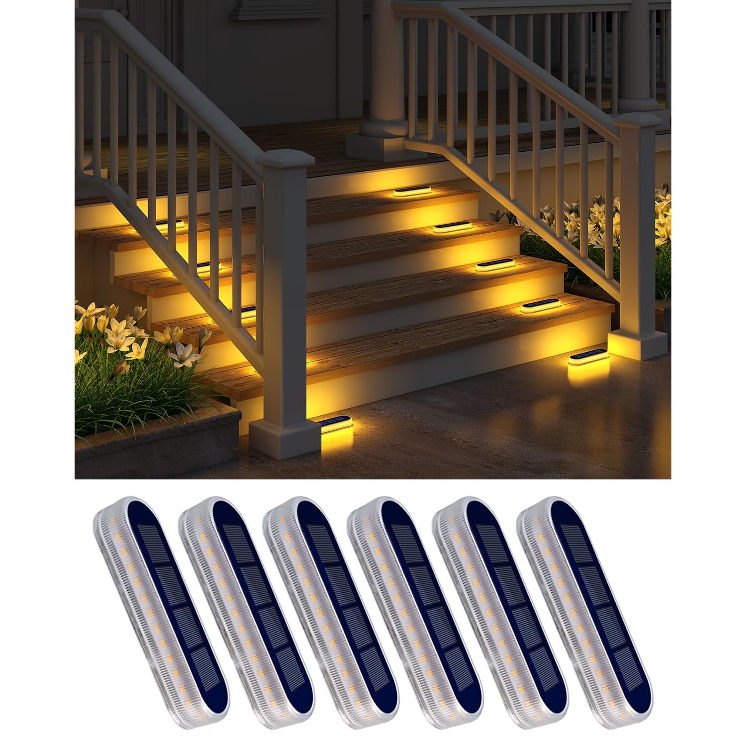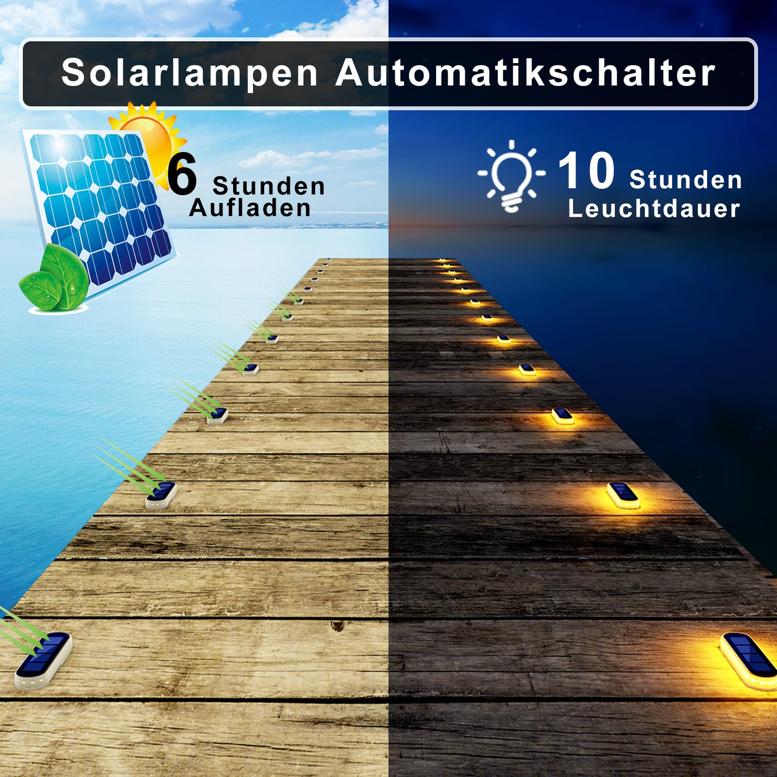 DetarZinLED Solar Bodenleuchten, 6stk Solarlampen für Aussen, LED Solarlampen Gartene Wegeleuchten mit Auto ON/OFF Lichtsensor für Treppen, Zäune, Gärten, Innenhöfe, Auffahrt,Deck