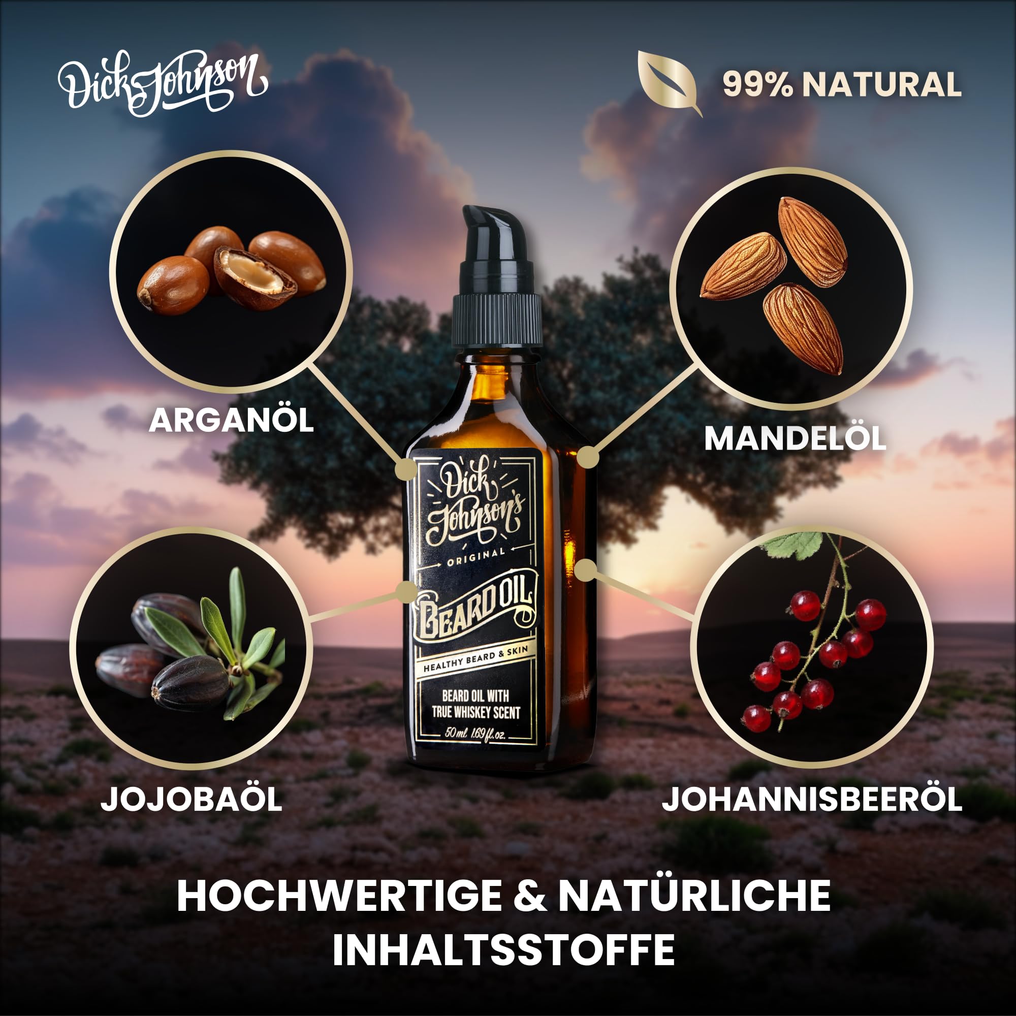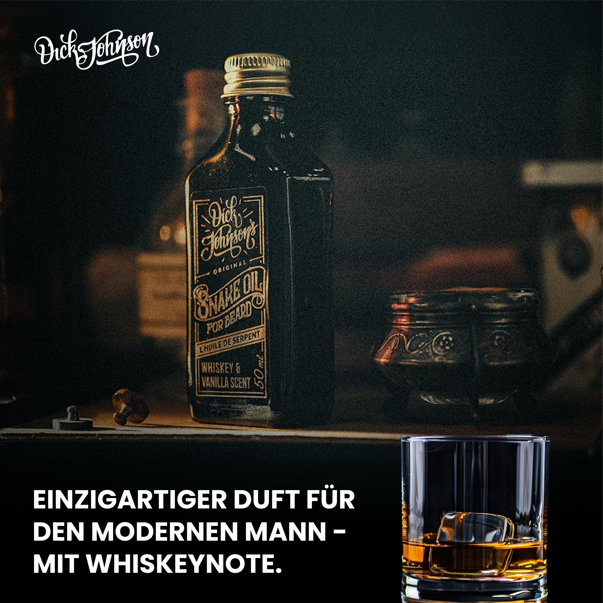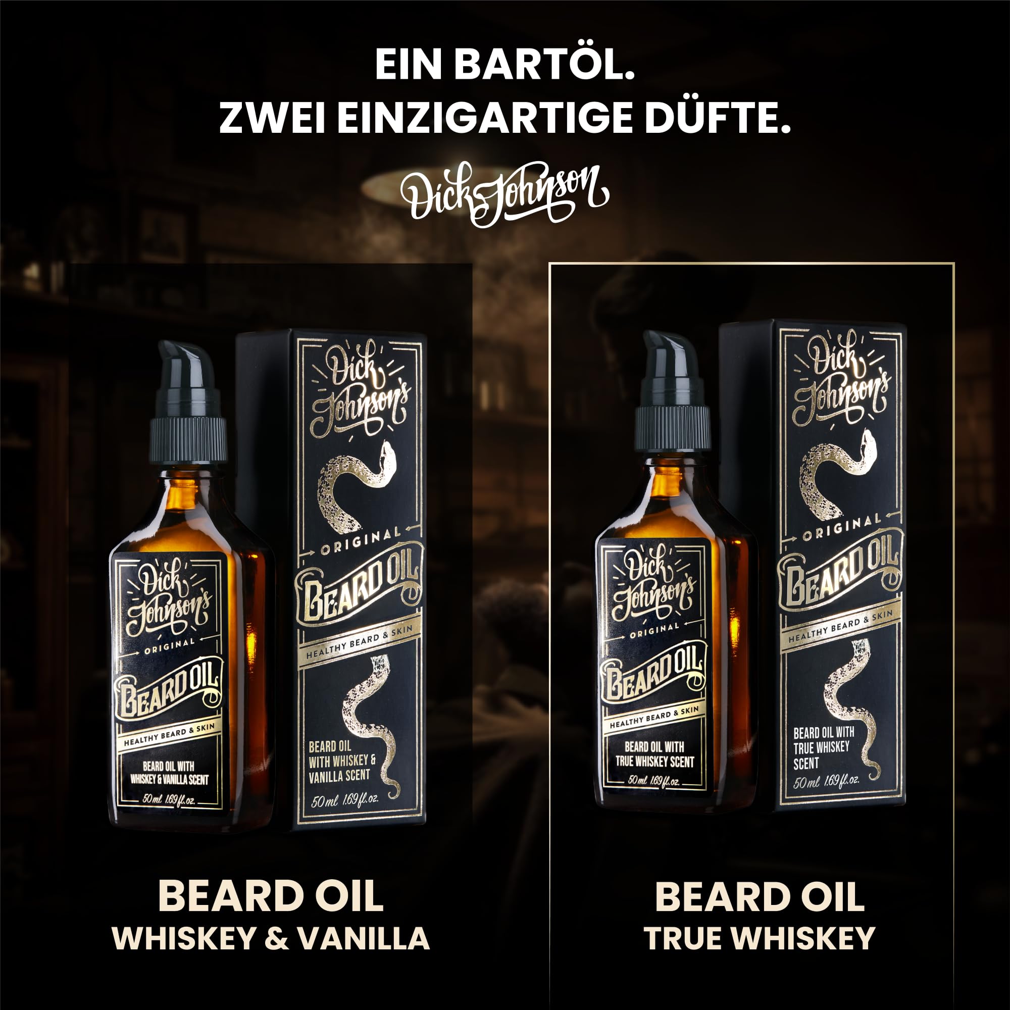 Dick Johnson Bartöl True Whiskey mit Bergamotte 50 ml – Bart Öl mit Arganöl, Mandelöl und Jojobaöl - Bartpflege Männer zur täglichen Anwendung & Bartwachstum – Geschenk für Männer – Made in Finnland