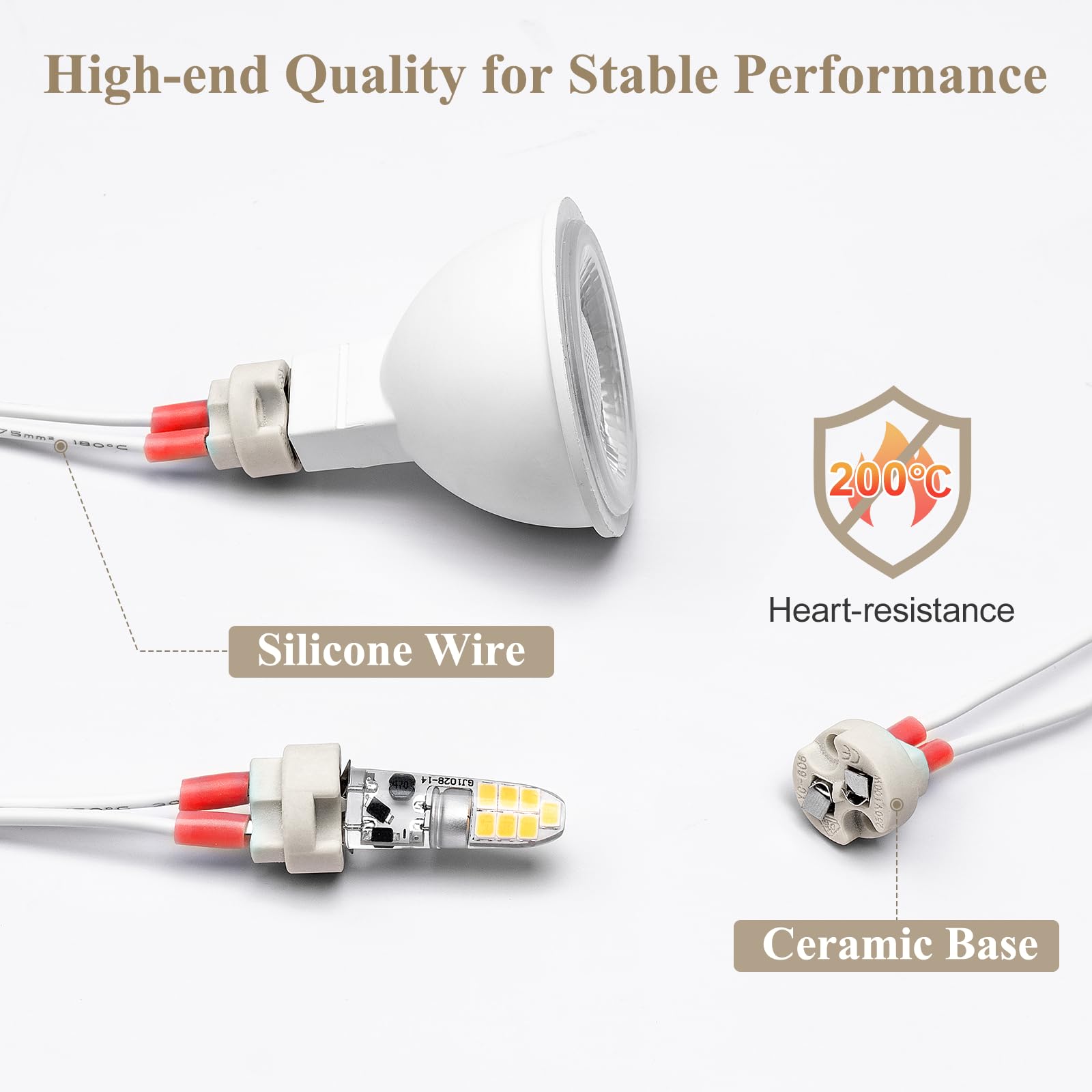 DiCUNO MR16 GU5.3 Fassung mit 15cm Silikonkabel, Sockel G4/GY6.35, Bi-Pin Stiftsockel für LED Lampen, Halogen, Glühbirnen, 12-250V, 2A, 100W, hitzebeständig bis 200°C, 24er Pack