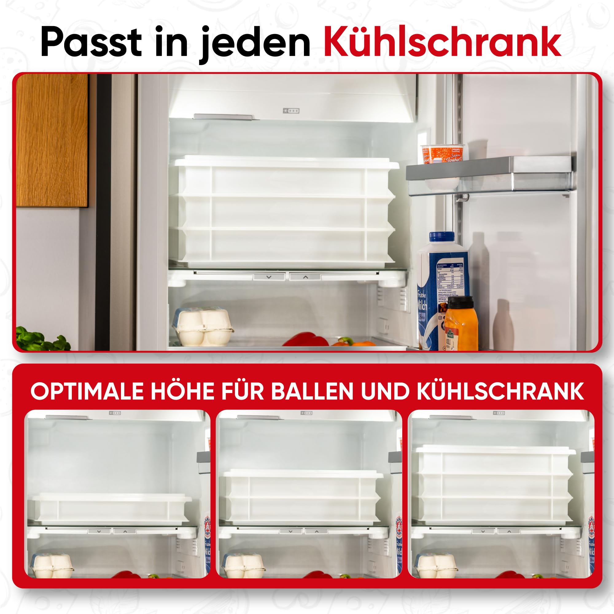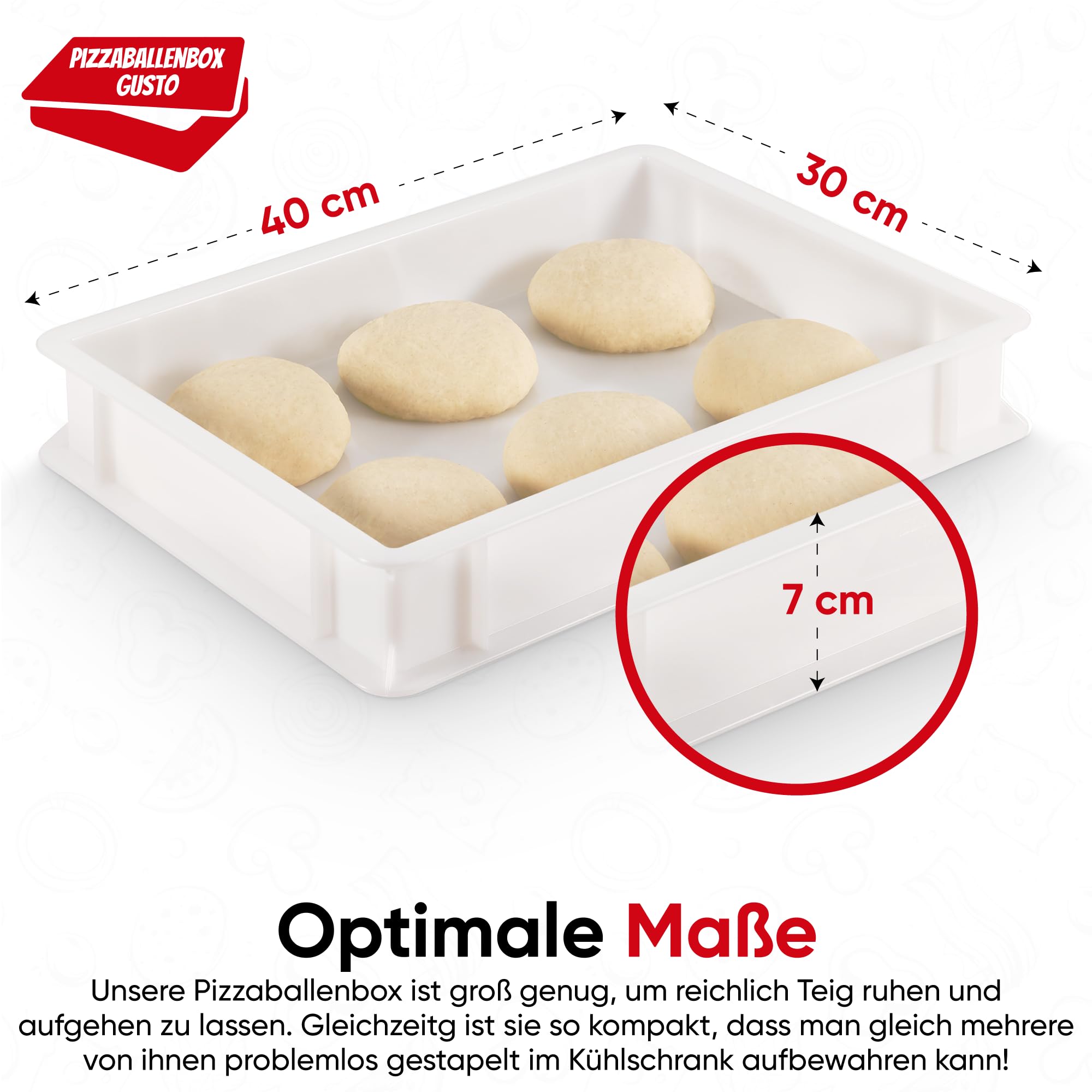DIE BOX FABRIK 2x Pizzaballenbox Gusto + 1x Deckel (40 x 30 x 7 cm) – Ihre perfekte Lösung für die professionelle Pizzateigaufbewahrung Bringen Sie die Qualität einer echten Pizzeria in Ihre Küche! Mit den stapelbaren Pizzaballenboxen von DIE BOX FABRIK wird das Lagern und Gären Ihres Pizzateigs zum Kinderspiel. Diese Boxen wurden speziell entwickelt, um Ihren Teig frisch zu halten und gleichzeitig platzsparend zu sein. Jede Box bietet genug Platz für bis zu 6 Pizzaballen und passt dank der kompakten Masse problemlos in Ihren Kühlschrank. Egal, ob Sie ein ambitionierter Hobbybäcker sind oder professionell Pizza zubereiten – diese Boxen sind die ideale Ergänzung für Ihre Küche. Die Boxen bestehen aus robustem, lebensmittelechtem Polyethylen (PE), das nicht nur sicher für Ihre Lebensmittel ist, sondern auch einfach per Hand gereinigt werden kann. Bitte beachten Sie, dass die Boxen nicht spülmaschinengeeignet sind, um ihre Langlebigkeit zu erhalten. Stapelbar und praktisch – die Boxen lassen sich sowohl mit als auch ohne Deckel sicher übereinanderstapeln. So sparen Sie nicht nur Platz im Kühlschrank, sondern auch Zeit bei der Vorbereitung Ihrer perfekten Pizza. Dank ihrer Vielseitigkeit sind die Boxen nicht nur für Pizzateig, sondern auch für andere Teigarten geeignet, was sie zu einem unverzichtbaren Helfer in jeder Küche macht. Auch für Profigriller sind diese Pizzaballenboxen eine ausgezeichnete Wahl. Egal, ob Sie Ihre Pizza auf dem Kugel- oder Gasgrill zubereiten, diese Boxen halten den Teig frisch und bereit für den perfekten Grillmoment. Produkteigenschaften auf einen Blick: Set-Inhalt: 2 Pizzaballenboxen Gusto, 1 Deckel Masse: 40 x 30 x 7 cm, geeignet für bis zu 6 Pizzaballen pro Box Stapelbar: Platzsparende Aufbewahrung im Kühlschrank Lebensmittelechtes Material: Robustes, leicht zu reinigendes Polyethylen Vielseitig: Ideal für verschiedene Teigarten Perfekt für Grillfans: Optimal für die Vorbereitung von Pizza auf dem Grill Diese Pizzaballenboxen sind ein Muss für jeden, der Pizza mit Leidenschaft zubereitet und dabei Wert auf Qualität und Effizienz legt. Holen Sie sich jetzt die perfekte Aufbewahrungslösung für Ihren Pizzateig!