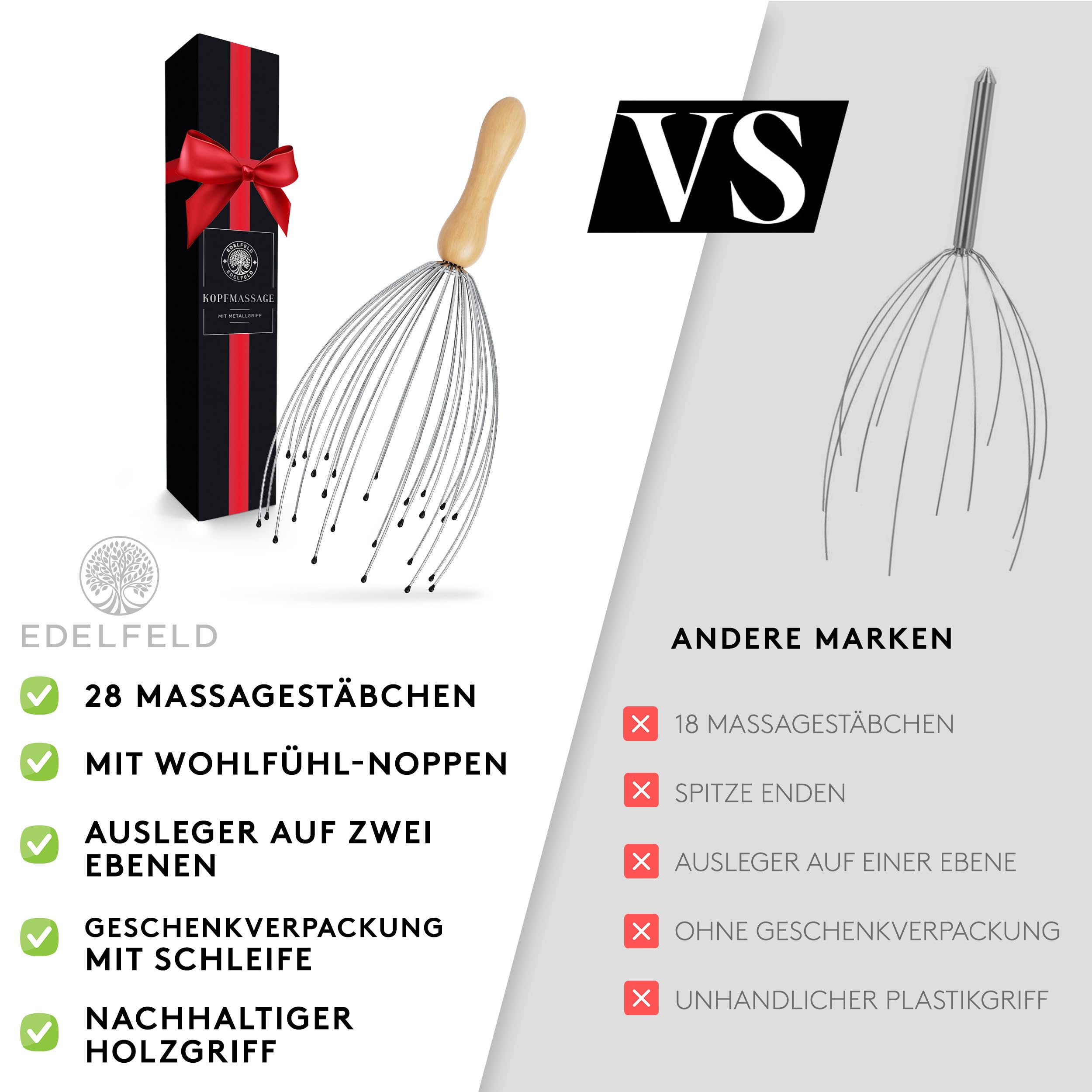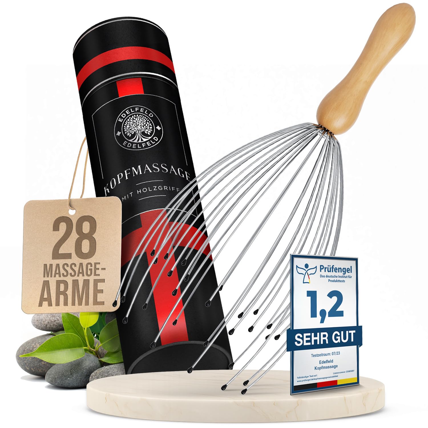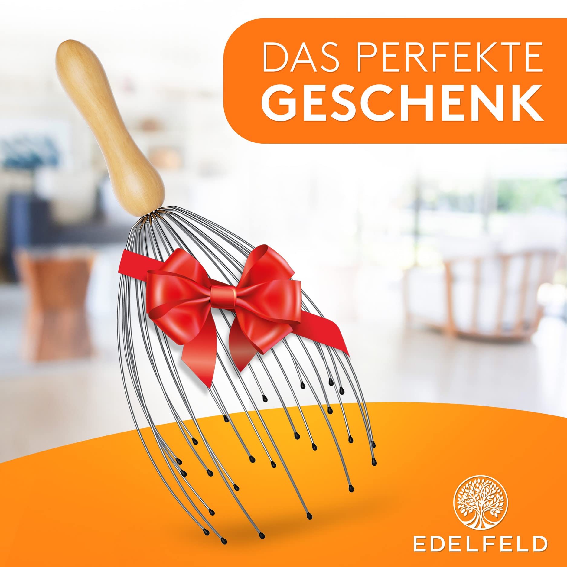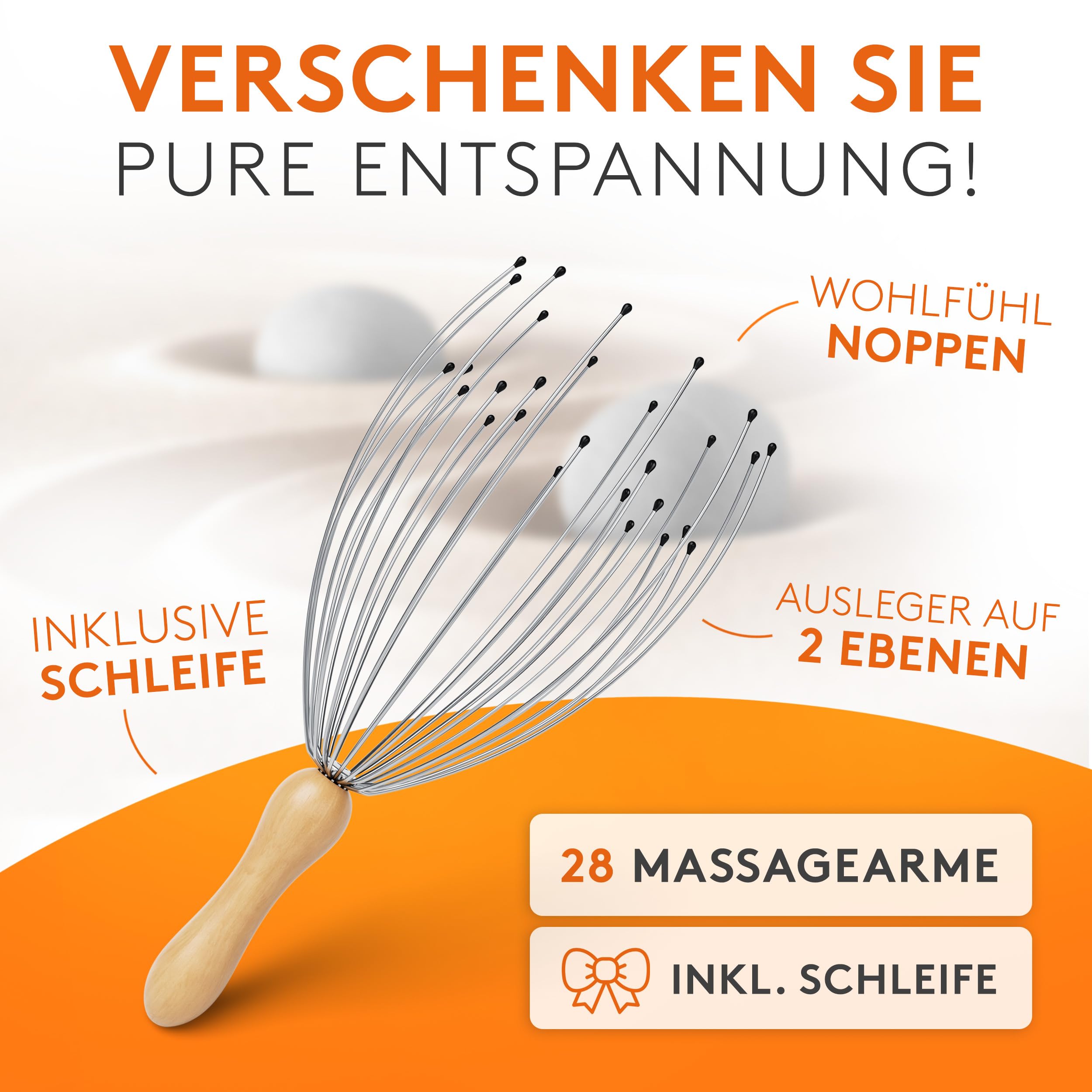 Edelfeld Kopfmassager Spinne 2025 mit Geschenkverpackung – 28 Finger, 2 Ebenen, Wohlfühl-Noppen, Schleife
