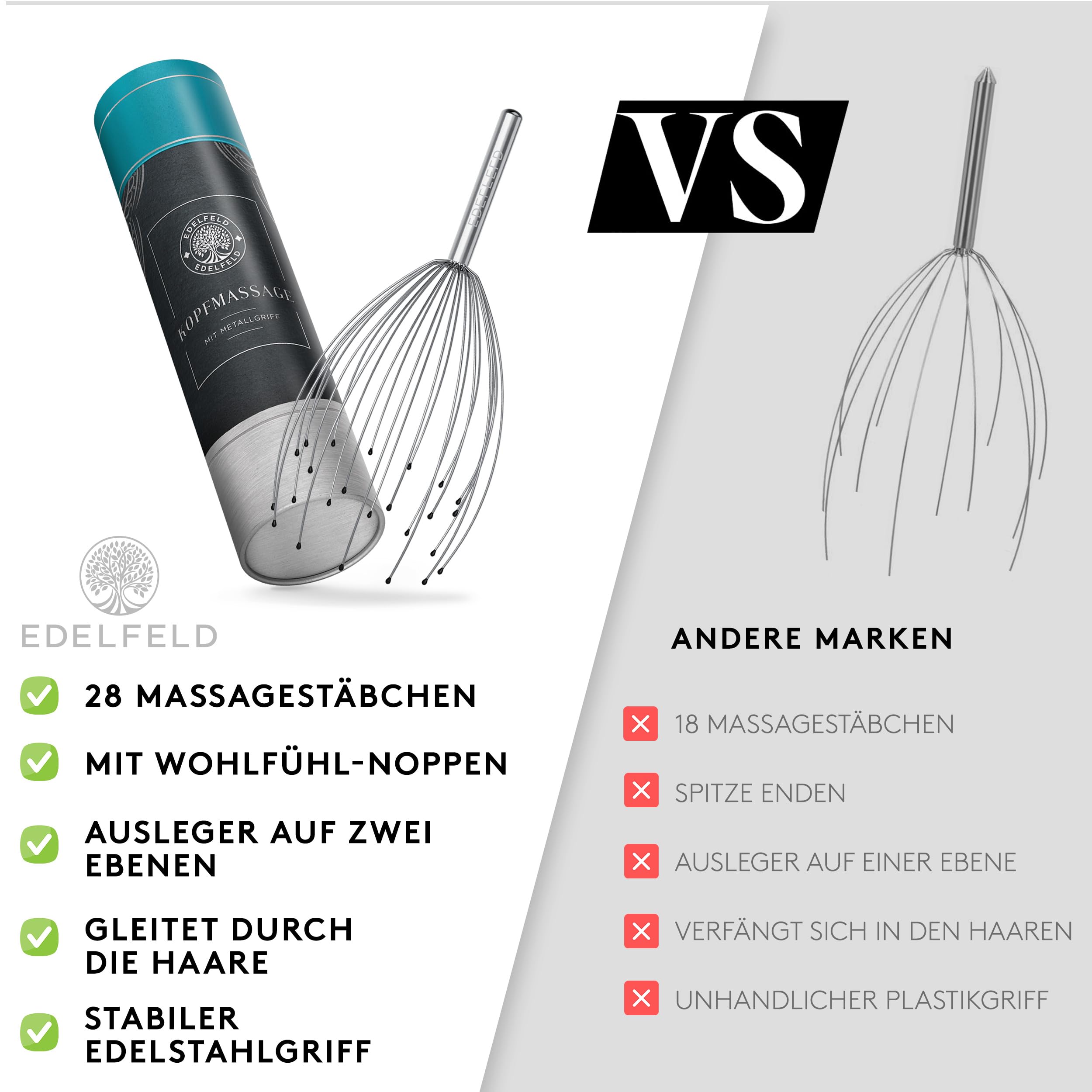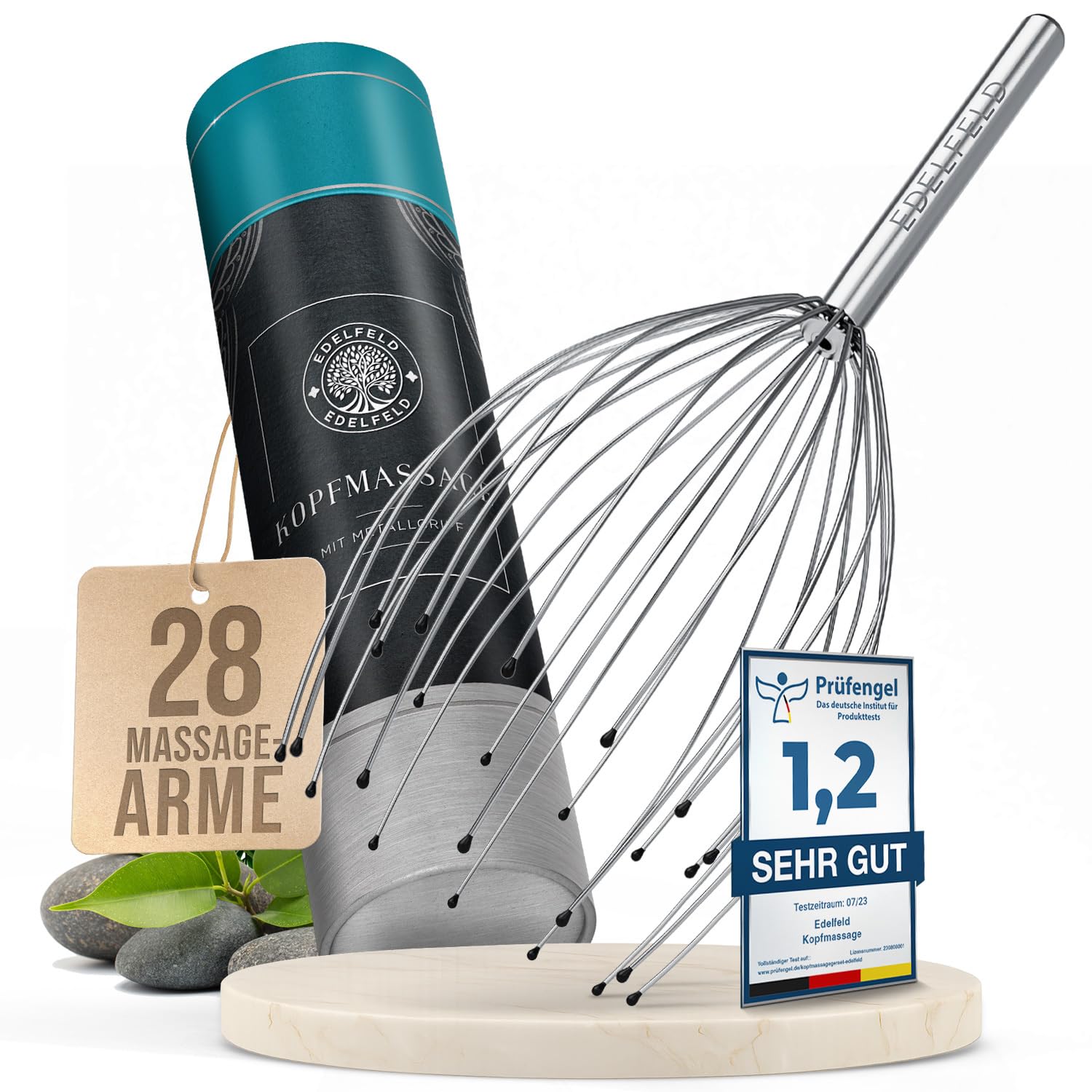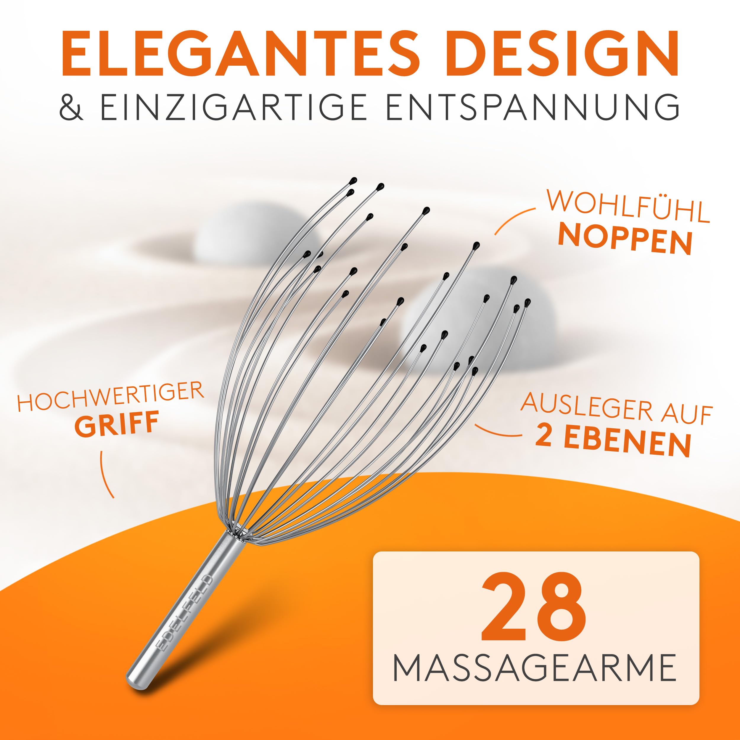 Die entspannende Kopfmassage Spinne mit 28 Fingern von Edelfeld [VERBESSERTE VERSION 2025] -Kopfmassagegerät mit Auslegern auf 2 Ebenen - Kopfkrauler mit Wohlfühl-Noppen - Massagespinne als Geschenk