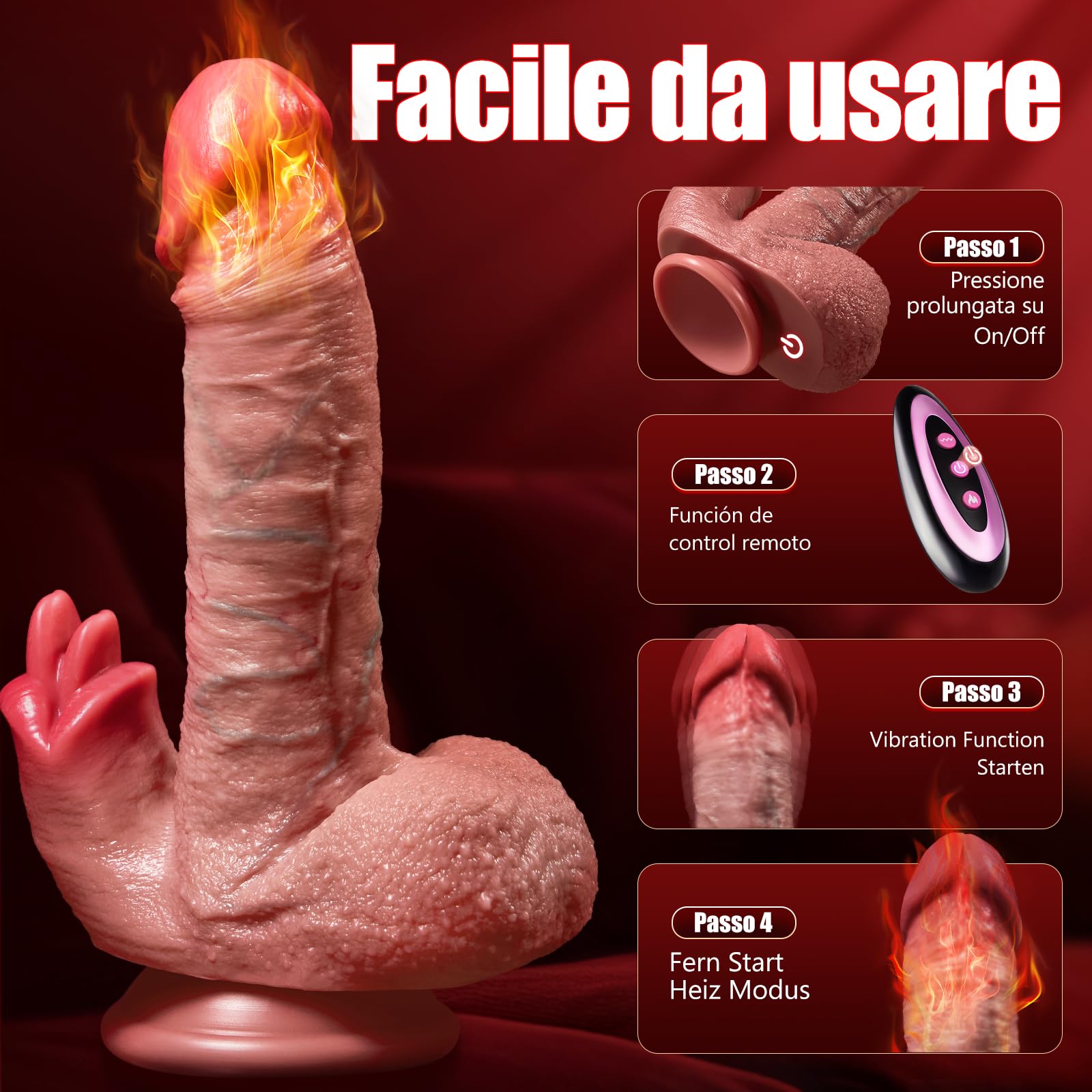 Dildo Vibrator Sex Spielzeug für Die Frau, 25.8cm Big Thick Realistische Dildo Vibration für Frauen mit 7 Schüben &10 Vibrations &Heiz &10 Leck Modi, Saugnapf Dildos für Paare G-Punkt Anale Penis