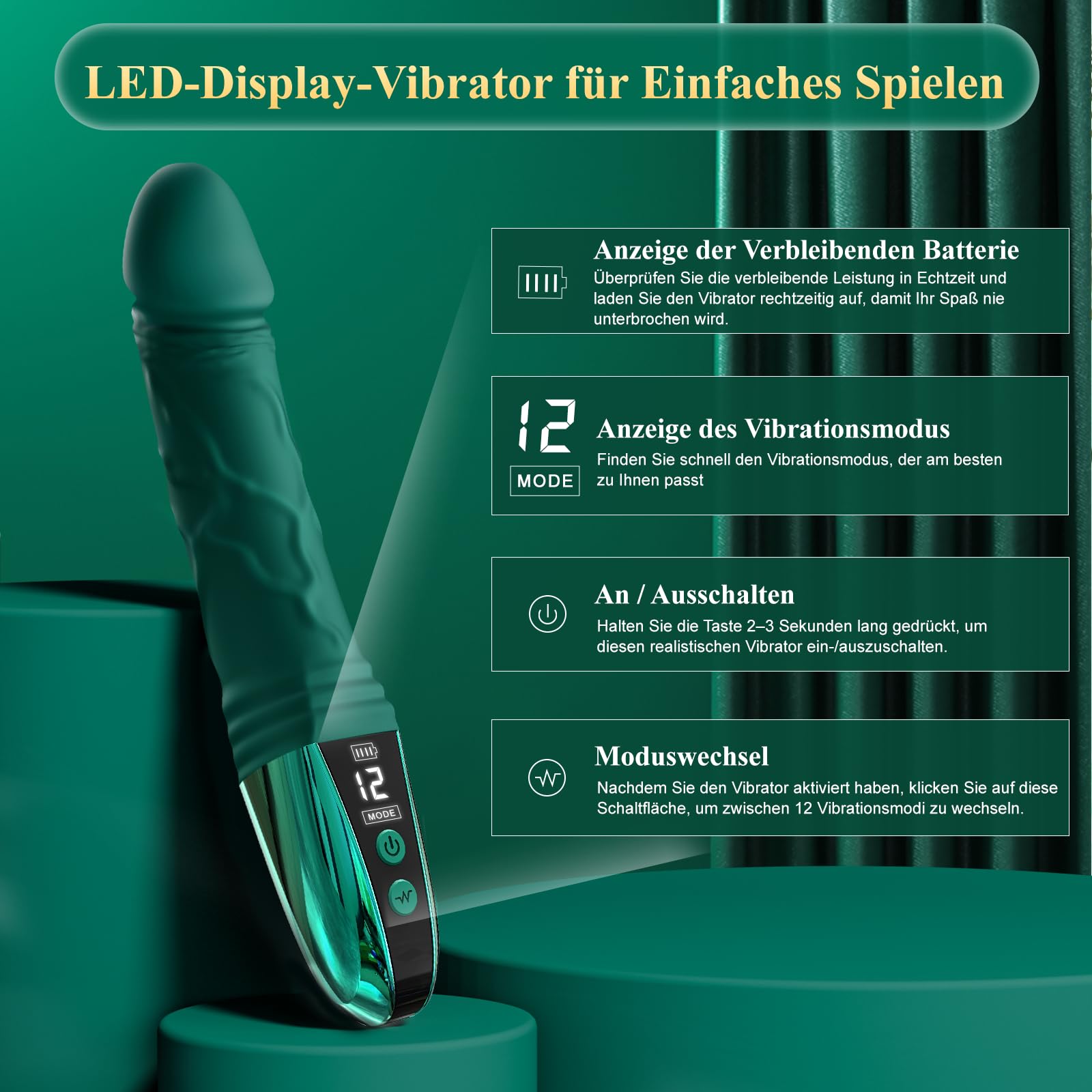 • Sex Sexspielzeug für Paare mit 12 kraftvollen Vibrationen - Dieser Anal Dildo Vibratoren Frauen leise ist nicht nur einfach mit einem einzigen Knopf zu steuern, sondern bietet Ihnen auch eine Vielzahl von Spielmöglichkeiten, die 12 starken Stimulationsintensitäten und verschiedenen Arten von Vibrationsmodi werden Sie weit darüber hinaus grosse Überraschungen bereiten Ihre Phantasie.