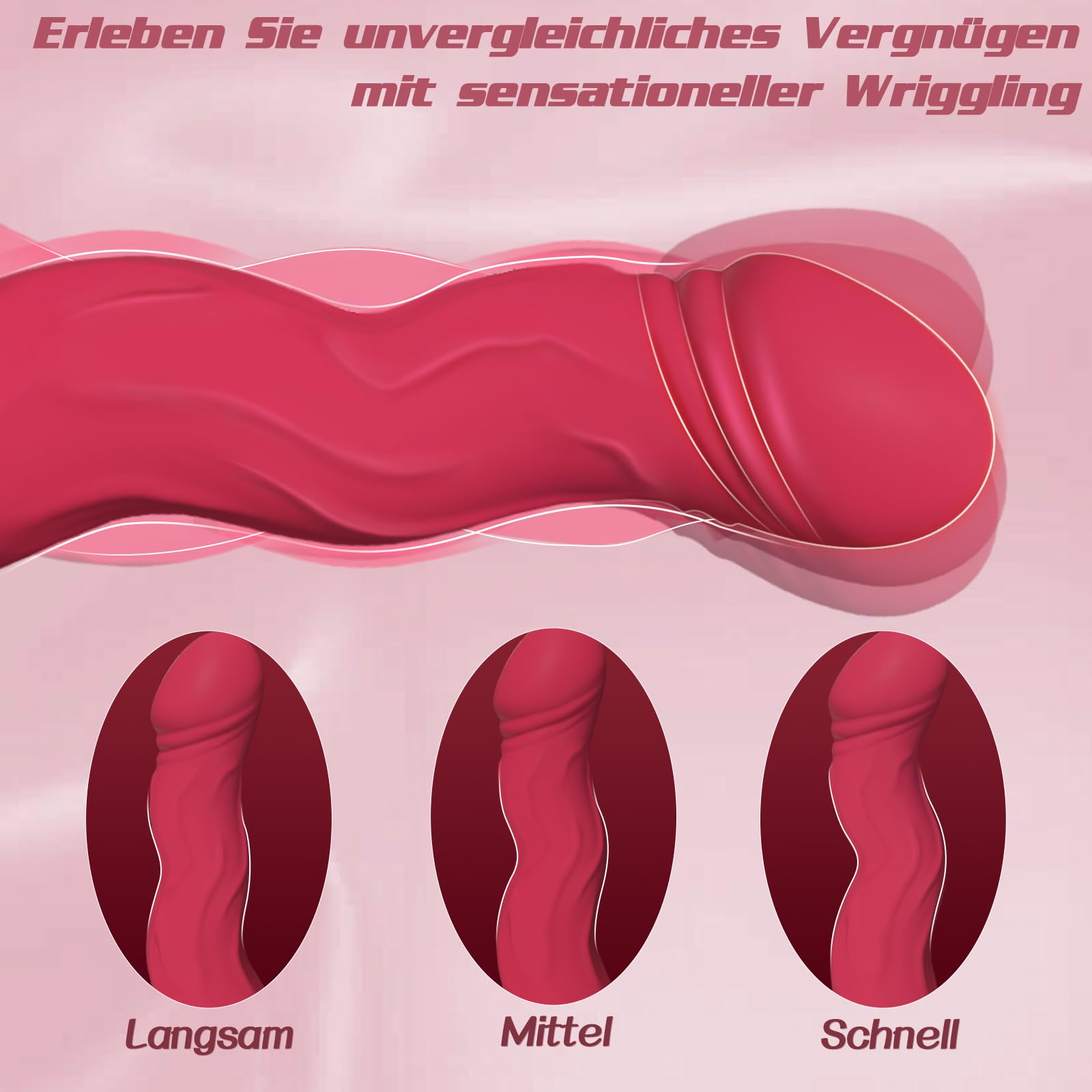 • Tiefes, pulsierendes Wriggle - Das Sex Spielzeug für die Frau gleitet in deine Muschi und beginnt sich langsam oder schnell zu bewegen – rhythmische Wellen, die in dir auf- und absteigen. Jede Kontraktion rollt nach oben durch deine Vaginalwände, baut Empfindung auf, während sie sich in Richtung G-Punkt hocharbeitet. Neckend, drückend, haltend – bis dein Körper nachgibt, zitternd in der Erlösung.