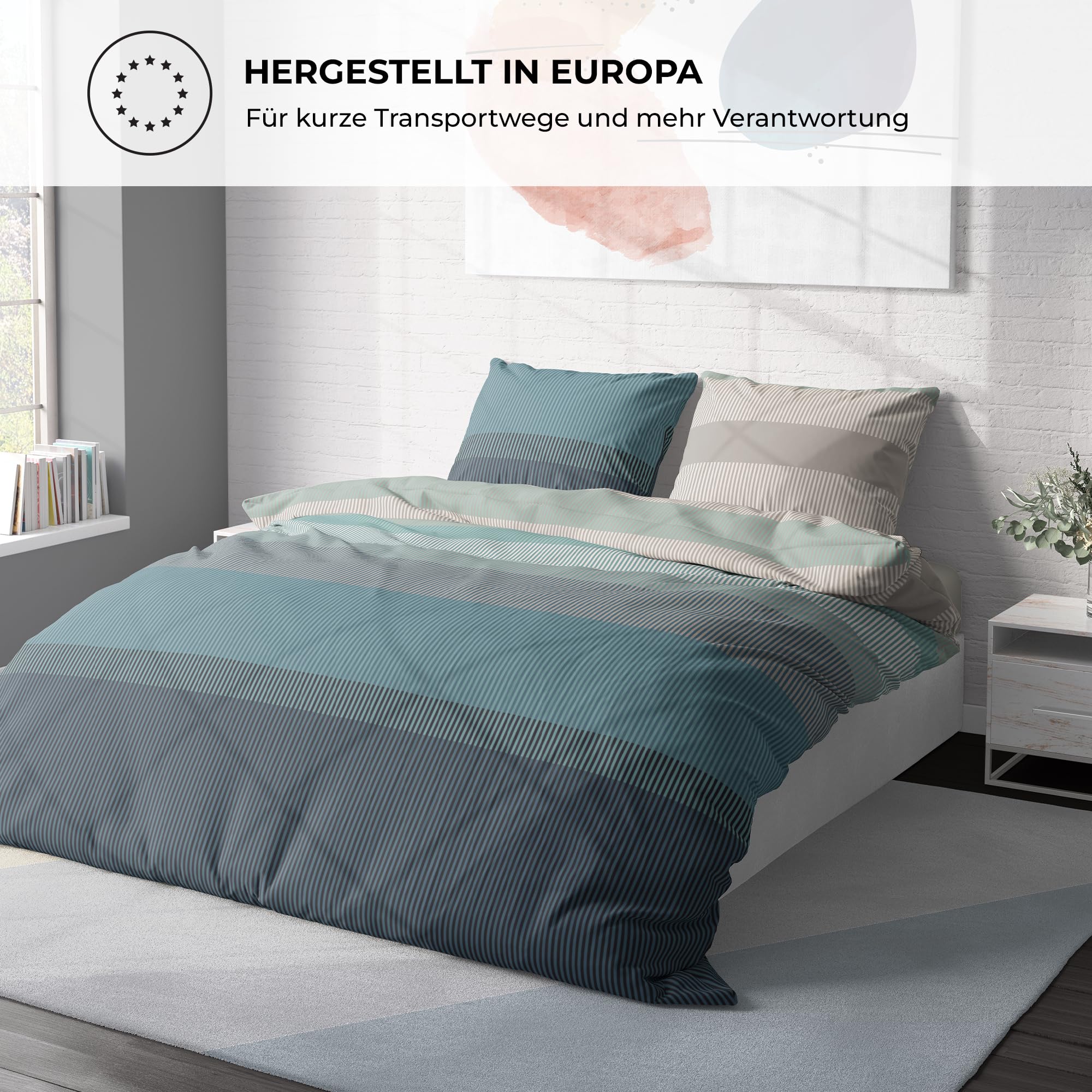 Die moderne Bettwäsche "Neptune" von Dilios sorgt für ein frisches Ambiente im Schlafbereich. Ausgestattet mit praktischem Reissverschluss, lassen sich Kissen und Bettbezug im Handumdrehen ab und beziehen. Das verwendete Material begeistert mit einer hochwertigen Qualität und ist sowohl pflegeleicht als auch trocknergeeignet. Zudem fühlen sich die Bezüge weich an, sodass sie gemütliche Nächte ermöglichen.
