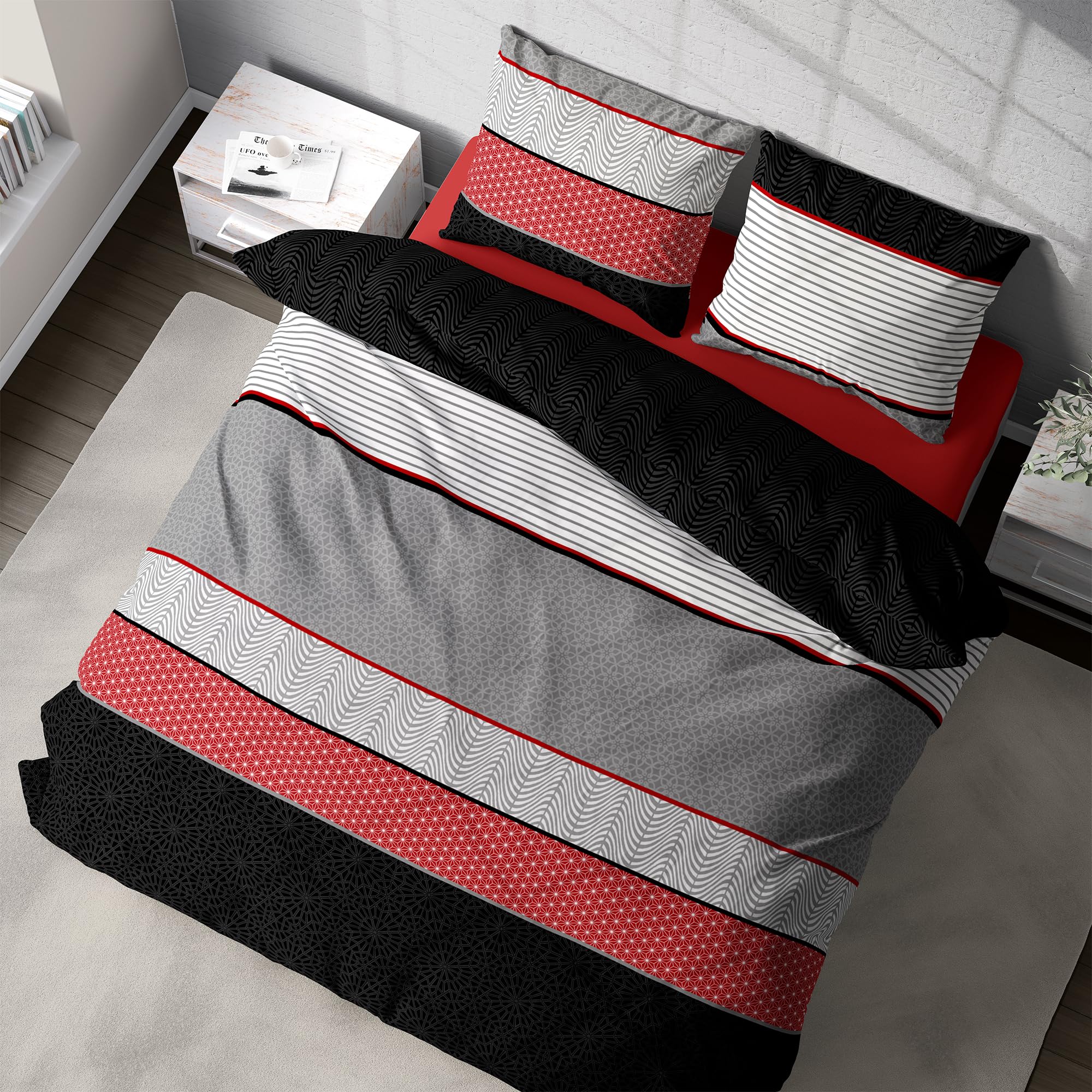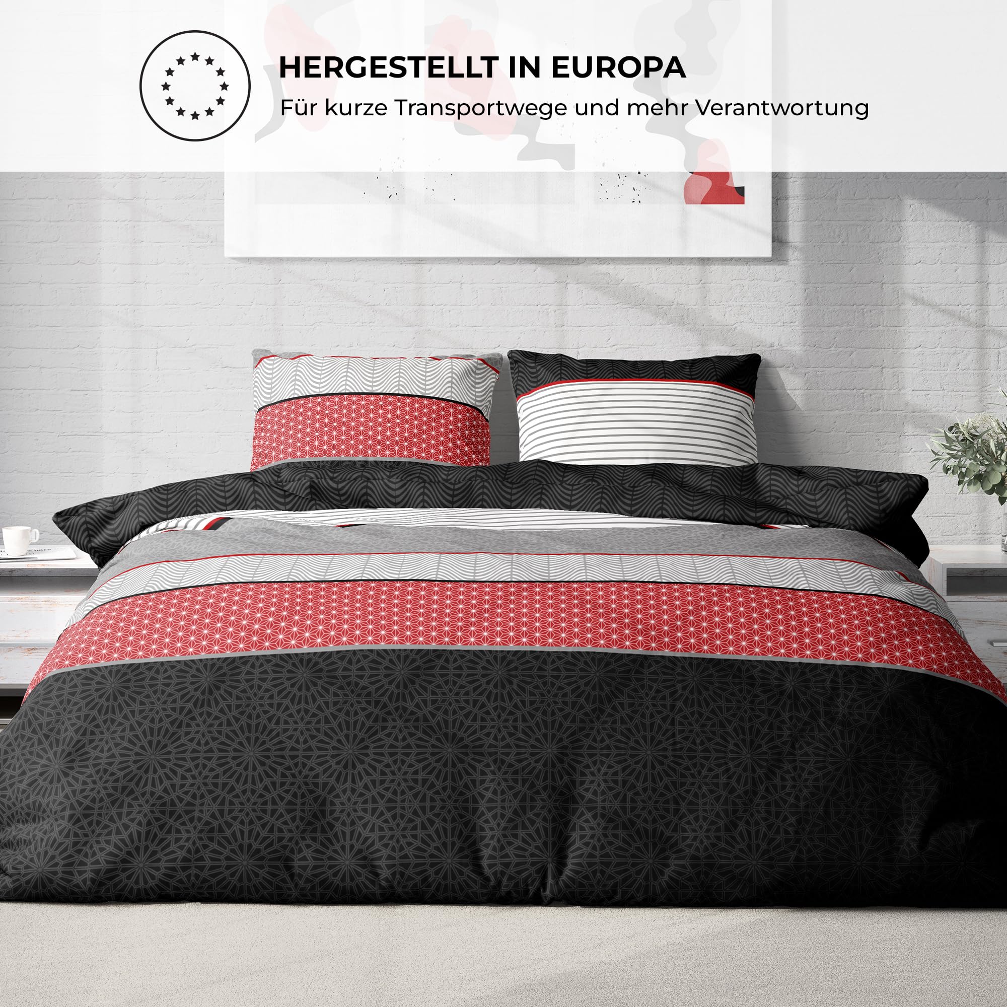 Entdecken Sie luxuriösen Schlafkomfort mit dem DILIOS Premium Bettwäsche-Set. Jedes 2-teilige Set beinhaltet einen Bettbezug in 135x200 cm und einen Kissenbezug, gefertigt aus 100% atmungsaktiver Renforcé-Baumwolle. Das elegante Design in Schwarz, Rot und Grau verleiht jedem Schlafzimmer einen modernen und zugleich gemütlichen Charakter. Der hochwertige Reissverschluss bietet nicht nur Komfort beim Wechseln der Bettwäsche, sondern unterstreicht auch die Qualität und Langlebigkeit dieses Sets. Unsere Bettwäsche ist maschinenwaschbar, trocknergeeignet und pflegeleicht, perfekt für den anspruchsvollen Alltag. Wählen Sie DILIOS für eine Bettwäsche, die stilvolles Design mit praktischer Funktionalität kombiniert.