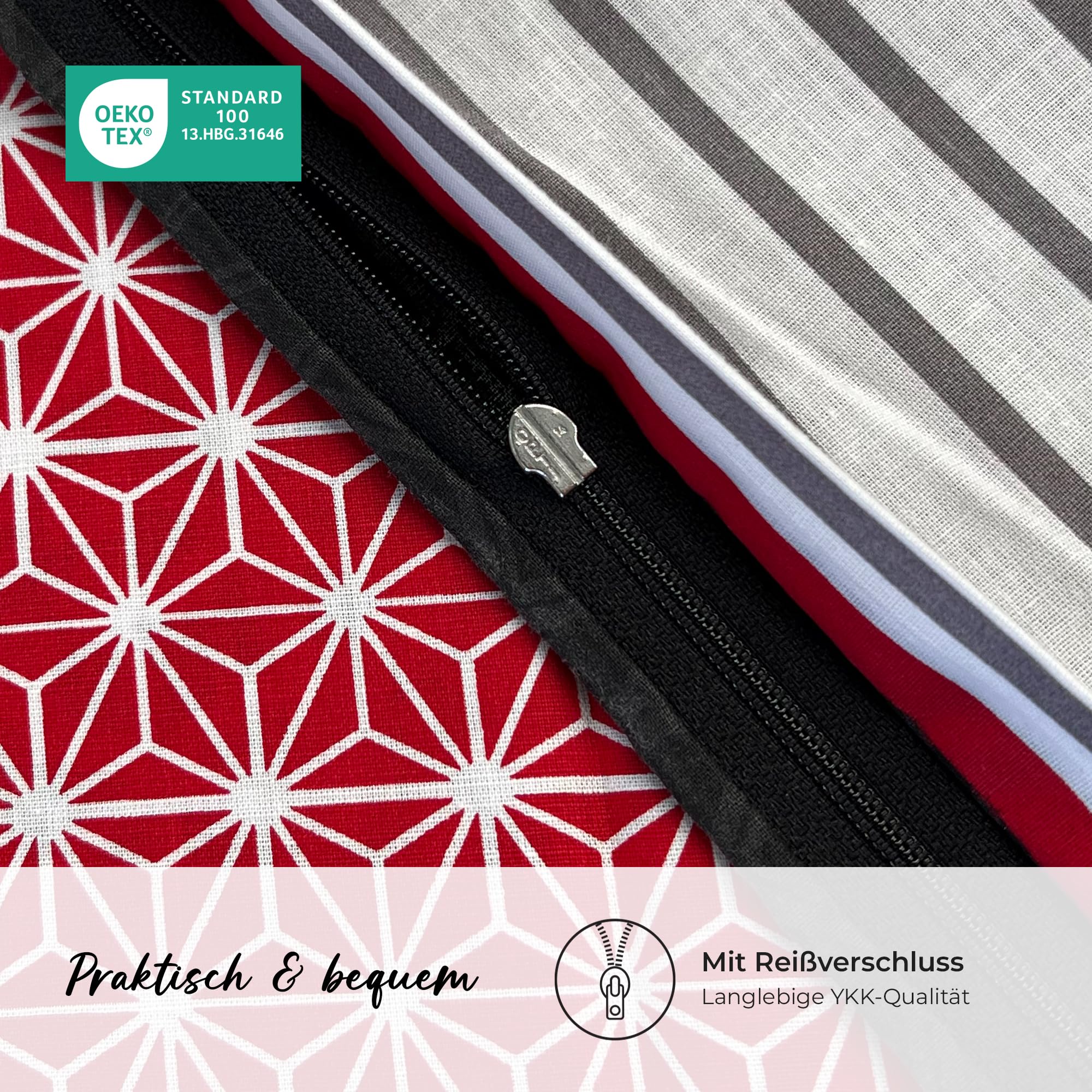 DILIOS Premium Bettwäsche 135x200 – 100% Baumwolle, ÖKO-TEX Zertifiziert, Renforcé, Atmungsaktiv & Antiallergisch, mit Reissverschluss, 2teilig – Bettbezug + Kissenbezug 80x80, Rot Schwarz