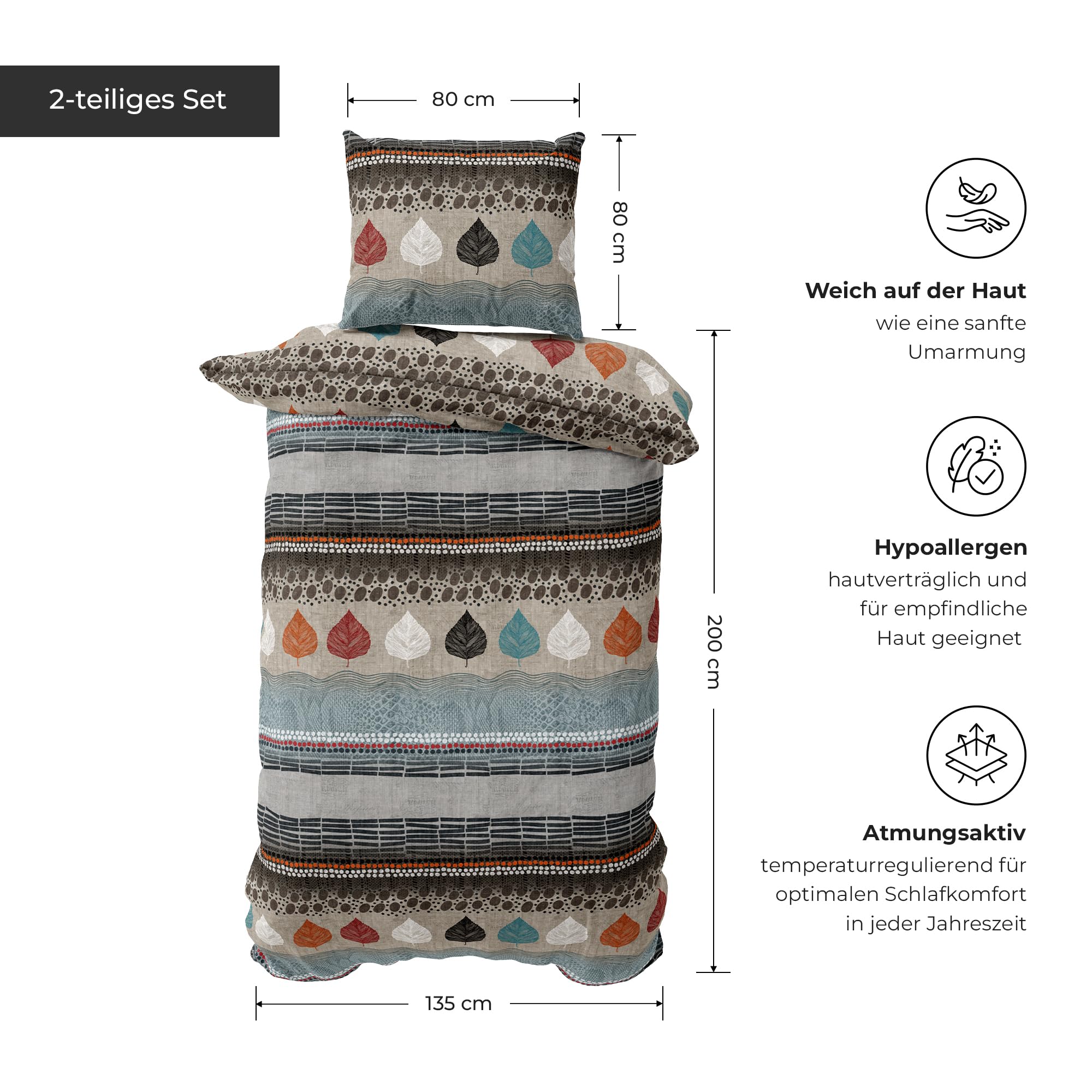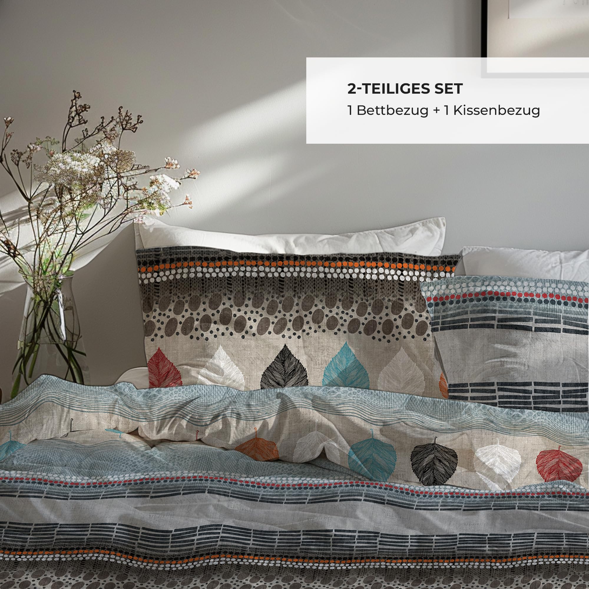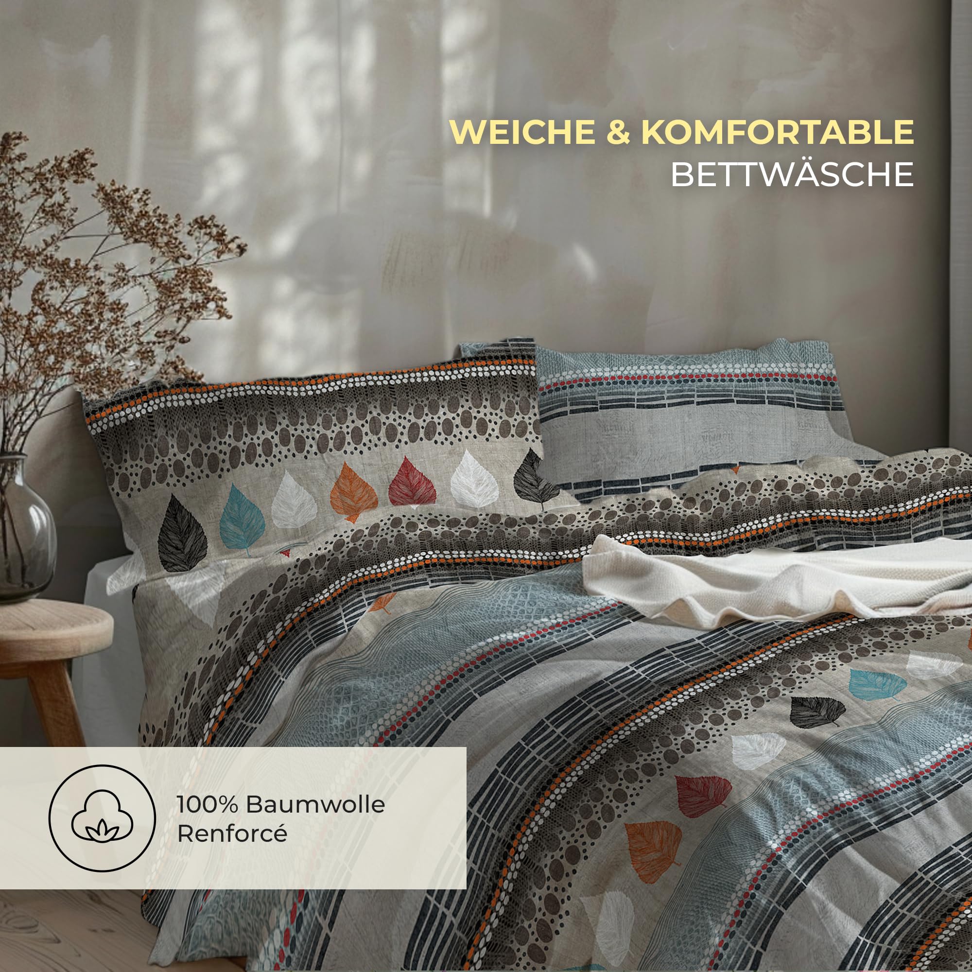 DILIOS Premium Bettwäsche 135x200 – 100% Baumwolle, ÖKO-TEX Zertifiziert, Renforcé, Atmungsaktiv & Antiallergisch, mit Reissverschluss, 2teilig – Bettbezug + Kissenbezug 80x80, Beige, Grau, Hellblau