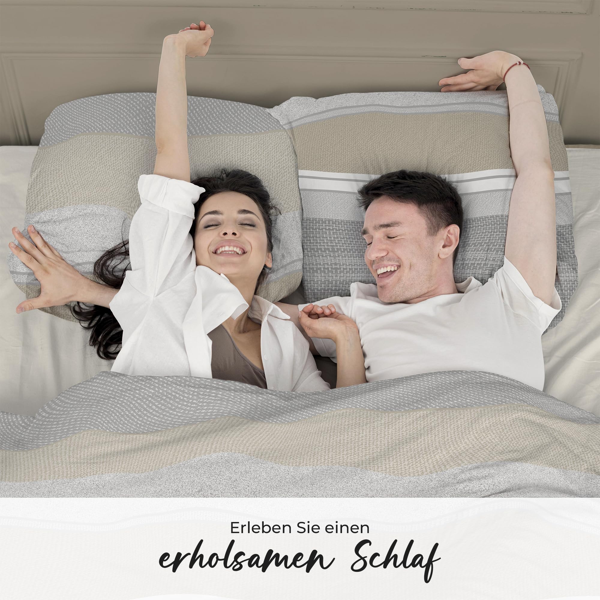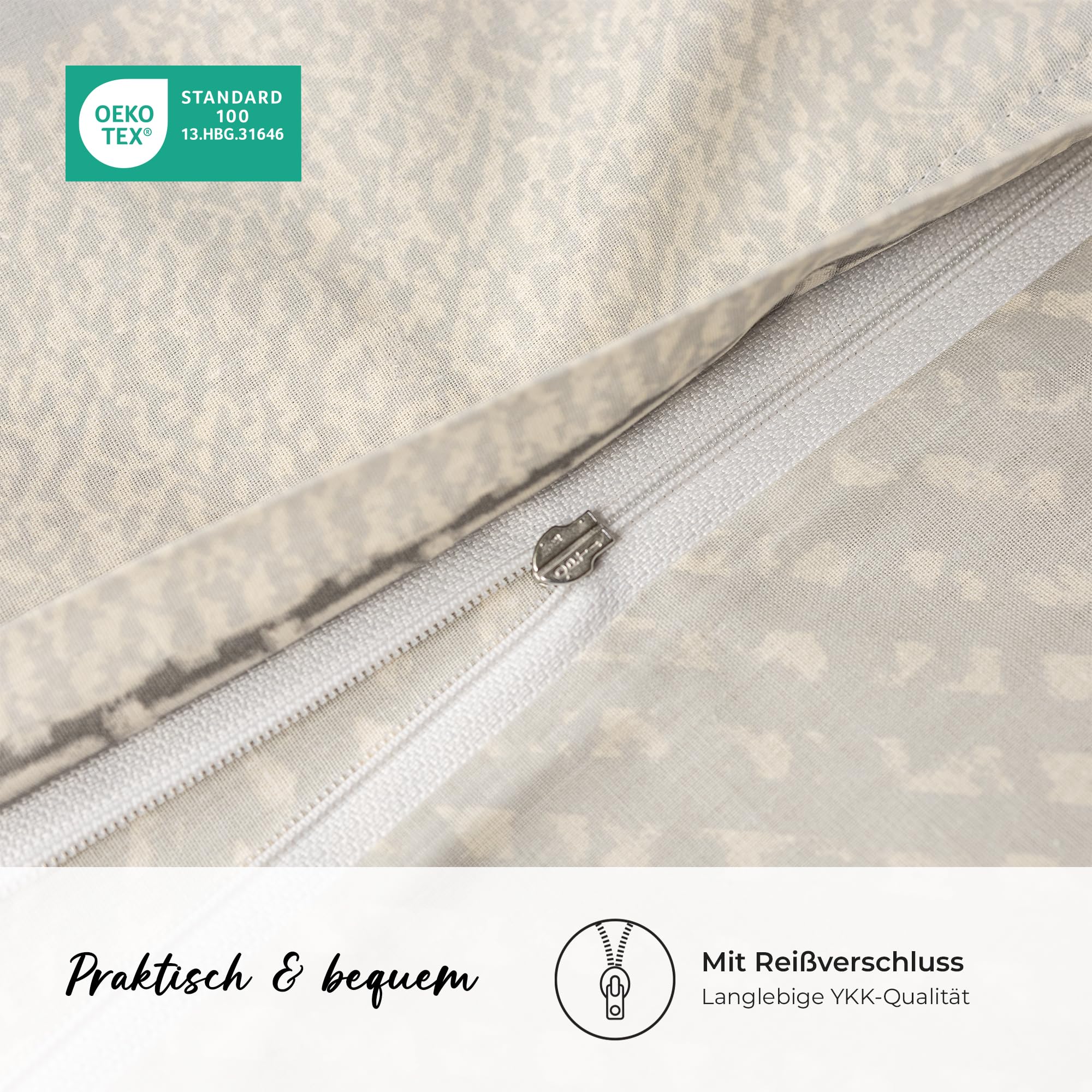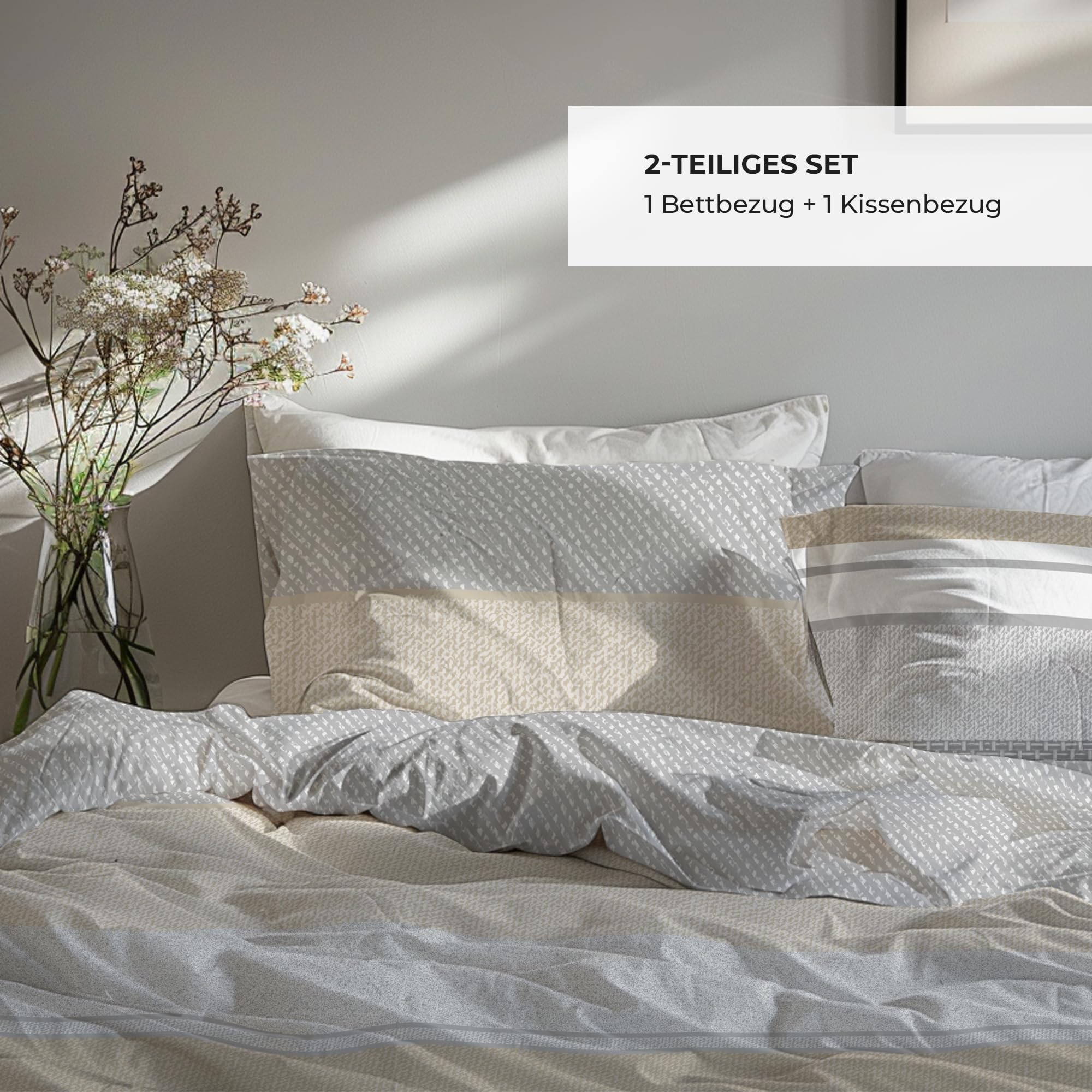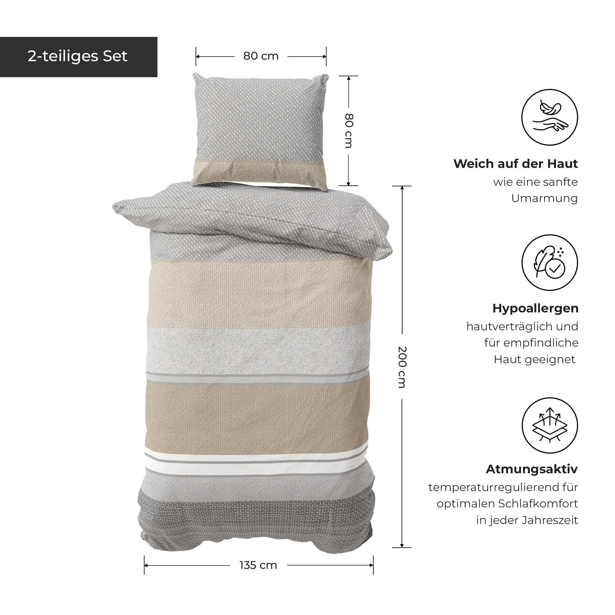 DILIOS Premium Bettwäsche 135x200 – 100% Baumwolle, ÖKO-TEX Zertifiziert, Renforcé, Atmungsaktiv & Antiallergisch, mit Reissverschluss, 2teilig – Bettbezug + Kissenbezug 80x80, Grau, Braun, Weiss