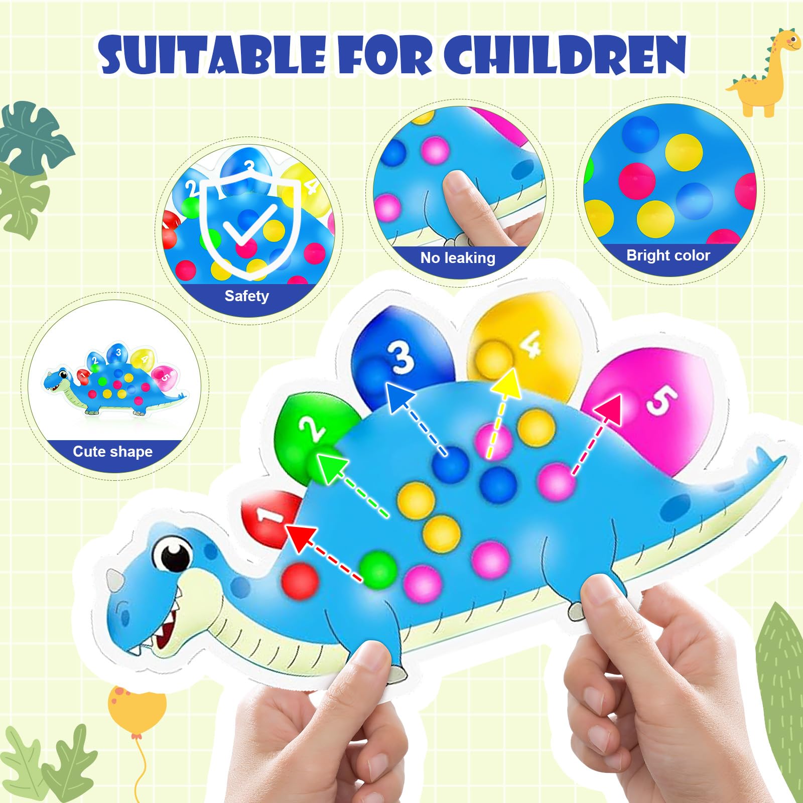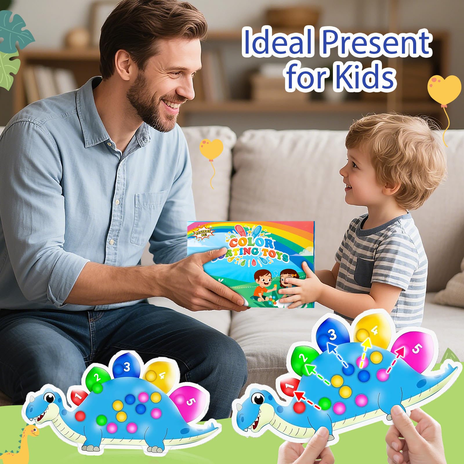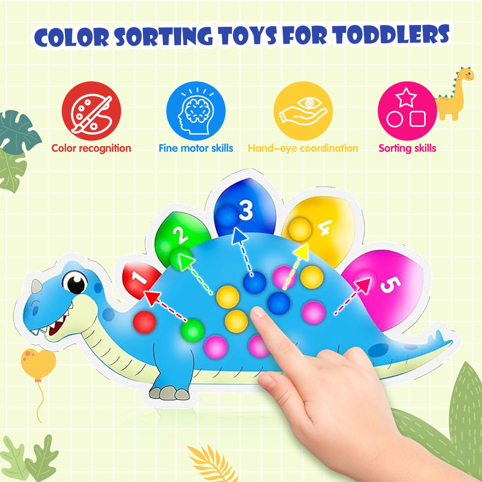 Dinosaurier Farbensortierspiel Zählen Superweiches Squeeze Sensorikspielzeug für Kleinkinder Montessori Lernspiel Farberkennung Feinmotorik Training Reise Anti Stress Spielzeug ab 3 Jahren(Blau)