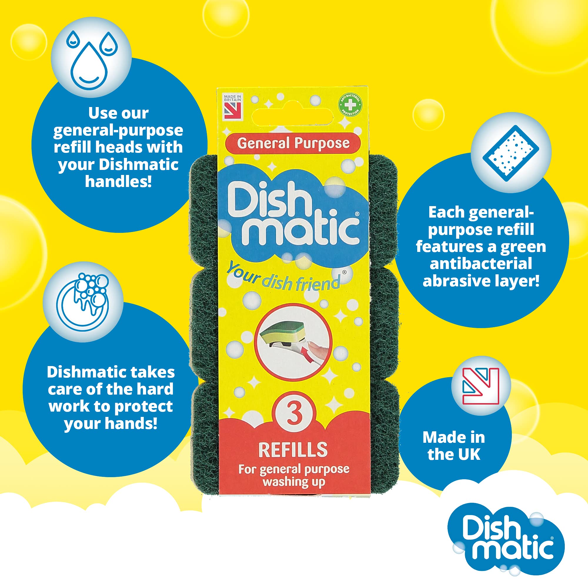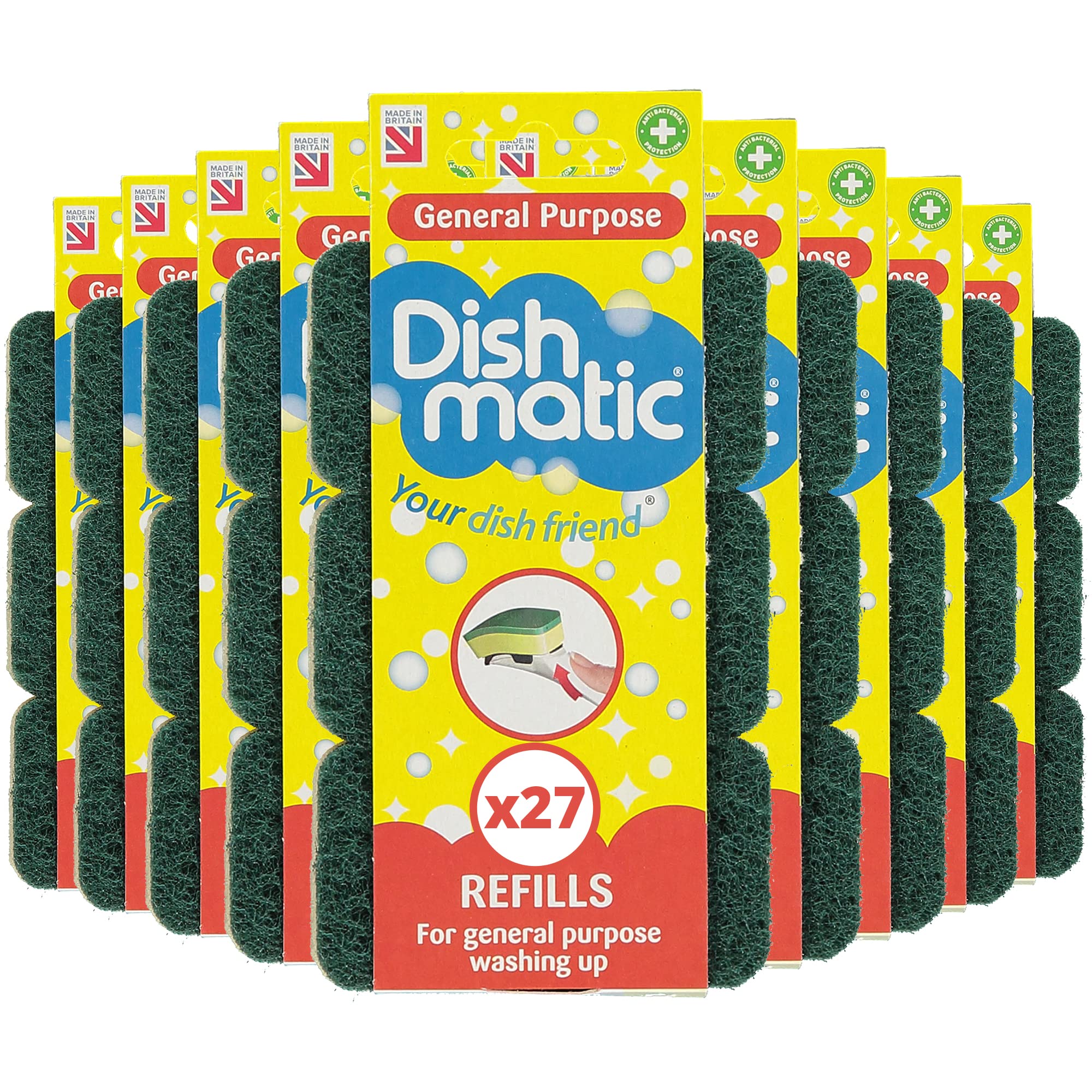 Dishmatic Grün Allzweck-Spülschwamm Nachfüllköpfe - Küche Spülgriff Nachfüller | 9 x 3 Stück | 27 Stück (1er Pack)