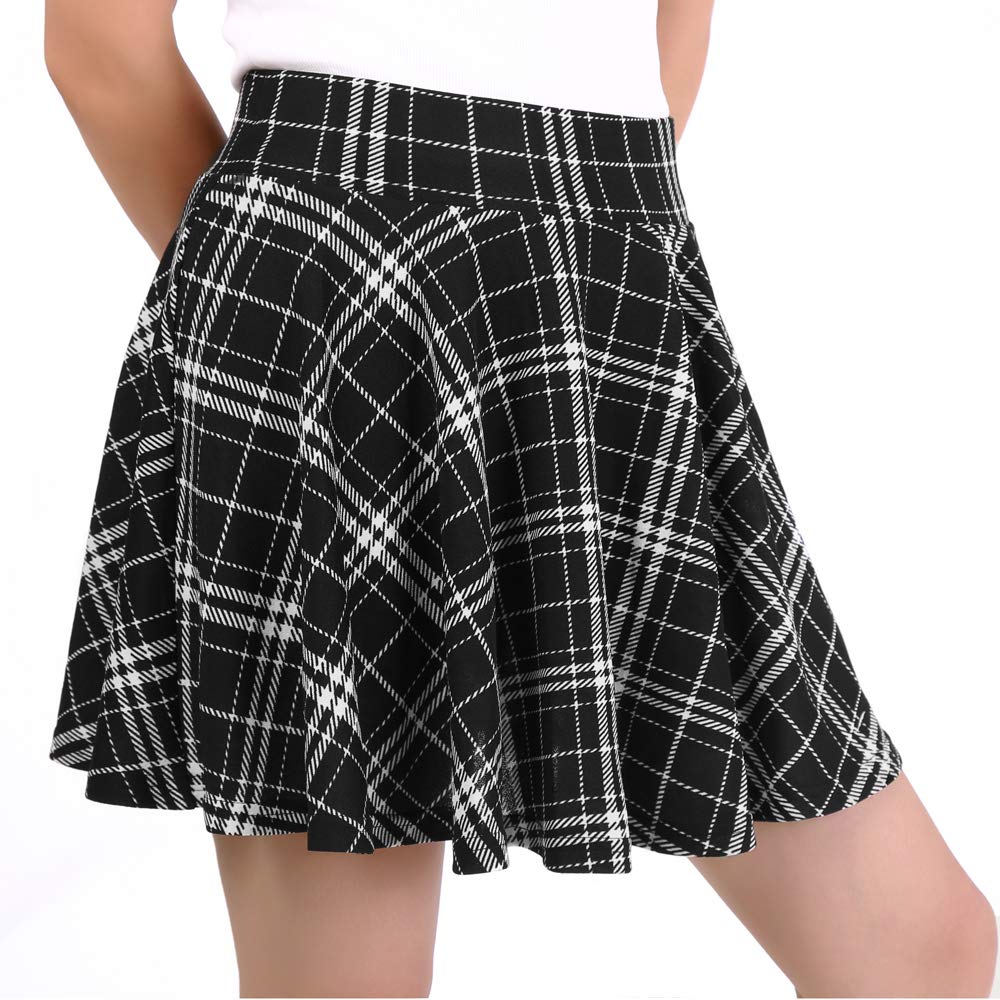 DJT Damen Mädchen Basic Solid Dehnbaren Informell Mini Skater Rock mit Shorts