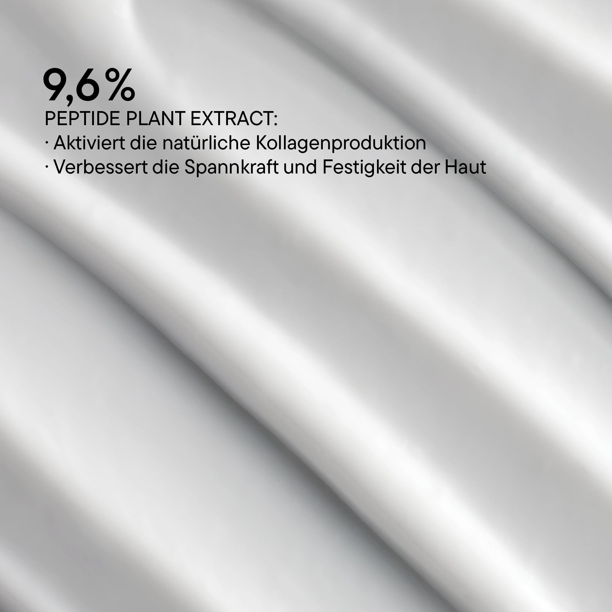 - Wirkstoffe: Peptid-Pflanzenkomplex, veganes Kollagen, Hyaluronsäure, Squalan