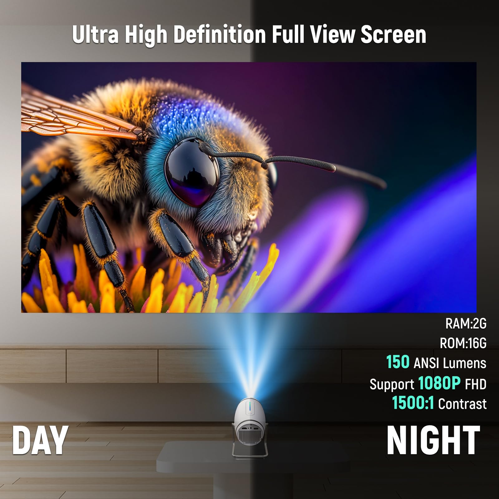 Doingdo Mini Projektor 4K Mini Beamer WiFi 6 und Bluetooth 5.4, Tragbarer Video Projektor, 130 Zoll Home Cinema Smart Projektor Kompatibel mit HDMI/TV Stick/USB / PS5 (Integrierte App)