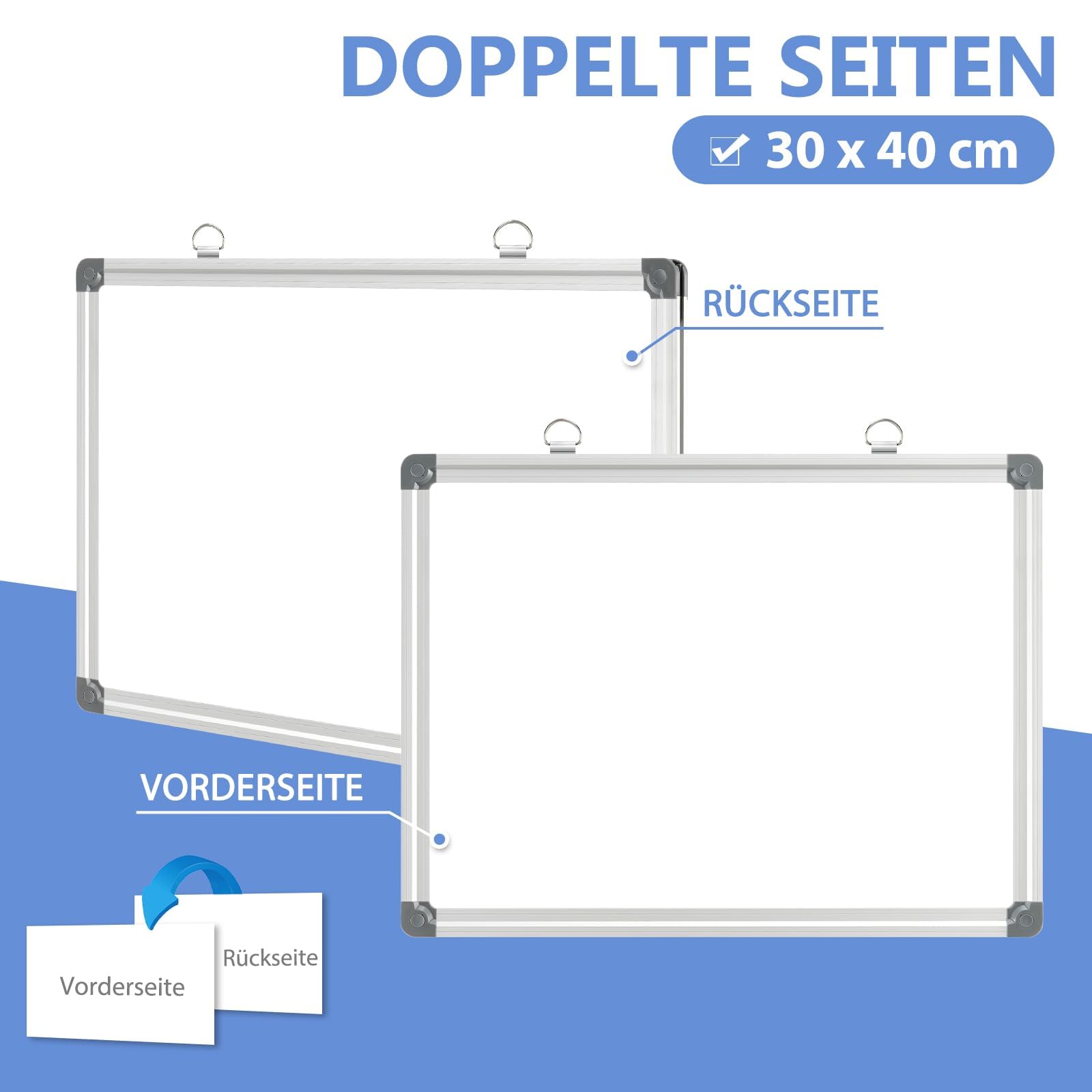 • Hinweis: 30*40 ist ein doppelseitiges Whiteboard und beinhaltet nicht die Stiftablage.