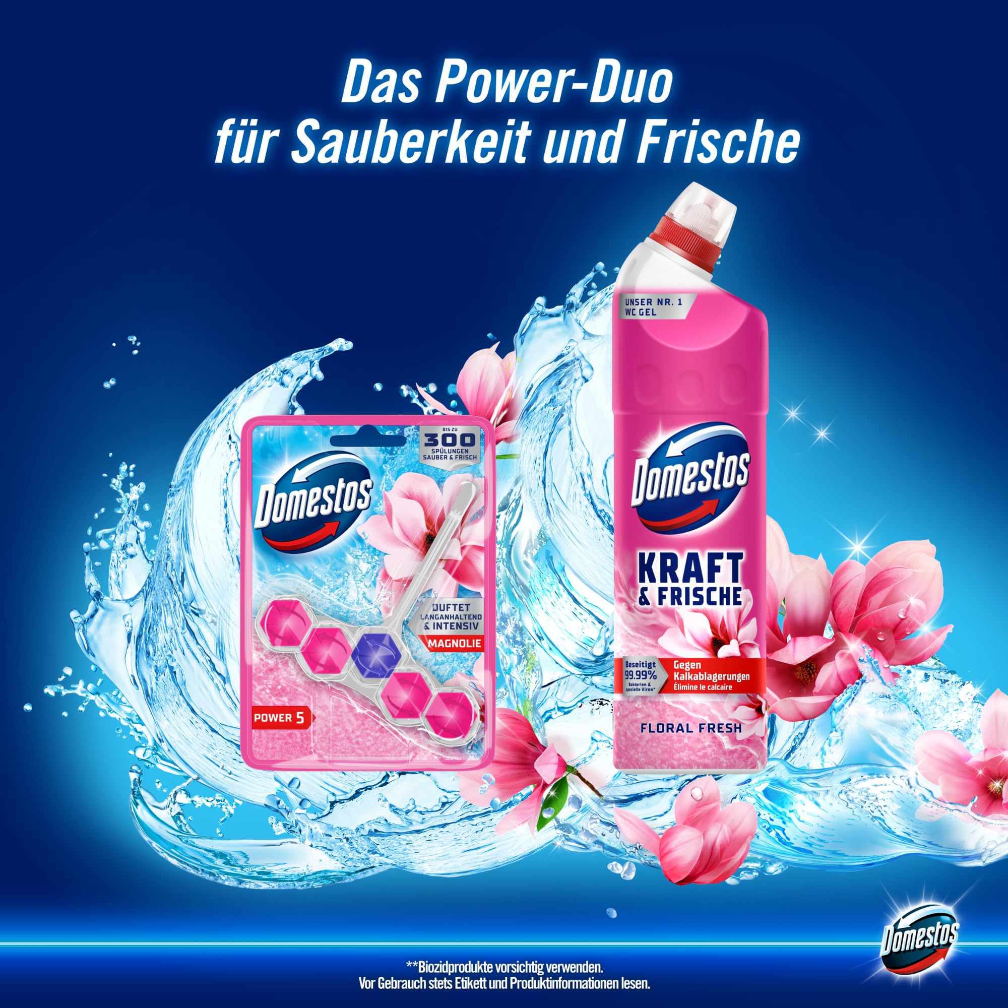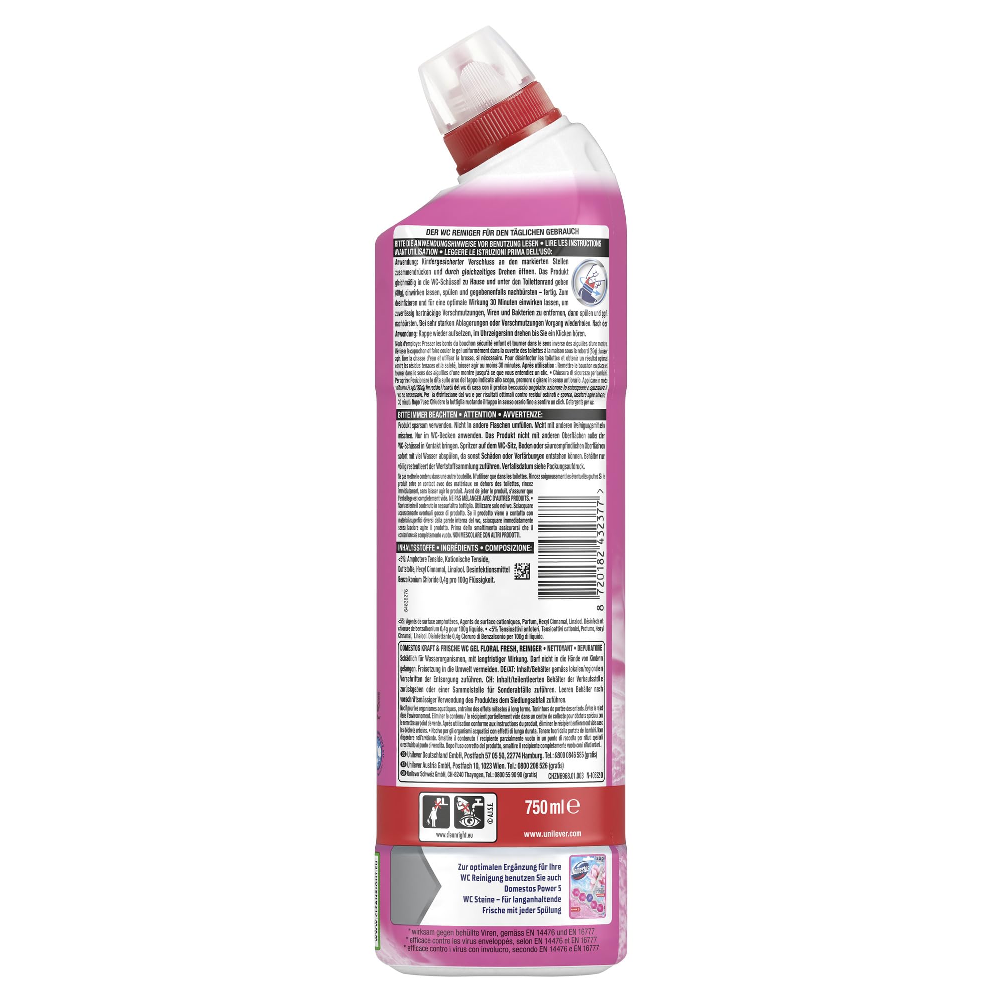 Domestos Kraft & Frische WC Gel Floral Fresh Reinigungsmittel mit frischem Blumen-Duft für hygienische Sauberkeit 750 ml 1 Stück