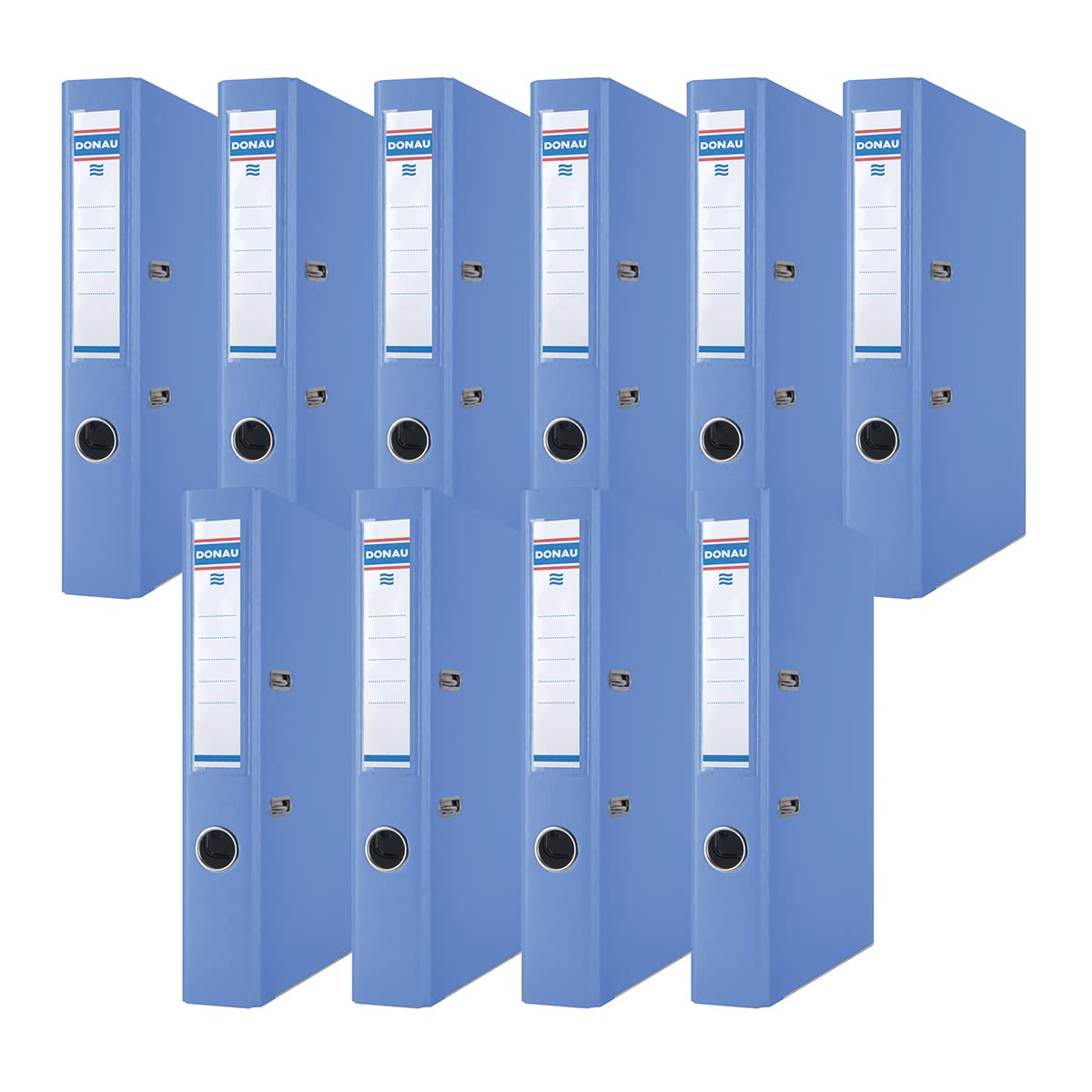 DONAU 3955001PL-10 - Premium Ordner Schmal/ DIN A4 / 5 cm - 50 mm / 10er Pack - 10 Stück. Farbe - Blau Hochwertiger Hebel mit Druckbelastung Austauschbares, doppelseitiges Rückenetikett Verstärktes Fingerloch Hochwertiger Ordner aus 2,1 mm dickem Karton mit einer Grammdichte von 1290 GSM, ausgestattet mit einem unteren Verstärkungsband - A4/ 50mm Ordner/ Büroordner/ Briefordner/ Rückenbreite: 50 mm, Masse: 50 x 320 x 285 mm, Farbe: Blau Mit dem Grünen Punkt versehen - Teilnahme am Recycling- und Verwertungssystem, das sich aus den Bestimmungen des polnischen und EU-Rechts ergibt Beidseitig beschichtet mit ökologischer Polypropylenfolie (100 µm)/ Kunststoffbezug PP/Papier mit der Struktur eines Leinentuchs