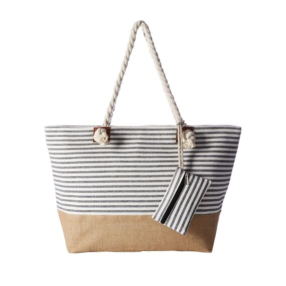 DonDon grosse Strandtasche XXL mit Reissverschluss - Umhängetasche Damen - grosse Badetasche für Urlaub vielseitige Shopper Tasche Damen für Strand Urlaub Must Haves Beach bag - Streifen schwarz