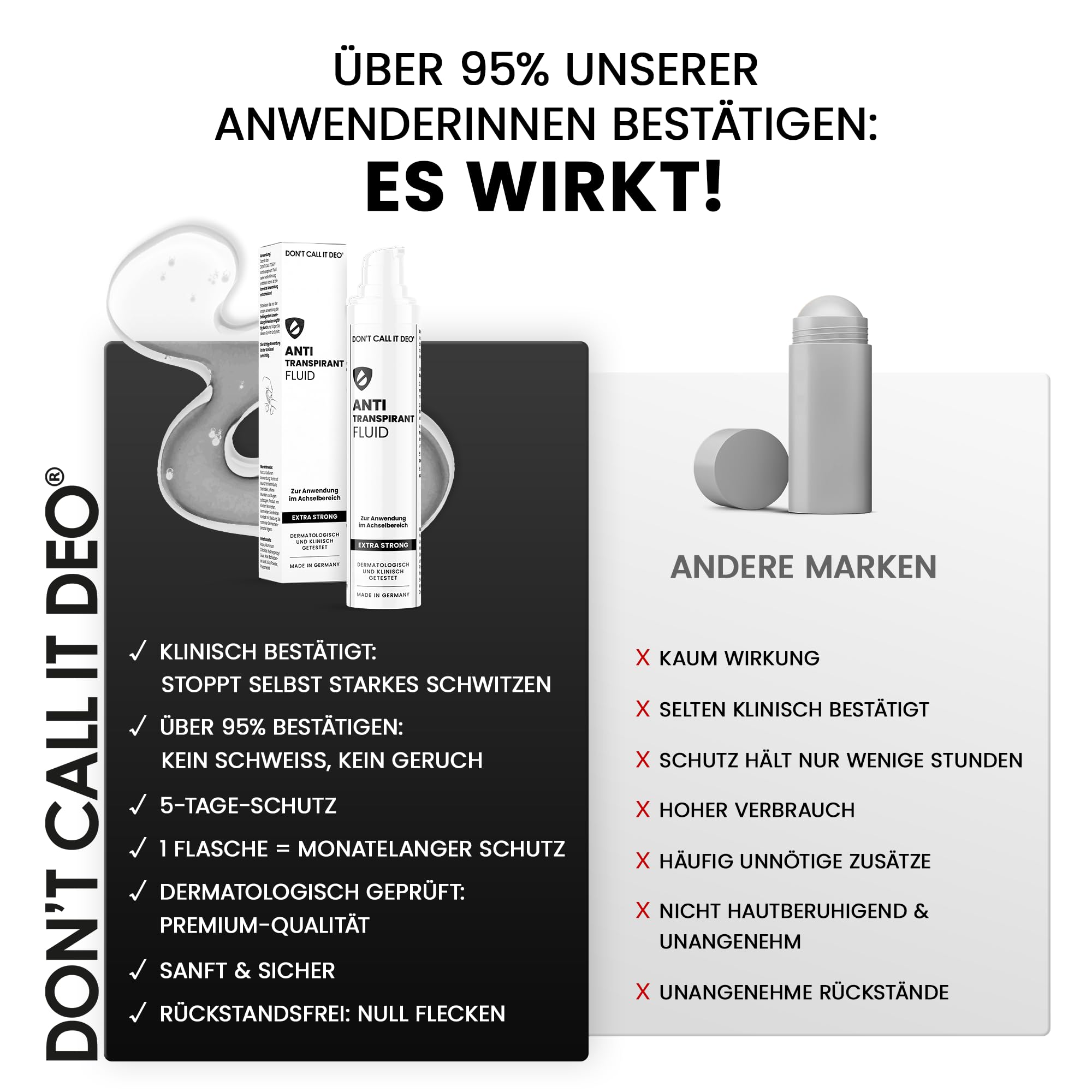 DON'T CALL IT DEO Antitranspirant Fluid 50 ml, extra stark gegen starkes Schwitzen und Geruch, 5-Tage-Schutz, ohne Alkohol und Duftstoffe, fuer Damen und Herren, 3er Pack