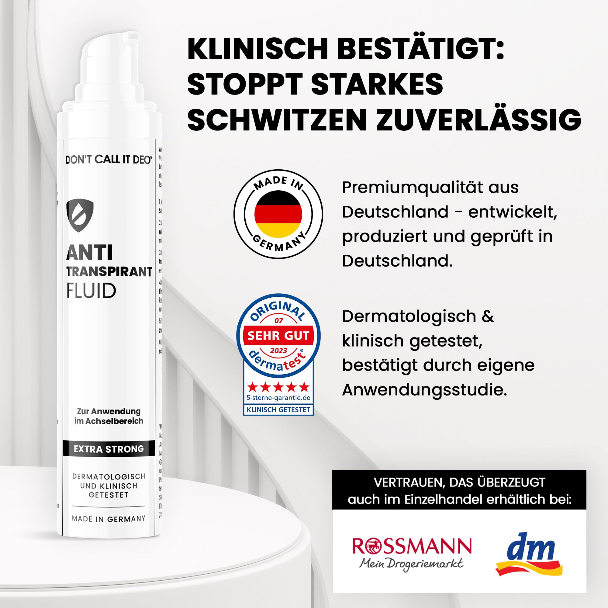 DON'T CALL IT DEO Antitranspirant Fluid 50 ml, extra stark gegen starkes Schwitzen und Geruch, 5-Tage-Schutz, ohne Alkohol und Duftstoffe, fuer Damen und Herren, 2er Pack