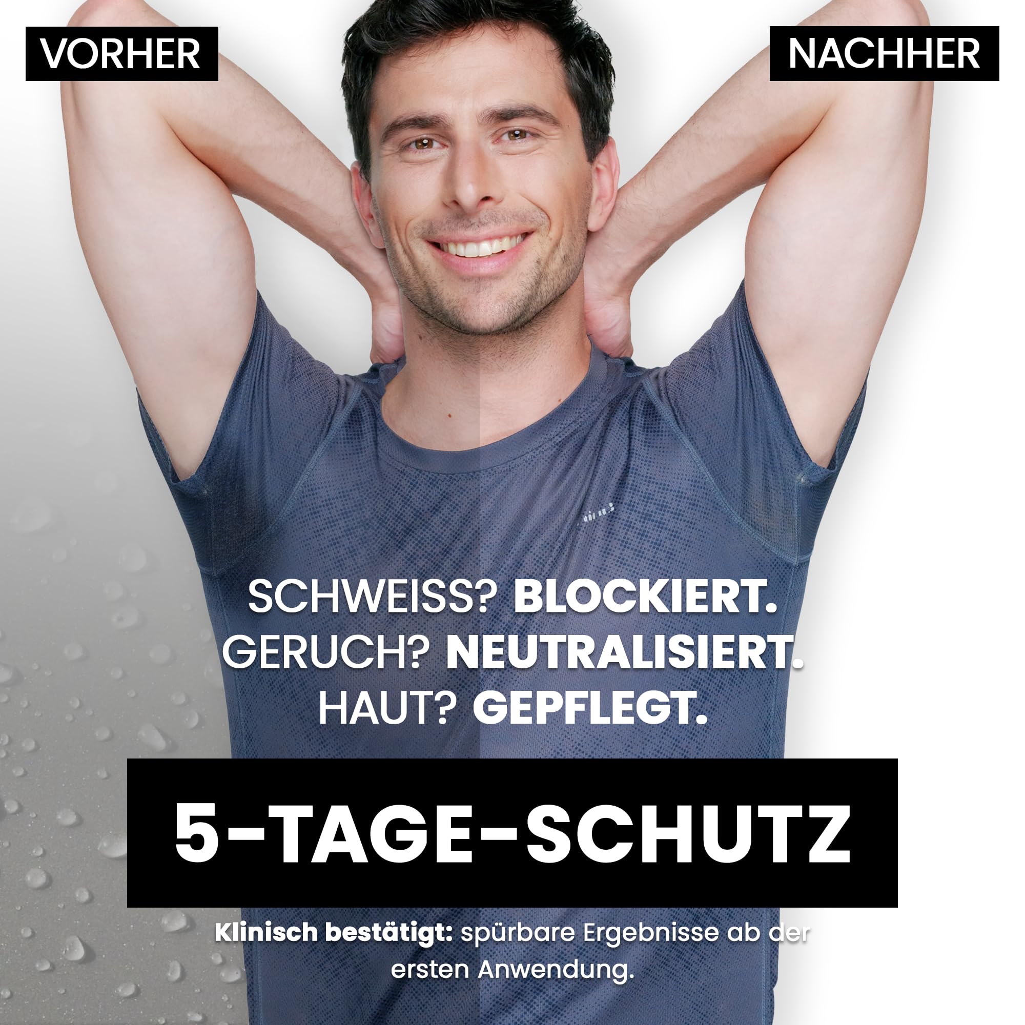 • Bestaetigter 5-Tage-Schutz gegen Schweiss und Geruch sorgt pro Einheit je Packung fuer mehr Sicherheit im Alltag, auch bei Stress und koerperlicher Belastung.