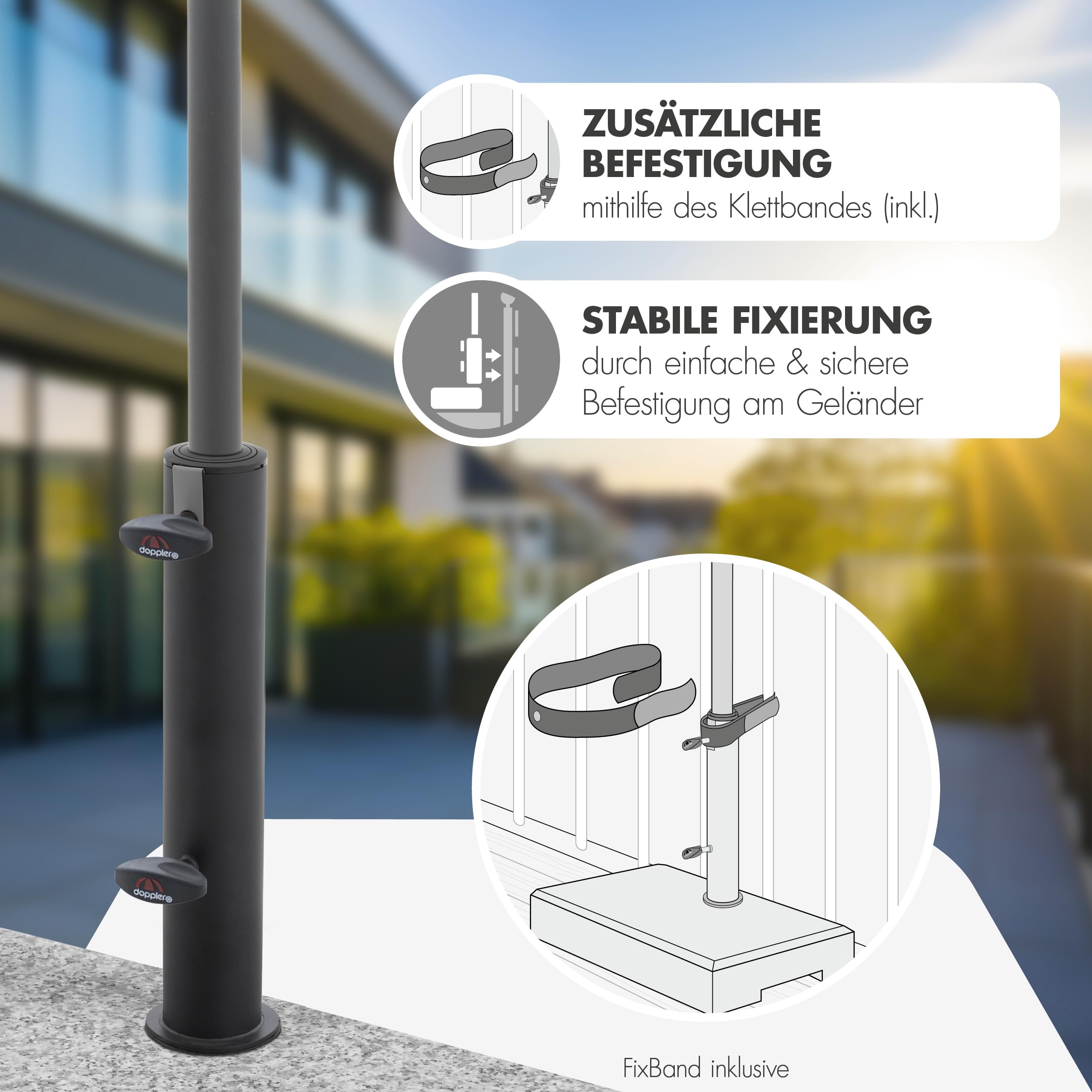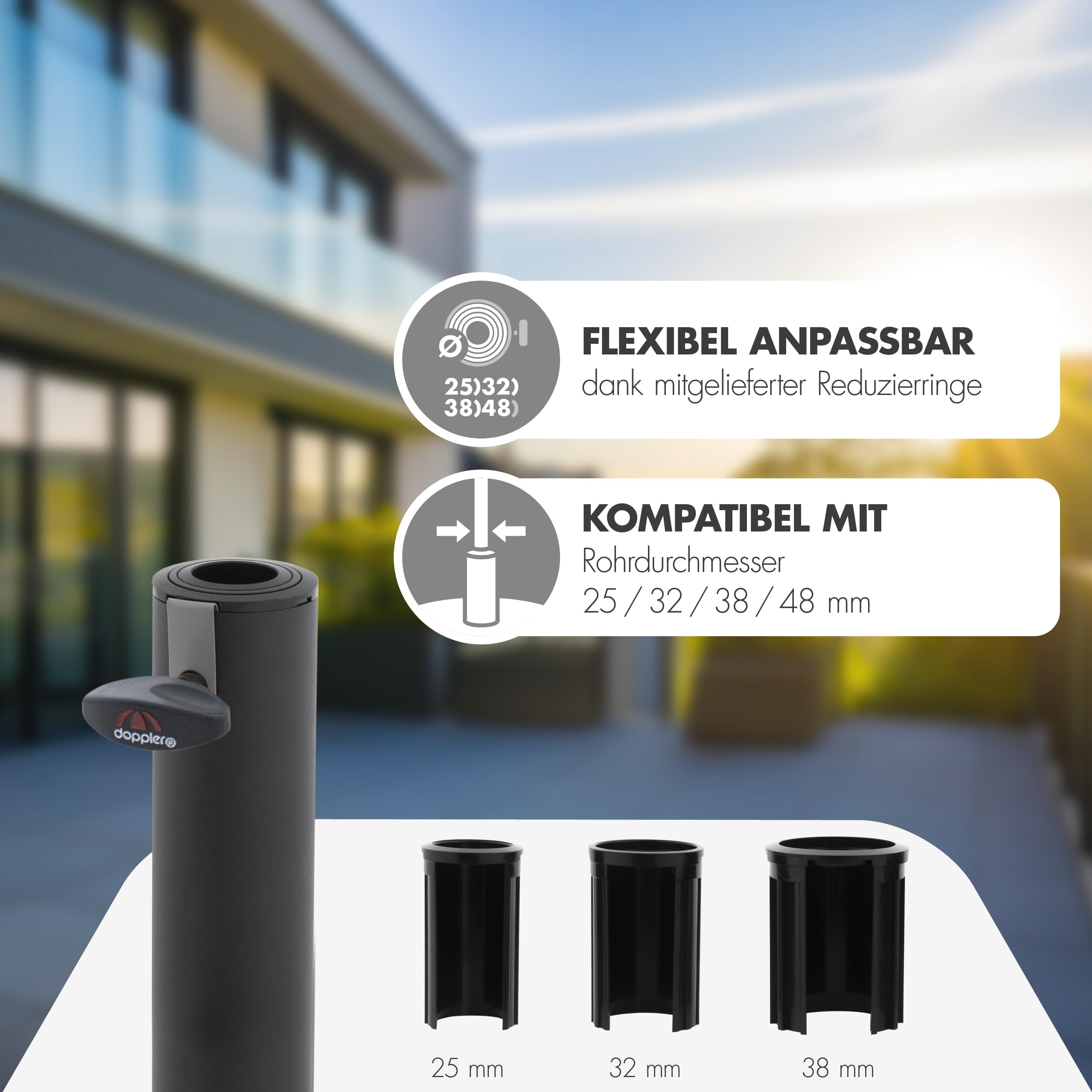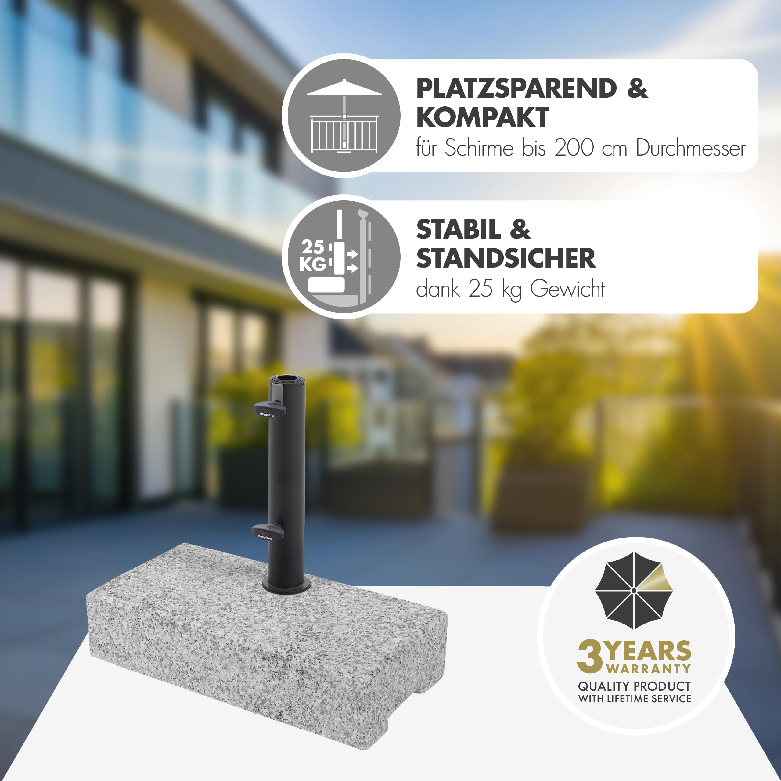 Doppler Balkonsockel Granit 25kg mit Griffmulden I Schirmständer für Sonnenschirme mit max. 200cm Schirmdurchmesser & 2,5-4,8cm Rohrdurchmesser I robuster Schirmständer für Terrasse oder Balkon