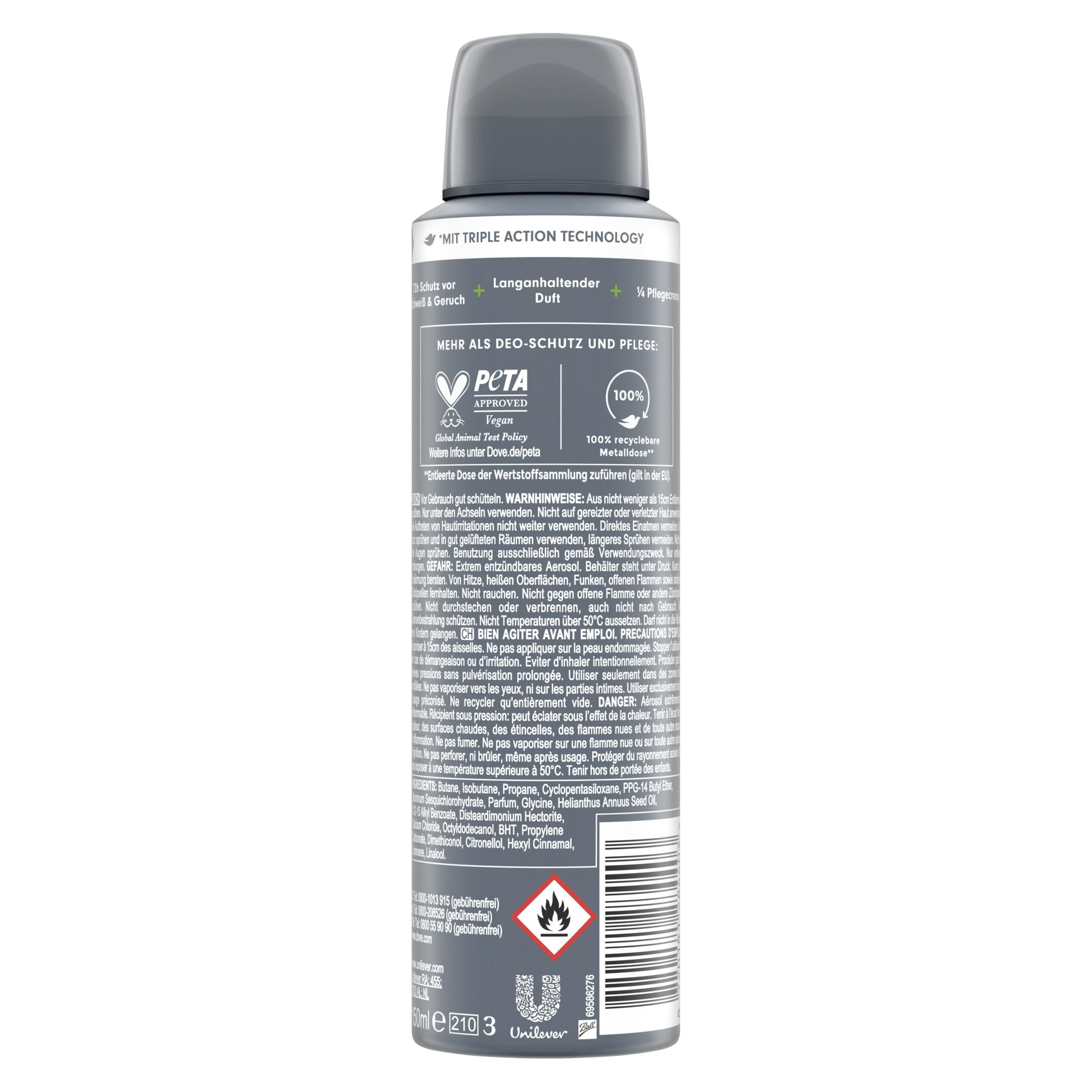 Die Aluminiumdose ist unbegrenzt recycelbar und fuer die Wertstoffsammlung in der EU geeignet. Dermatologisch getestet. Pflegeformel speziell auf die Beduerfnisse maennlicher Haut abgestimmt. Keine Aussagen zu vegan oder Mikroplastik, da dies nicht explizit bestaetigt ist.
