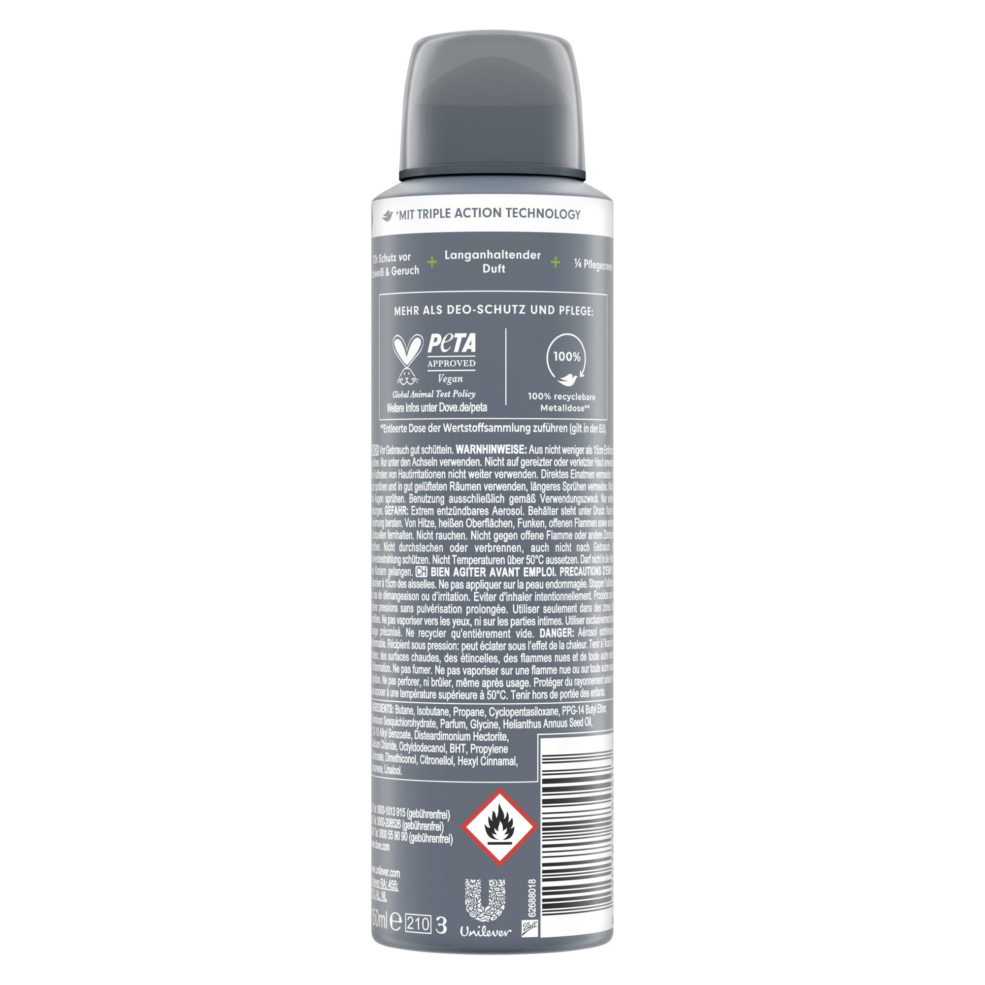 Das Dove Men+Care Advanced Anti-Transpirant Spray Extra Fresh bietet bis zu 72 Stunden zuverlaessigen Schutz gegen Schweiss und Koerpergeruch. Die Triple Action Technology wirkt effektiv gegen Achselnaesse und sorgt fuer ein langanhaltend frisches Hautgefuehl. Dank 1/4 Pflegecreme ist das Deo hautvertraeglich und hilft, Reizungen insbesondere nach dem Rasieren vorzubeugen. Der belebende Citrus-Duft verleiht Frische und Komfort im Alltag.