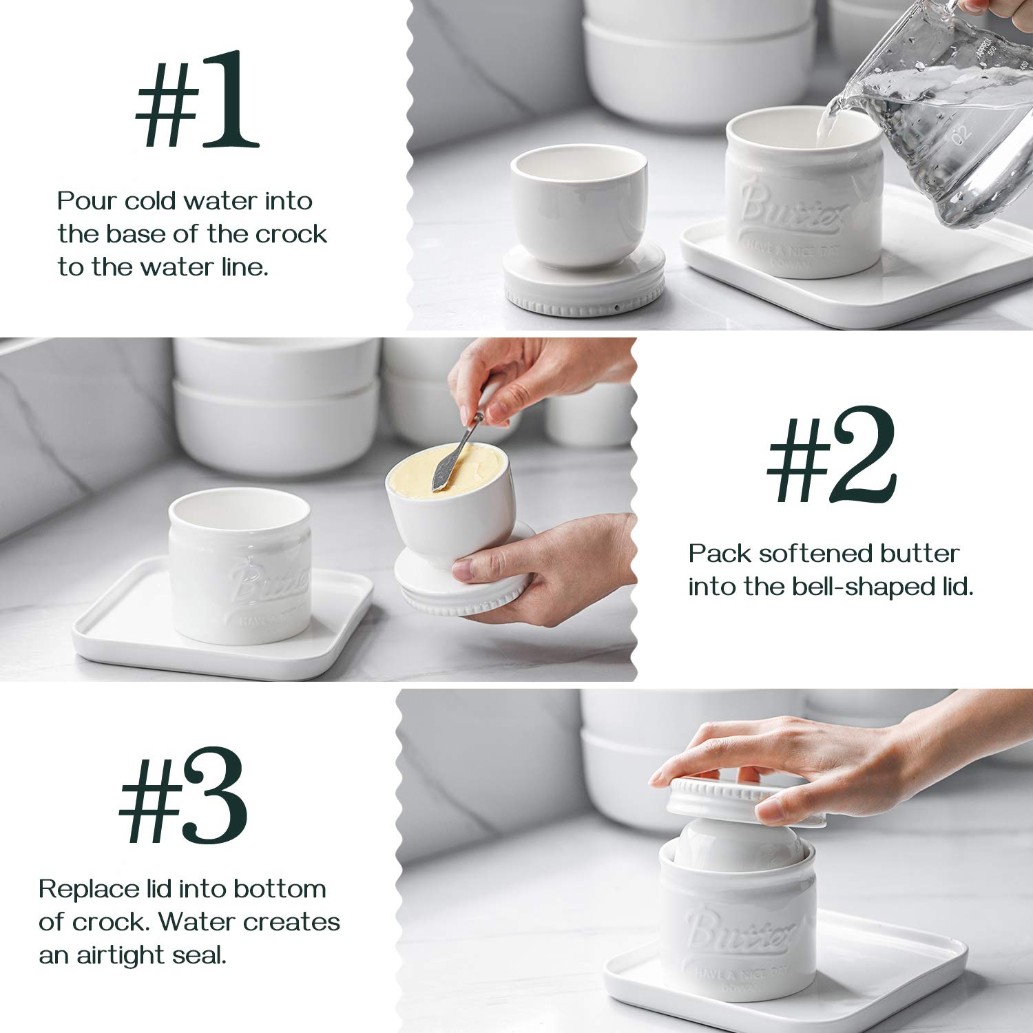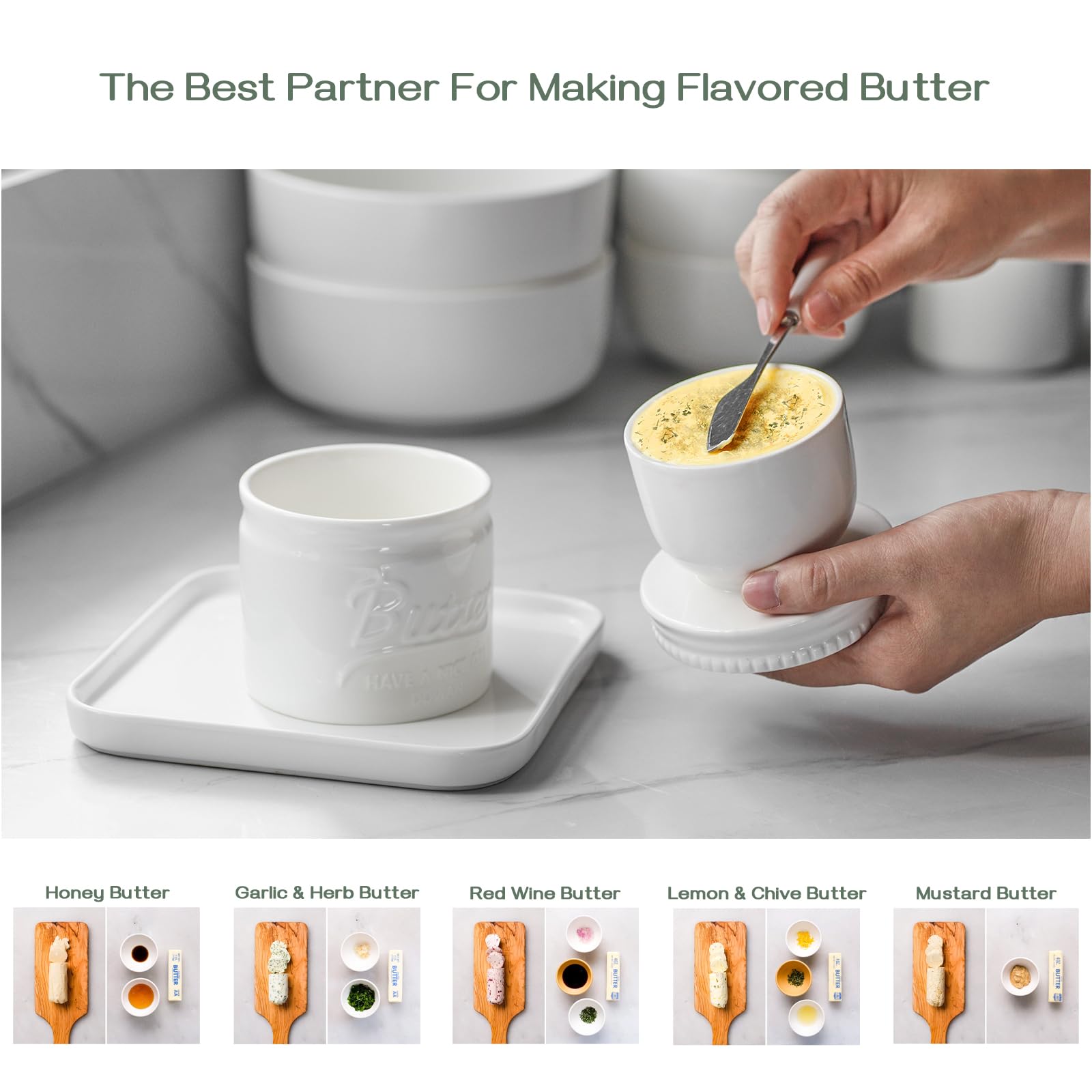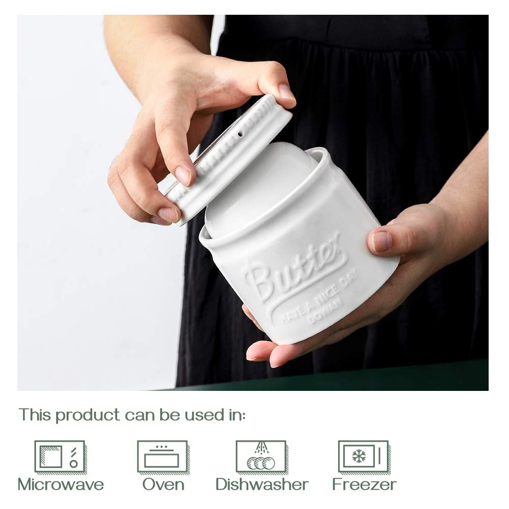 DOWAN Butterbehälter aus Porzellan, französische Butterdose mit Deckel, Einmachglas-Stil, Buttertopf geprägter Butterbehälter für weiche Butter, Weiss