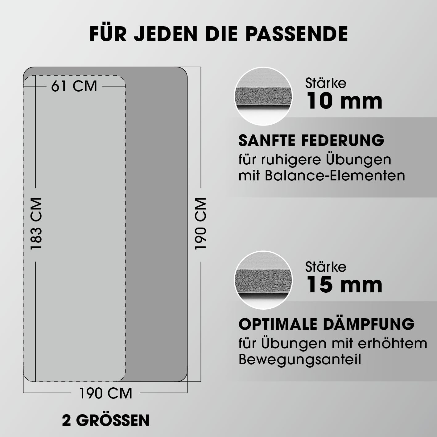 #DoYourFitness Fitnessmatte rutschfest | 183x61cm oder XXL 190x100cm | 0,8-2cm hoch | Gelenkschonende Gymnastikmatte | Yogamatte | Einsteiger und Fortgeschrittene | Indoor/Outdoor geeignet
