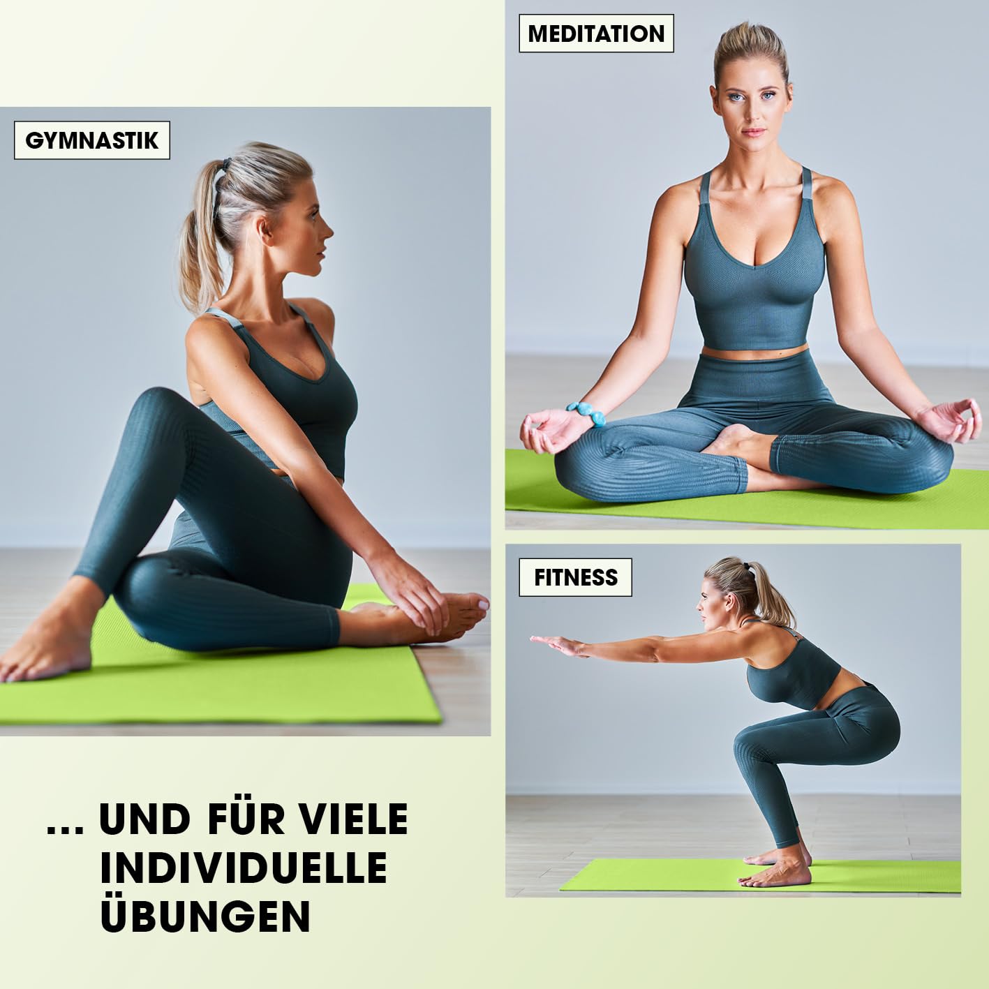 • EINZELHEITEN: Hautfreundlich, rutsch- und abriebfest und strapazierfähig. Angenehm weiche Oberflächenstruktur für mehr Komfort und Halt beim Training. Besonders hohe Materialdichte für besonders lange Lebensdauer. Pflegeleicht. Für platzsparende Aufbewahrung leicht zusammenrollbar. Inkl. praktischem Gummi-Tragegurt für bequemen, unkomplizierten Transport ins Fitnessstudio.