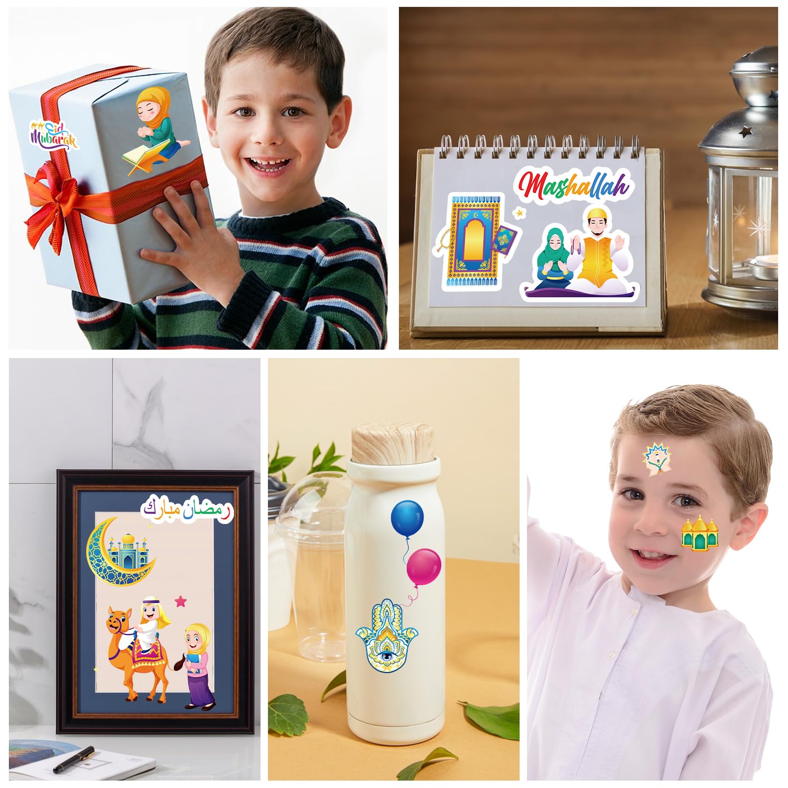 • 【Einfach zu verwenden】 Eid Mubarak Sticker Set aus hochwertigem Papier, ungiftig, sicher, selbstklebende Aufkleber, leicht abzuziehen, leicht auf Tassen, Wasserflaschen, Geschenkboxen, Schreibwaren, Spielzeug, Möbel, Bücher, Handys und andere Eid-Dekorationen zu kleben.