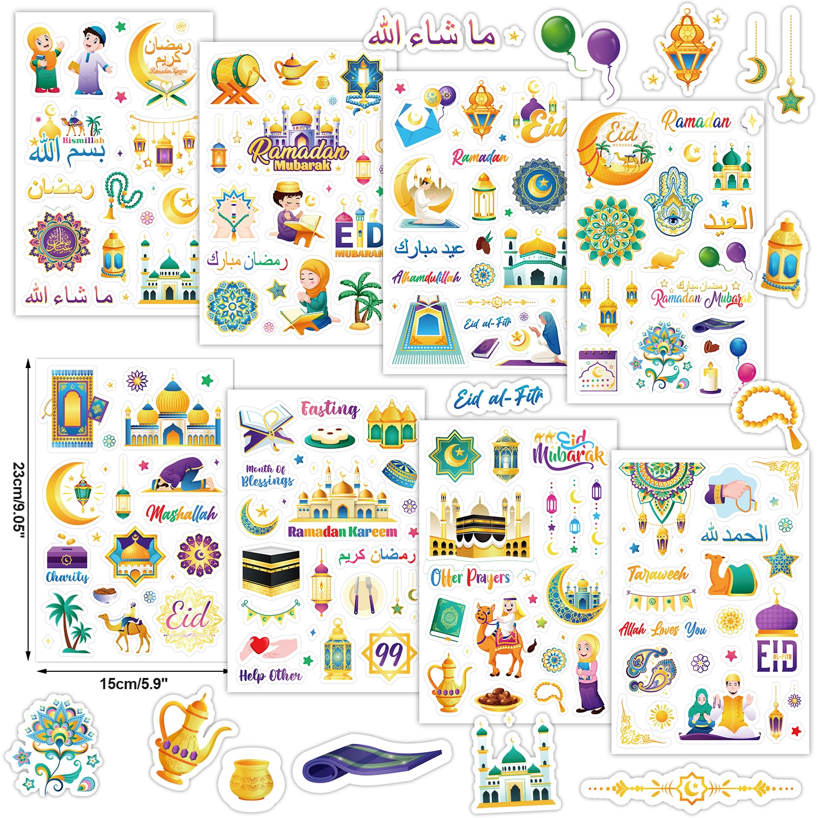 • 【Ramadan Eid Aufkleber】 24 Blätter DIY Sticker für Ramadan Eid Basteln arbeiten (jedes Blatt 9 x 5,9 Zoll / 23 x 15 cm), islamische Kunst Sticker, ideal für Kinder und Erwachsene, die Karten zu Eid al-Fitr basteln, Zubehör für kreative Eid Projekte der Muslime.