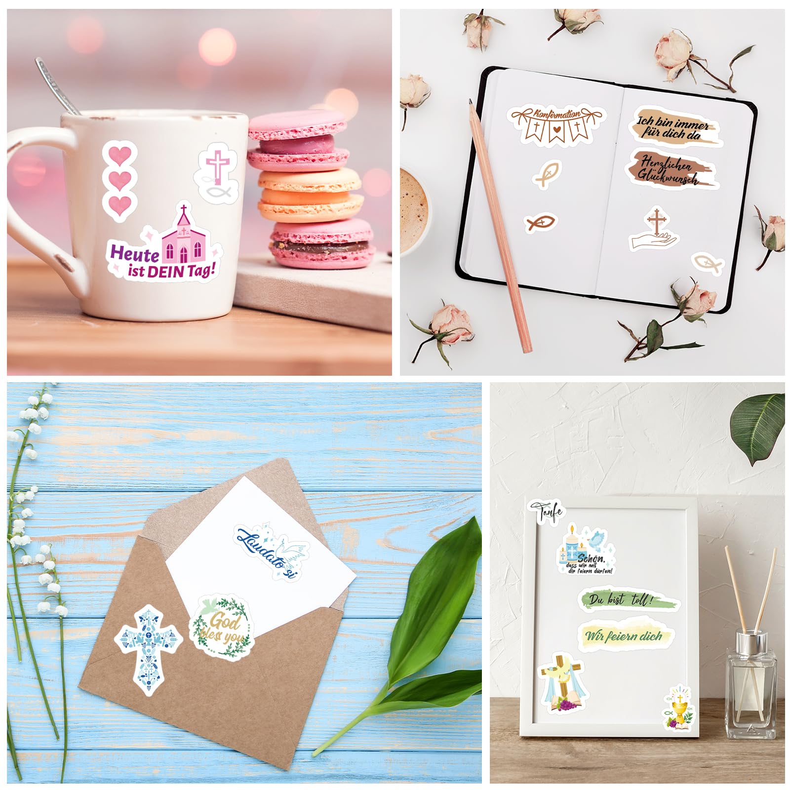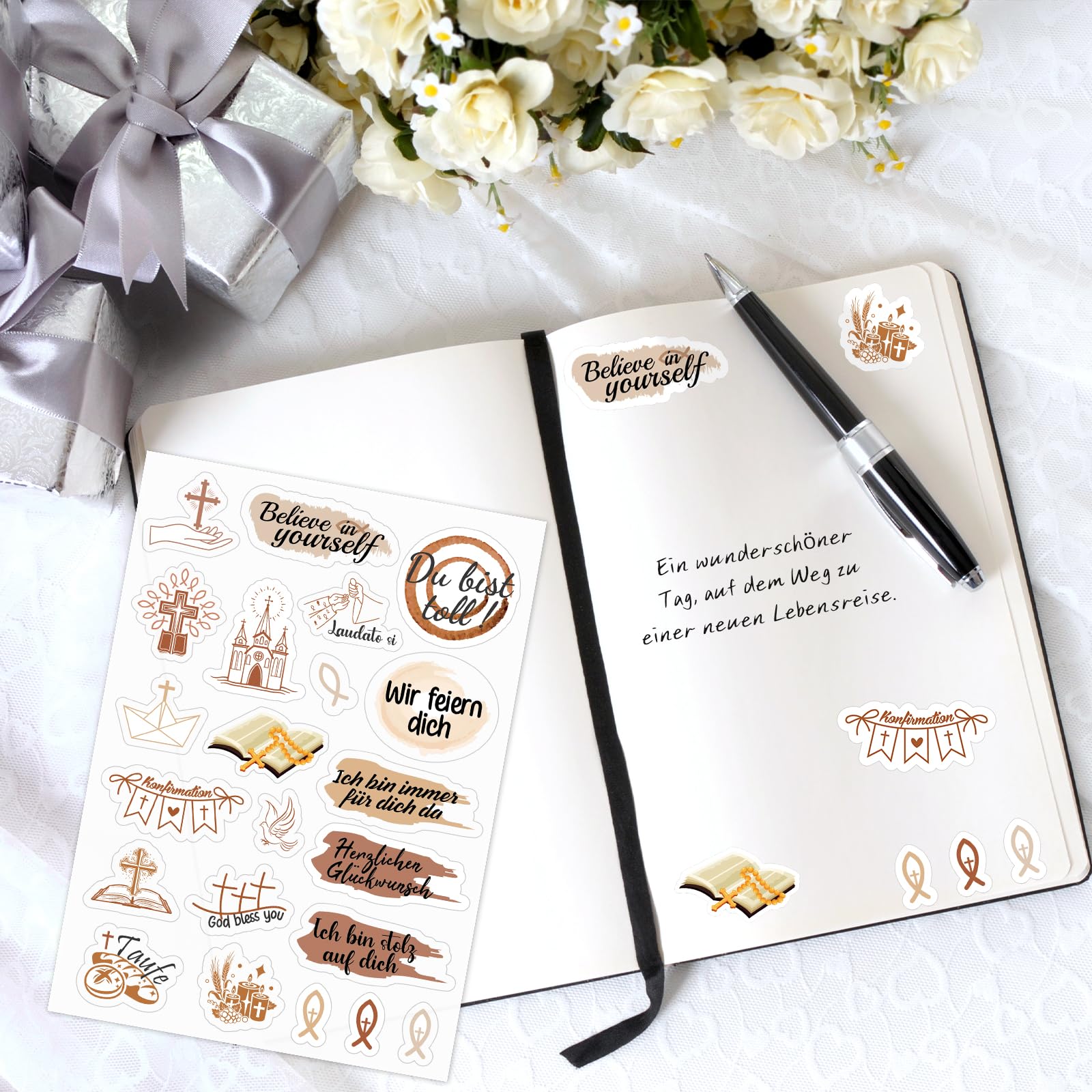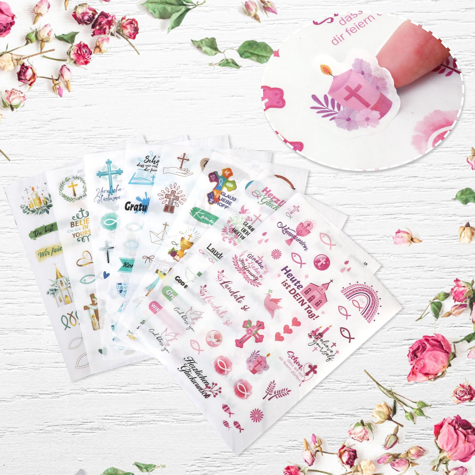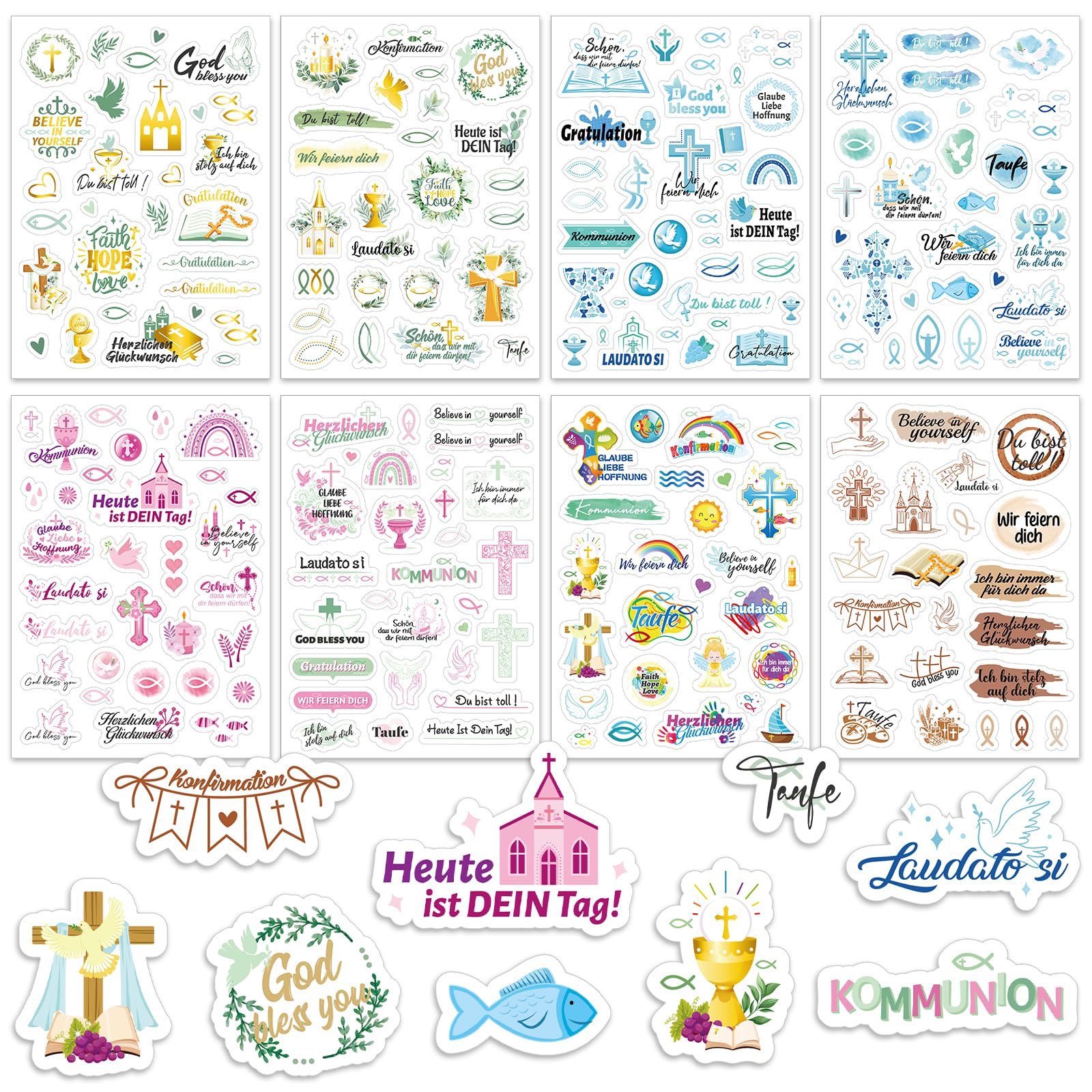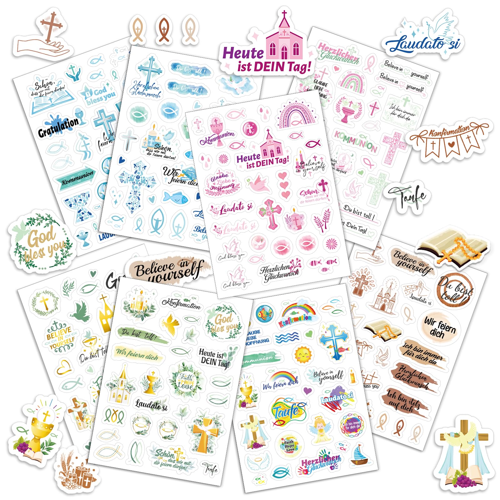 DPKOW Taufe Konfirmation Kommunion Sticker Set 227stk, Gästebuch Sticker Konfirmation Taufe Kommunion Aufkleber Scrapbook Karten Deko Fotoalbum Basteln Mädchen Jungen Kinder